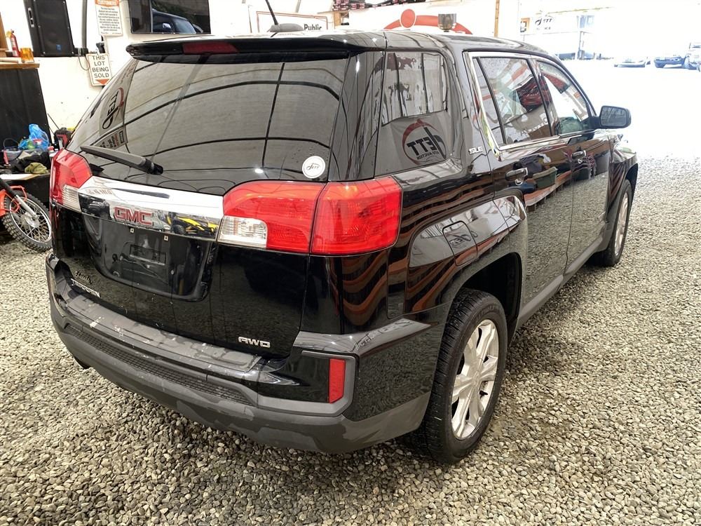 2017 GMC TERRAIN, BLACK, 231471 KMS, 2.4L, 4 CYLINDER, GASOLINE, AUTOMATIC WITH TIPTRONIC, TRANSMISSION, ALL WHEEL DRIVE, 5 PASSENGER. AIR CONDITIONING, POWER WINDOWS, POWER LOCKS, KEY-LESS ENTRY, TILT STEERING, CRUISE CONTROL, ALLOY WHEELS, ANTI THEFT, DUAL AIR BAGS, BLUETOOTH, BACK UP CAMERA, PARKING SENSORS, TRACTION CONTROL, STEERING WHEEL CONTROLS, POWER MIRRORS, NO REPORTED ACCIDENTS., CHIP OR CRACK IN WINDSHIELD, SPLIT-FOLDING REAR SEATS. DECLARATIONS: EX-OUT OF PROVINCE 0 ACCIDENTS 0 GLASS CLAIM, TOTALLING $0. SERVICE HISTORY SHOWS25 RECORDS. AUCTION NOTES: BRAKES NEED ATTENTION STOCK #: J220685 2GKFLSEK7H6220685 NOT MECHANICALLY INSPECTED, NOT SUITABLE FOR TRANSPORTATION, MUST TOW.