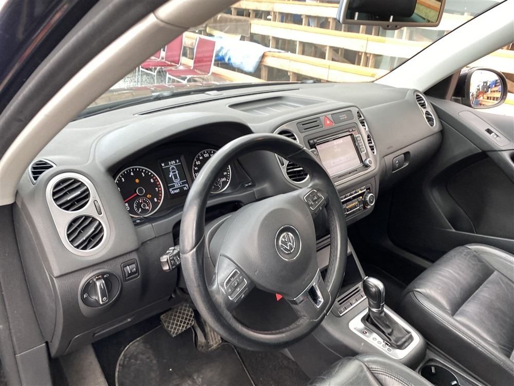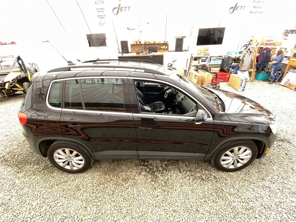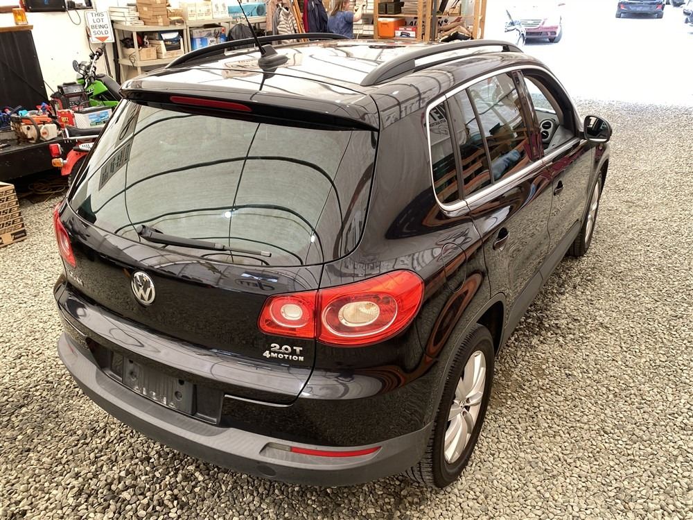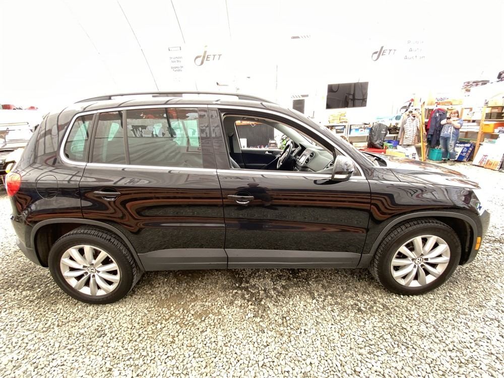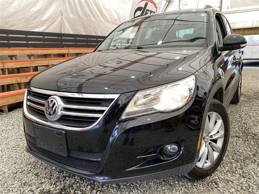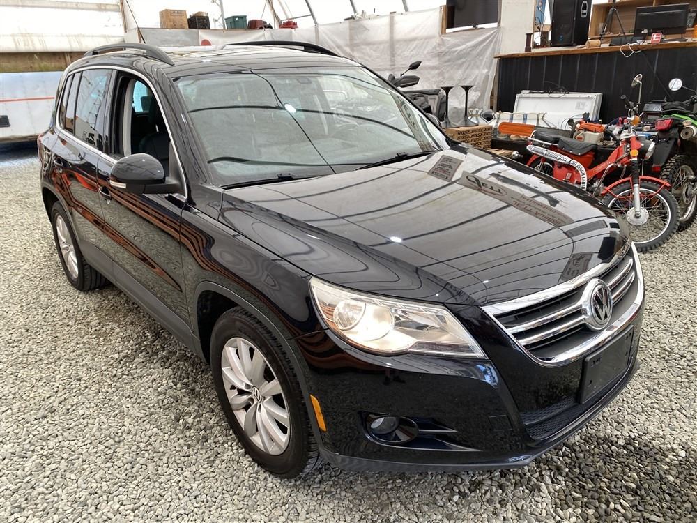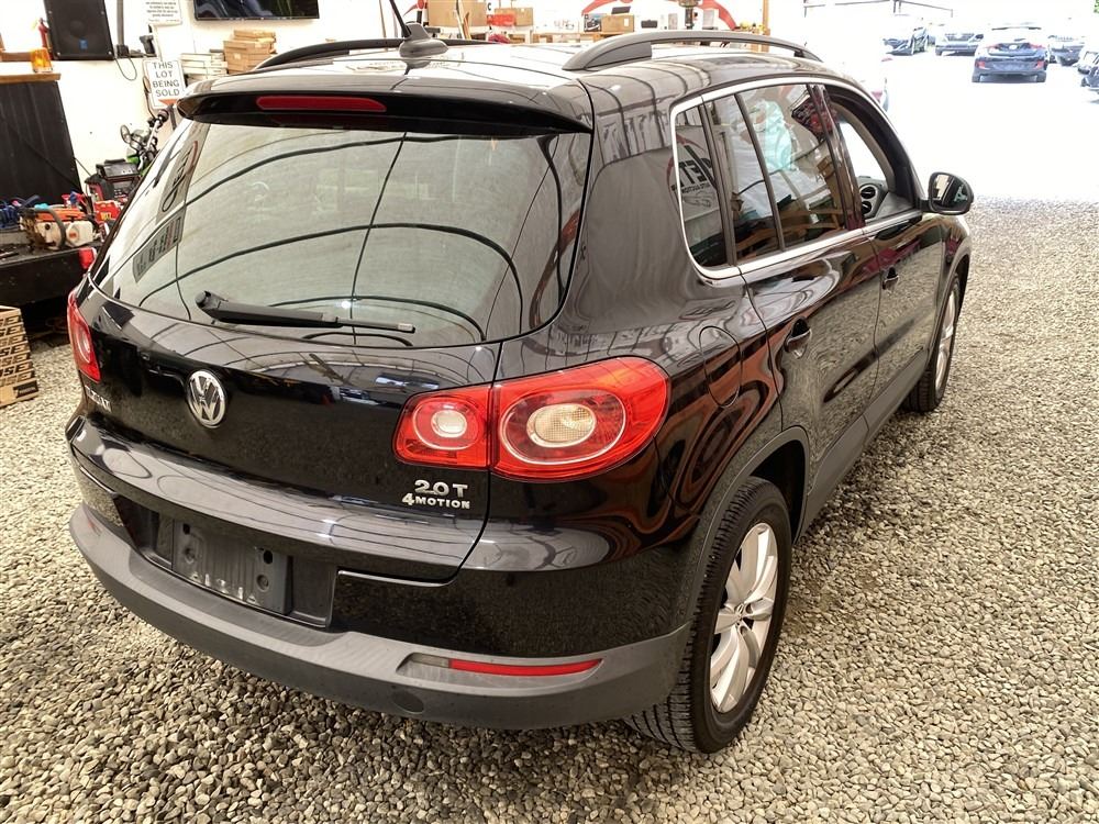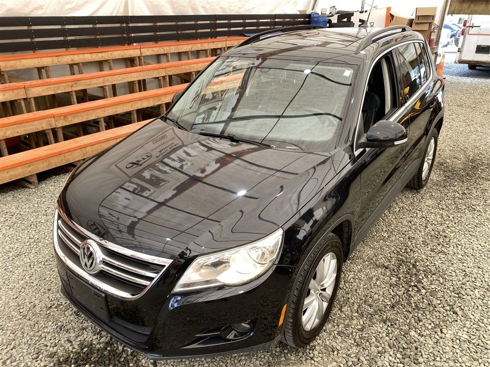 2011 VOLKSWAGEN TIGUAN, BLACK, 187607 KMS, 2.0L, 4 CYLINDER, GASOLINE, AUTOMATIC WITH TIPTRONIC, TRANSMISSION, ALL WHEEL DRIVE, 5 PASSENGER. AIR CONDITIONING, POWER WINDOWS, POWER LOCKS, KEY-LESS ENTRY, TILT STEERING, CRUISE CONTROL, ALLOY WHEELS, ANTI THEFT, DUAL AIR BAGS, POWER SUNROOF, CD PLAYER, CD STACKER, LEATHER SEATS, POWER SEATS, HEATED SEATS, MEMORY SEATS, HEATED MIRRORS, INFOTAINMENT CENTER, TRACTION CONTROL, DUAL ZONE CLIMATE, STEERING WHEEL CONTROLS, FOG LIGHTS, POWER MIRRORS, . DECLARATIONS: NO DESIGNATIONS 5 ACCIDENTS 0 GLASS CLAIM, TOTALLING $7782. SERVICE HISTORY SHOWS8 RECORDS. AUCTION NOTES: STOCK #: J501776 WVGBV7AX8BW501776 NOT MECHANICALLY INSPECTED, NOT SUITABLE FOR TRANSPORTATION, MUST TOW.
