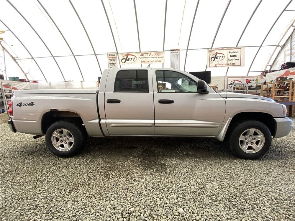 2006 DODGE DAKOTA, SILVER, 289902 KMS, 4.7L, 8 CYLINDER, GASOLINE, AUTOMATIC, TRANSMISSION, ALL WHEEL DRIVE, 5 PASSENGER. AIR CONDITIONING, POWER WINDOWS, POWER LOCKS, KEY-LESS ENTRY, TILT STEERING, CRUISE CONTROL, ALLOY WHEELS, ANTI THEFT, DUAL AIR BAGS, CD PLAYER, CD STACKER, POWER SEATS, HEATED MIRRORS, FOG LIGHTS, TOW PACKAGE, TRAILER BRAKE CONTROL, POWER MIRRORS, NO REPORTED ACCIDENTS., SPLIT-FOLDING REAR SEATS. DECLARATIONS: NO DESIGNATIONS 0 ACCIDENTS 0 GLASS CLAIM, TOTALING $0. SERVICE HISTORY SHOWS14 RECORDS. AUCTION NOTES: STOCK #: J703700 1D7HW48N86S703700 NOT MECHANICALLY INSPECTED, NOT SUITABLE FOR TRANSPORTATION, MUST TOW.