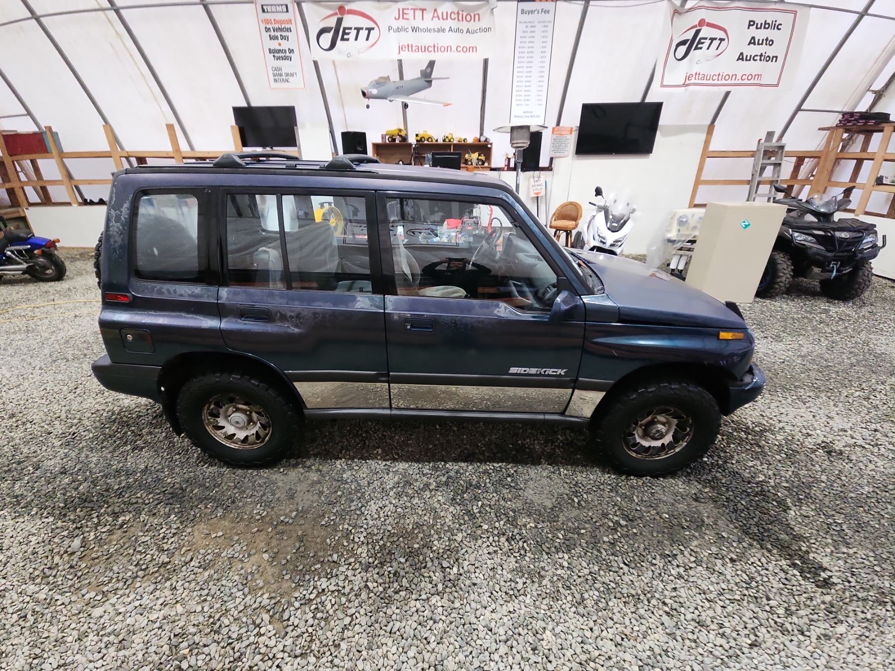 1995 SUZUKI SIDEKICK, GREEN, 302356 KMS, 1.6L, 4 CYLINDER, GASOLINE, MANUAL, TRANSMISSION, 4X4, 5 PASSENGER. CD PLAYER, BLUETOOTH, AFTERMARKET STEREO, SPLIT-FOLDING REAR SEATS. DECLARATIONS: NO DESIGNATIONS 2 ACCIDENTS 0 GLASS CLAIM, TOTALLING $0. SERVICE HISTORY SHOWS0 RECORDS. AUCTION NOTES: LOCATION: PARKSVILLE. THIS VEHICLE IS AT OUR PARKSVILLE SITE, 861 ALLSBROOK RD, PARKSVILLE, BC. ALL VIEWING, PAYMENT, AND PICKUP HAPPEN AT THIS LOCATION ONLY. STOCK #: D108715 JS3TD03V1S4108715 NOT MECHANICALLY INSPECTED, NOT SUITABLE FOR TRANSPORTATION, MUST TOW.