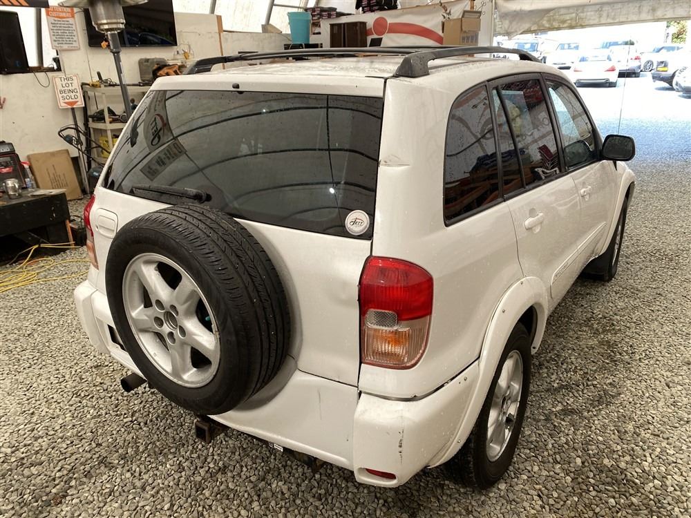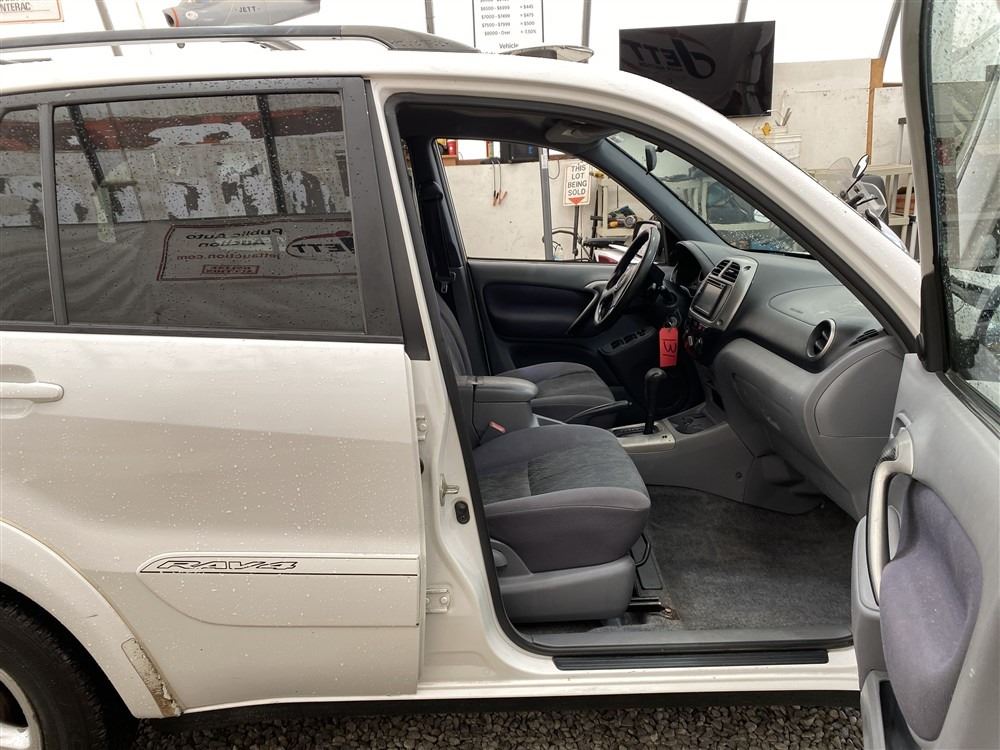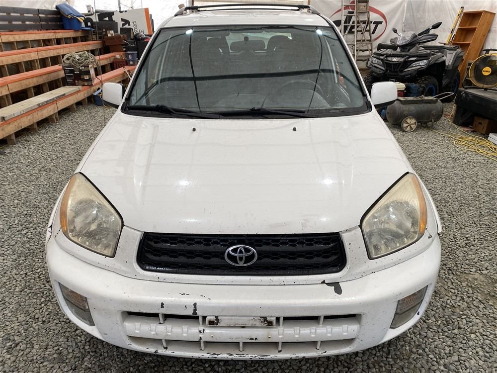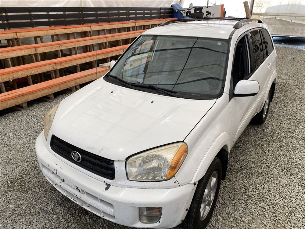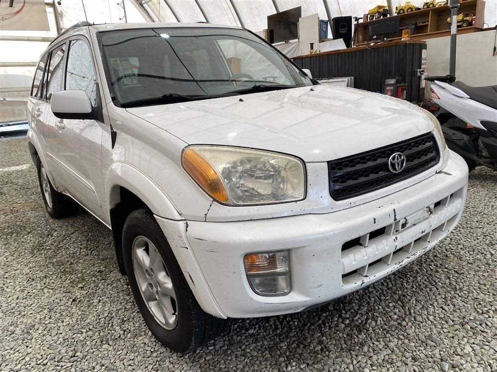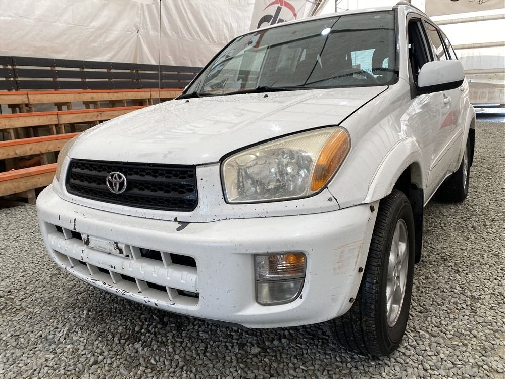 2001 TOYOTA RAV 4, WHITE, 377699 KMS, 2.0L, 4 CYLINDER, GASOLINE, AUTOMATIC, TRANSMISSION, ALL WHEEL DRIVE, 5 PASSENGER. AIR CONDITIONING, POWER WINDOWS, POWER LOCKS, KEY-LESS ENTRY, TILT STEERING, CRUISE CONTROL, ALLOY WHEELS, ANTI THEFT, DUAL AIR BAGS, CD PLAYER, BLUETOOTH, AFTERMARKET STEREO, NAVIGATION, FOG LIGHTS, ROOF RACK, POWER MIRRORS, NO REPORTED ACCIDENTS., SPLIT-FOLDING REAR SEATS. DECLARATIONS: NO DESIGNATIONS 0 ACCIDENTS 2 GLASS CLAIM, TOTALLING $1655. SERVICE HISTORY SHOWS5 RECORDS. AUCTION NOTES: STOCK #: B028499 JTEHH20V110028499 NOT MECHANICALLY INSPECTED, NOT SUITABLE FOR TRANSPORTATION, MUST TOW.