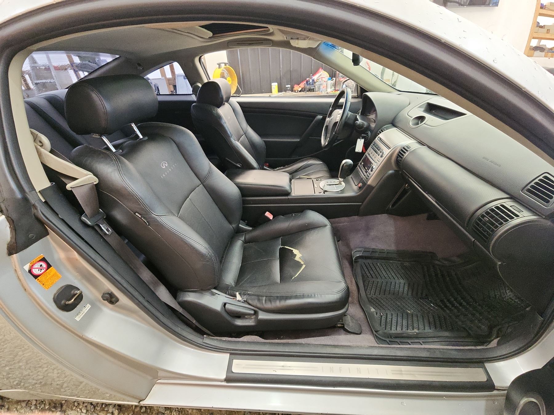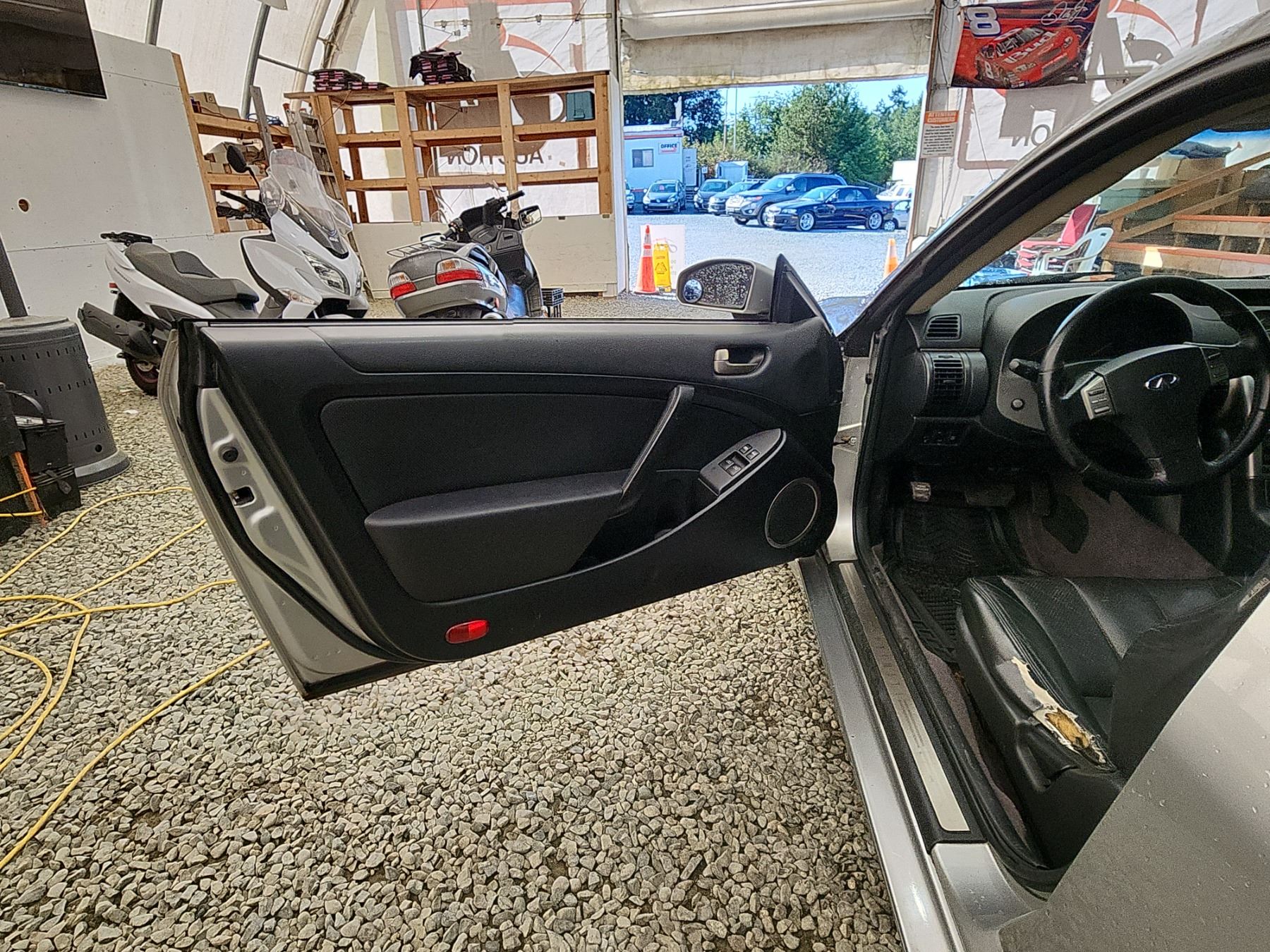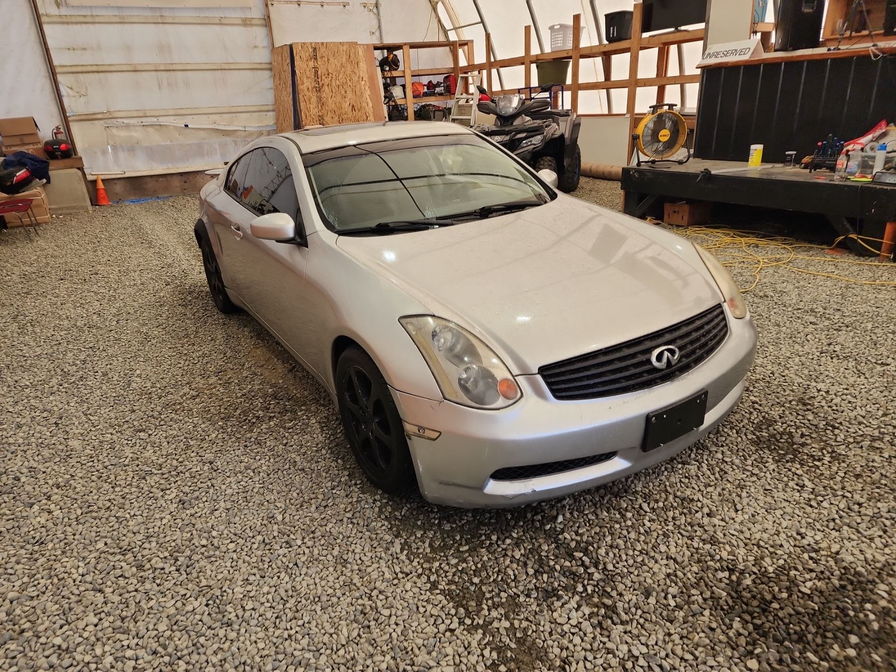 2003 INFINITI G35, SILVER, 220989 KMS, 3.5L, 6 CYLINDER, GASOLINE, AUTOMATIC WITH TIPTRONIC, TRANSMISSION, REAR WHEEL DRIVE, 4 PASSENGER. AIR CONDITIONING, POWER WINDOWS, POWER LOCKS, KEY-LESS ENTRY, TILT STEERING, CRUISE CONTROL, ALLOY WHEELS, ANTI THEFT, DUAL AIR BAGS, POWER SUNROOF, CD PLAYER, LEATHER SEATS, POWER SEATS, HEATED SEATS, TRACTION CONTROL, STEERING WHEEL CONTROLS, FOG LIGHTS, POWER MIRRORS, . DECLARATIONS: NO DESIGNATIONS 5 ACCIDENTS 0 GLASS CLAIM, TOTALLING $8708. SERVICE HISTORY SHOWS12 RECORDS. AUCTION NOTES: TMU DUE TO CARFAX DISCREPANCIES. STOCK #: B207510 JNKCV54E83M207510 NOT MECHANICALLY INSPECTED, NOT SUITABLE FOR TRANSPORTATION, MUST TOW.