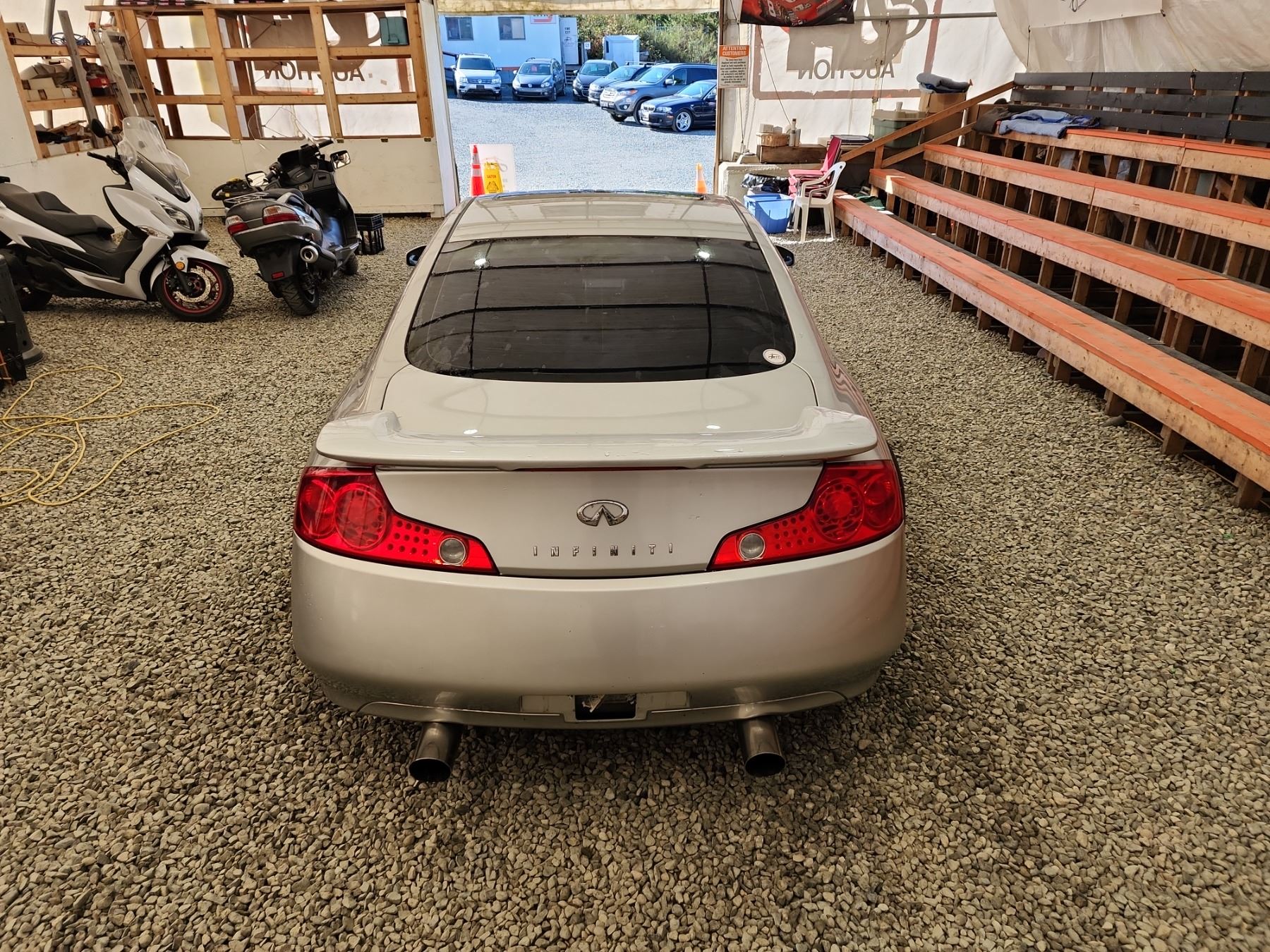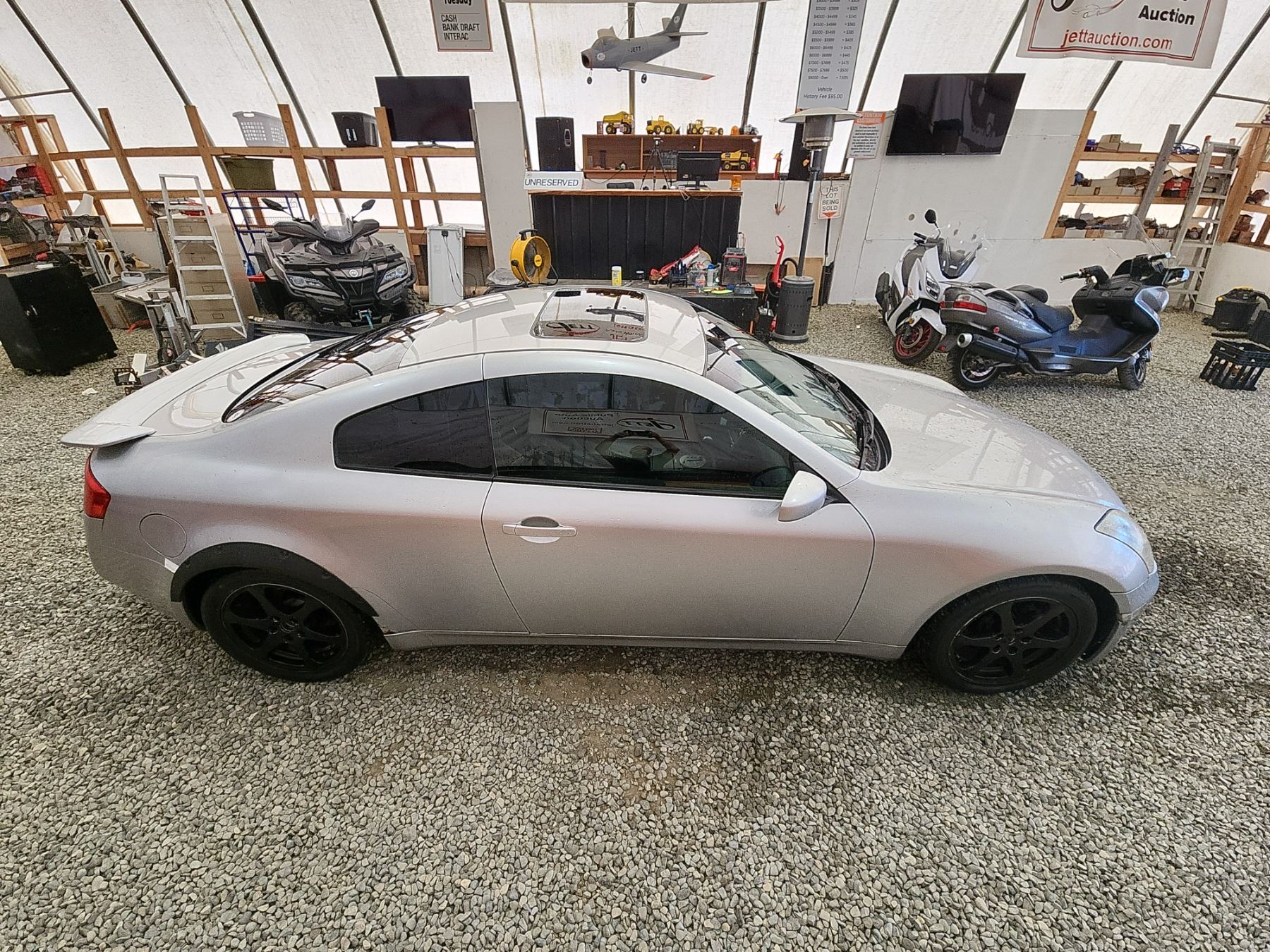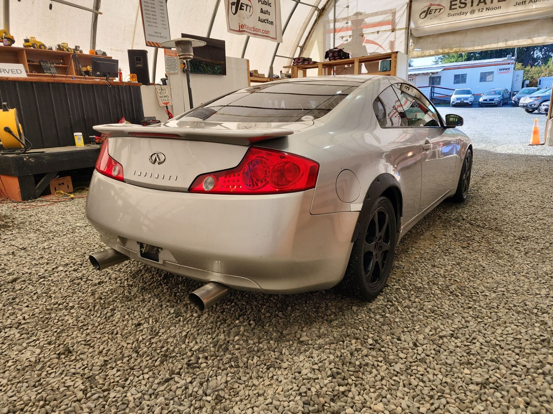 2003 INFINITI G35, SILVER, 220989 KMS, 3.5L, 6 CYLINDER, GASOLINE, AUTOMATIC WITH TIPTRONIC, TRANSMISSION, REAR WHEEL DRIVE, 4 PASSENGER. AIR CONDITIONING, POWER WINDOWS, POWER LOCKS, KEY-LESS ENTRY, TILT STEERING, CRUISE CONTROL, ALLOY WHEELS, ANTI THEFT, DUAL AIR BAGS, POWER SUNROOF, CD PLAYER, LEATHER SEATS, POWER SEATS, HEATED SEATS, TRACTION CONTROL, STEERING WHEEL CONTROLS, FOG LIGHTS, POWER MIRRORS, . DECLARATIONS: NO DESIGNATIONS 5 ACCIDENTS 0 GLASS CLAIM, TOTALLING $8708. SERVICE HISTORY SHOWS12 RECORDS. AUCTION NOTES: TMU DUE TO CARFAX DISCREPANCIES. STOCK #: B207510 JNKCV54E83M207510 NOT MECHANICALLY INSPECTED, NOT SUITABLE FOR TRANSPORTATION, MUST TOW.