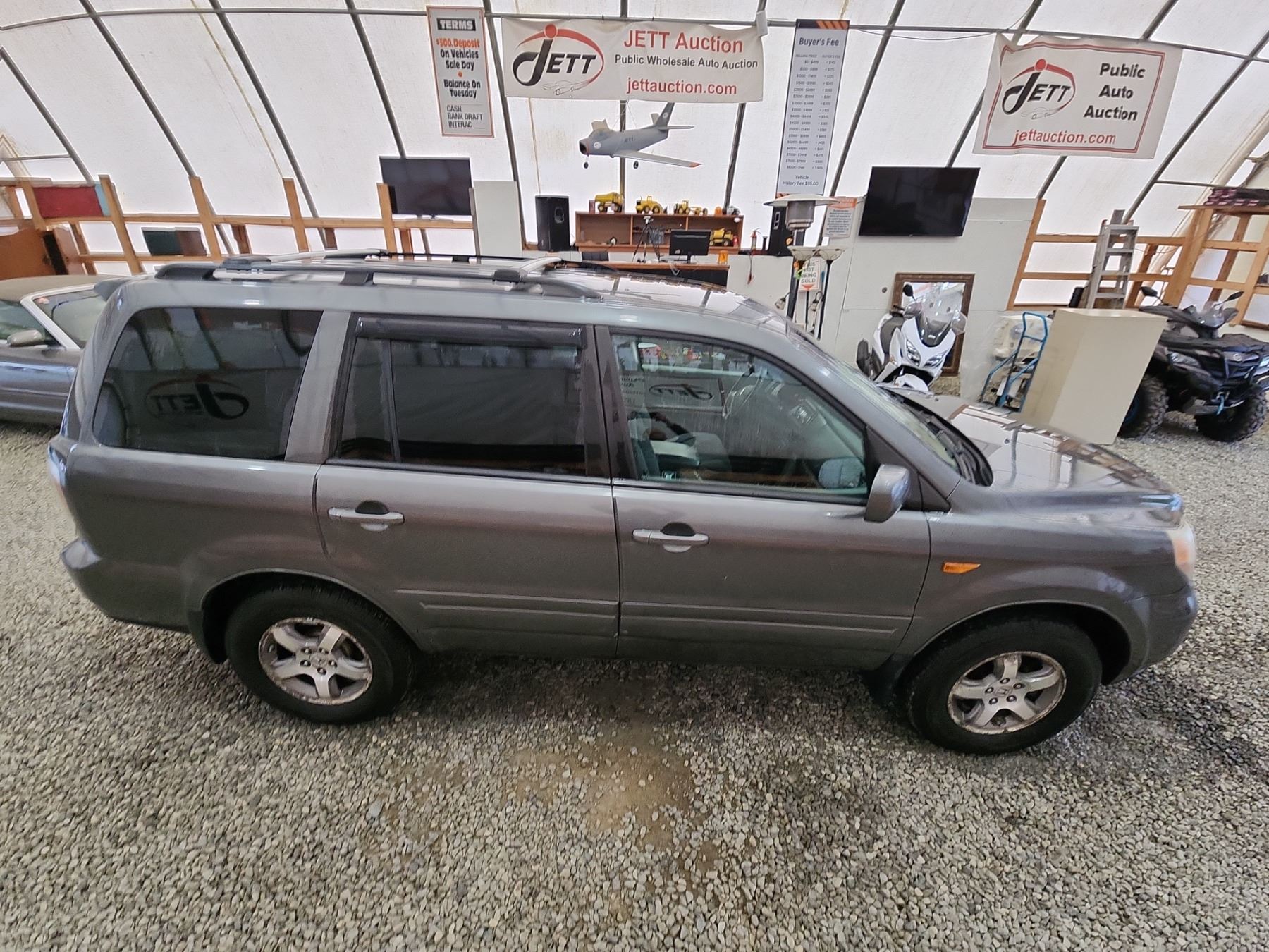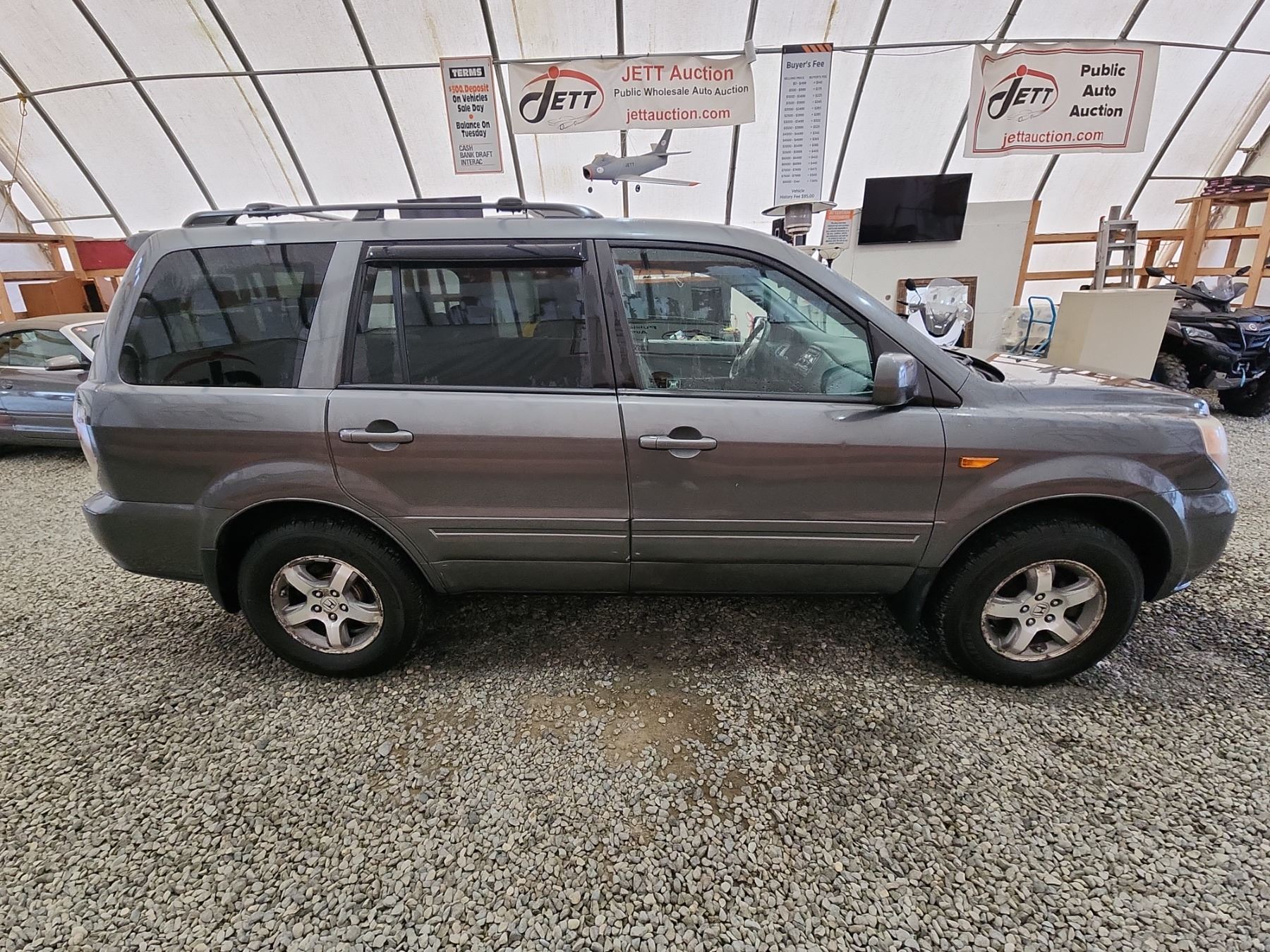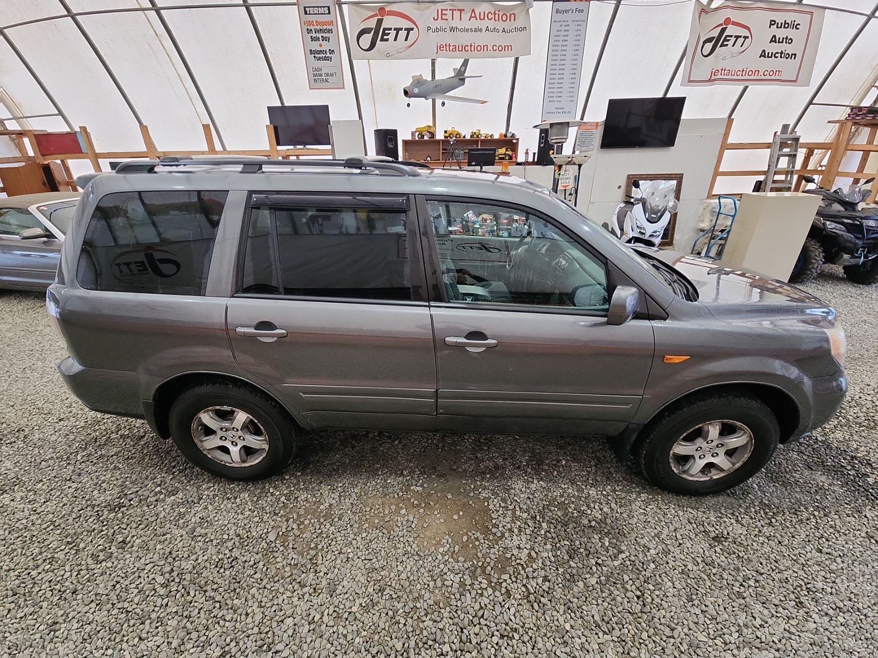 2007 HONDA PILOT, GREY, 179879 MILES, 3.5L, 6 CYLINDER, GASOLINE, AUTOMATIC, TRANSMISSION, FRONT WHEEL DRIVE, 7 PASSENGER. AIR CONDITIONING, POWER WINDOWS, POWER LOCKS, KEY-LESS ENTRY, TILT STEERING, CRUISE CONTROL, ALLOY WHEELS, ANTI THEFT, DUAL AIR BAGS, CD PLAYER, CD STACKER, TRACTION CONTROL, POWER MIRRORS, SPLIT-FOLDING REAR SEATS. DECLARATIONS: EX-USA 2 ACCIDENTS 2 GLASS CLAIM, TOTALLING $1602. SERVICE HISTORY SHOWS12 RECORDS. AUCTION NOTES: STOCK #: D027907 5FNYF28477B027907 NOT MECHANICALLY INSPECTED, NOT SUITABLE FOR TRANSPORTATION, MUST TOW.