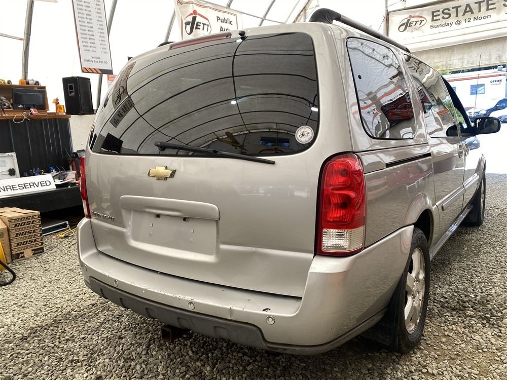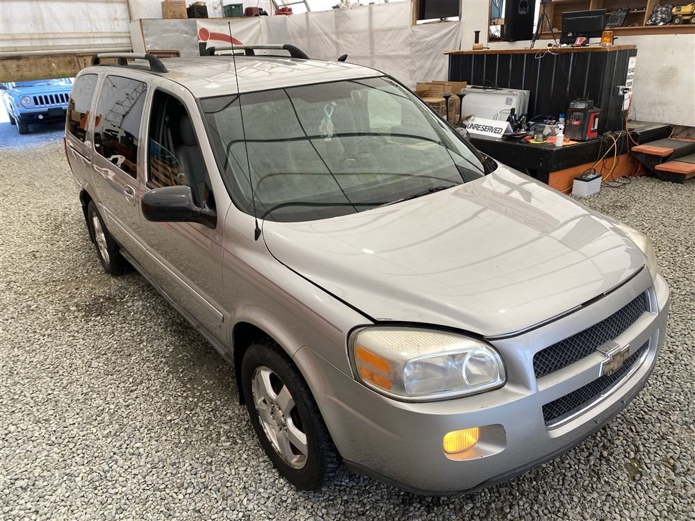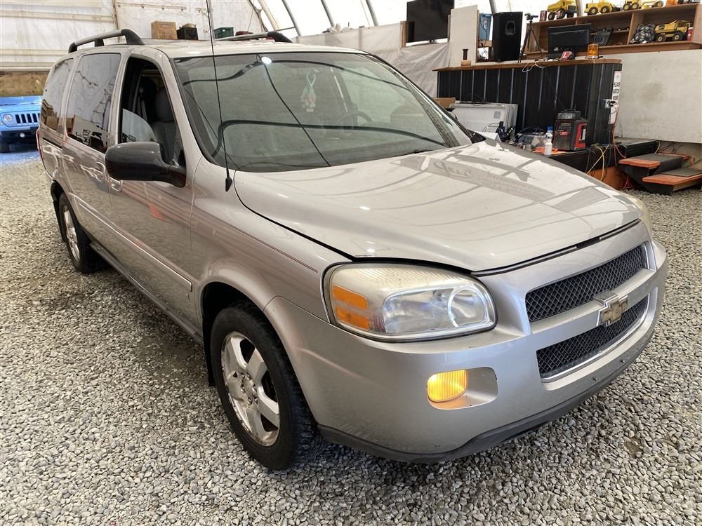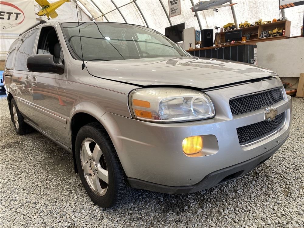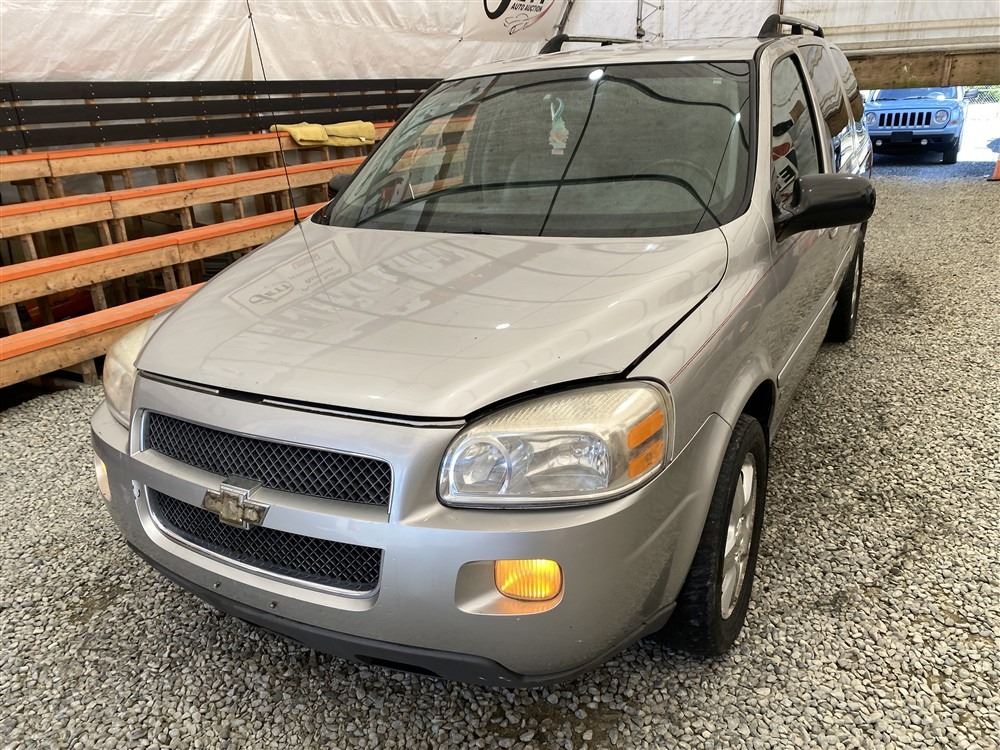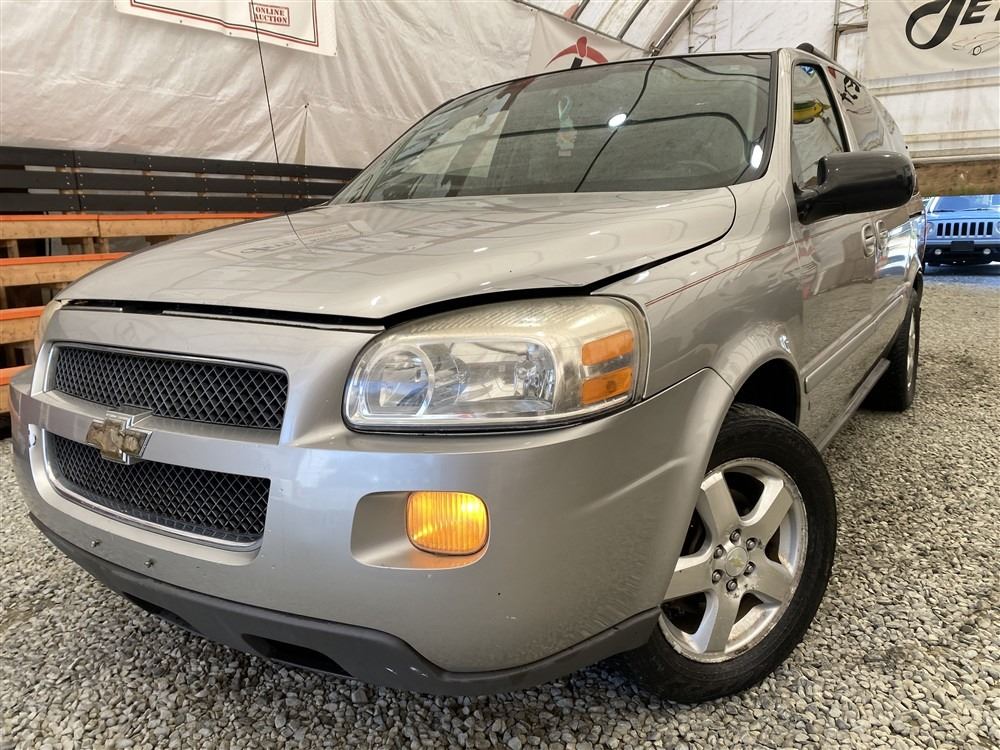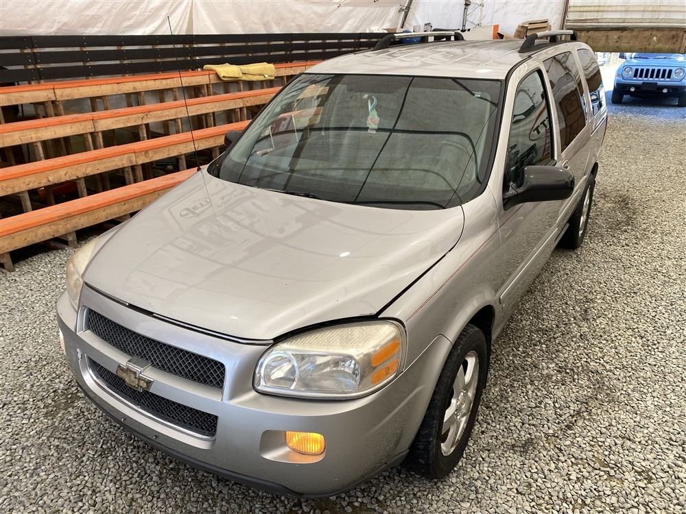 2008 CHEVY UPLANDER, GREY, 186760 MILES KMS, 3.9L, 6 CYLINDER, GASOLINE, AUTOMATIC, TRANSMISSION, FRONT WHEEL DRIVE, 7 PASSENGER. AIR CONDITIONING, POWER LOCKS, TILT STEERING, CRUISE CONTROL, ANTI THEFT, DUAL AIR BAGS, CD PLAYER, TRACTION CONTROL, REAR HEAT AND AIR, DUAL ZONE CLIMATE, STEERING WHEEL CONTROLS, POWER MIRRORS, REAR-SEAT ENTERTAINMENT SYSTEM, SPLIT-FOLDING REAR SEATS. DECLARATIONS: EX-USA 2 ACCIDENTS 0 GLASS CLAIM, TOTALLING $4380. SERVICE HISTORY SHOWS3 RECORDS. AUCTION NOTES: STOCK #: B129302 1GNDV33168D129302 NOT MECHANICALLY INSPECTED, NOT SUITABLE FOR TRANSPORTATION, MUST TOW.