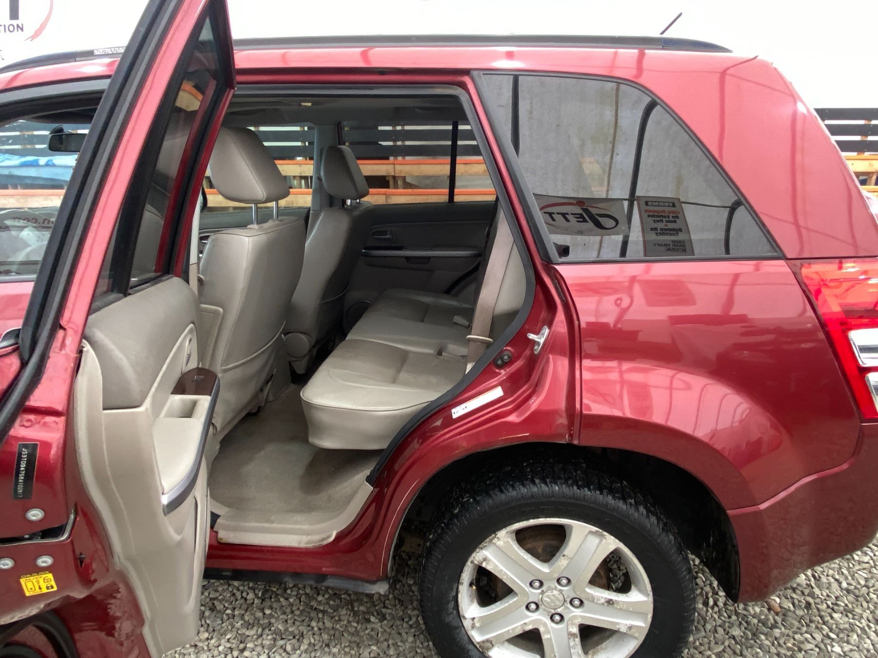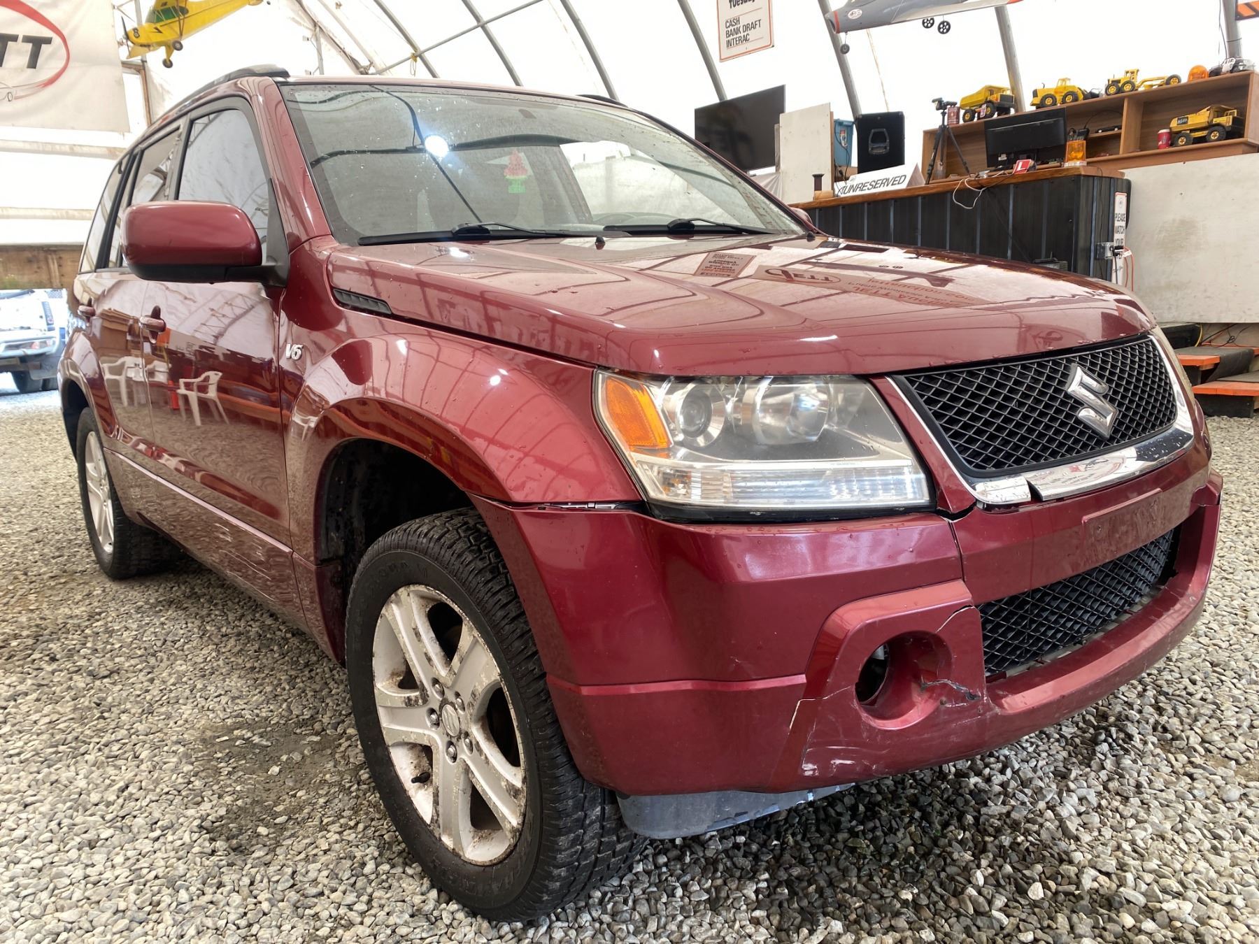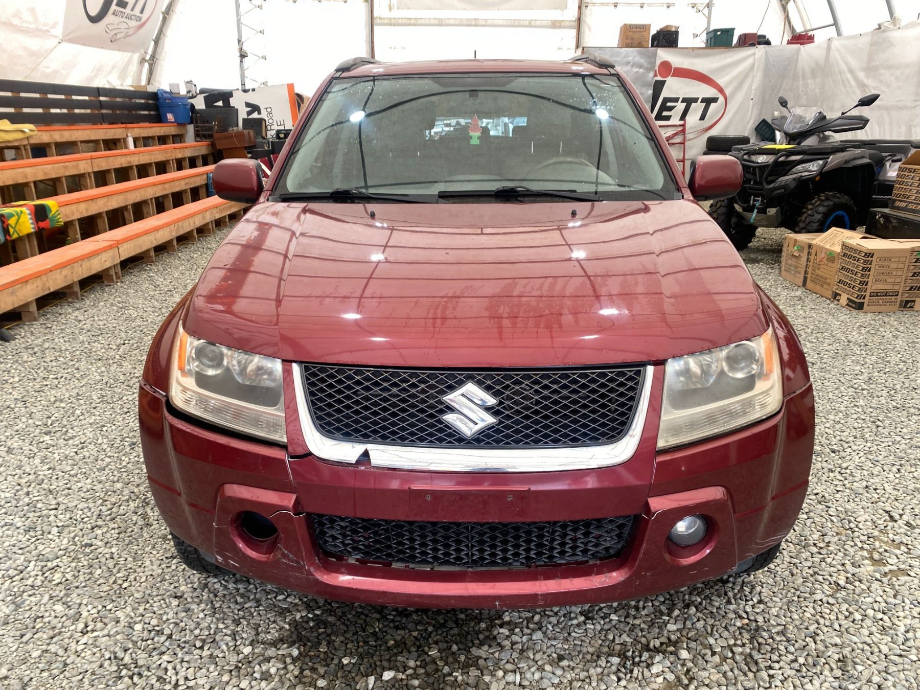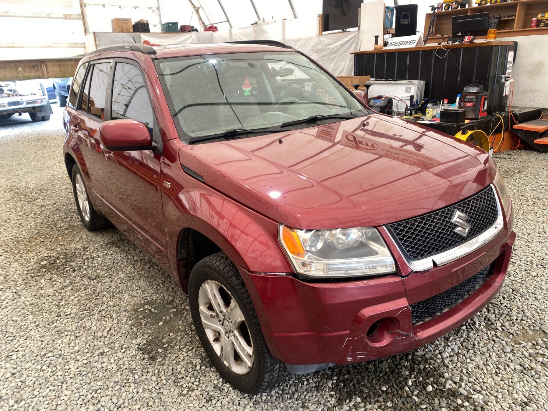 2008 SUZUKI GRAND VITARA, RED, 325640 KMS, 2.7L, 6 CYLINDER, GASOLINE, AUTOMATIC, TRANSMISSION, 4X4, 5 PASSENGER. AIR CONDITIONING, POWER WINDOWS, POWER LOCKS, KEY-LESS ENTRY, TILT STEERING, CRUISE CONTROL, ALLOY WHEELS, ANTI THEFT, DUAL AIR BAGS, POWER SUNROOF, CD PLAYER, CD STACKER, LEATHER SEATS, POWER SEATS, HEATED SEATS, TRACTION CONTROL, FOG LIGHTS, POWER MIRRORS, SPLIT-FOLDING REAR SEATS. DECLARATIONS: NO DESIGNATIONS 3 ACCIDENTS 1 GLASS CLAIM, TOTALLING $2032. SERVICE HISTORY SHOWS20 RECORDS. AUCTION NOTES: RADIATOR HAS A LEAK STOCK #: P102817 JS3TD947584102817 NOT MECHANICALLY INSPECTED, NOT SUITABLE FOR TRANSPORTATION, MUST TOW.