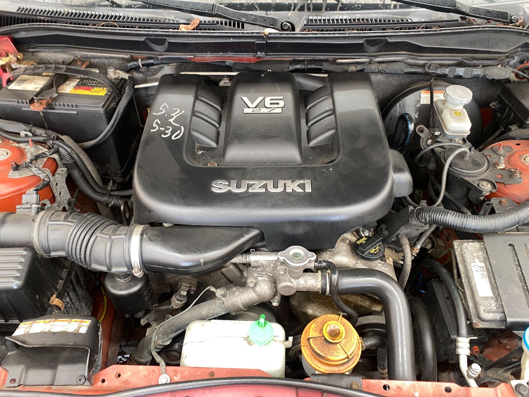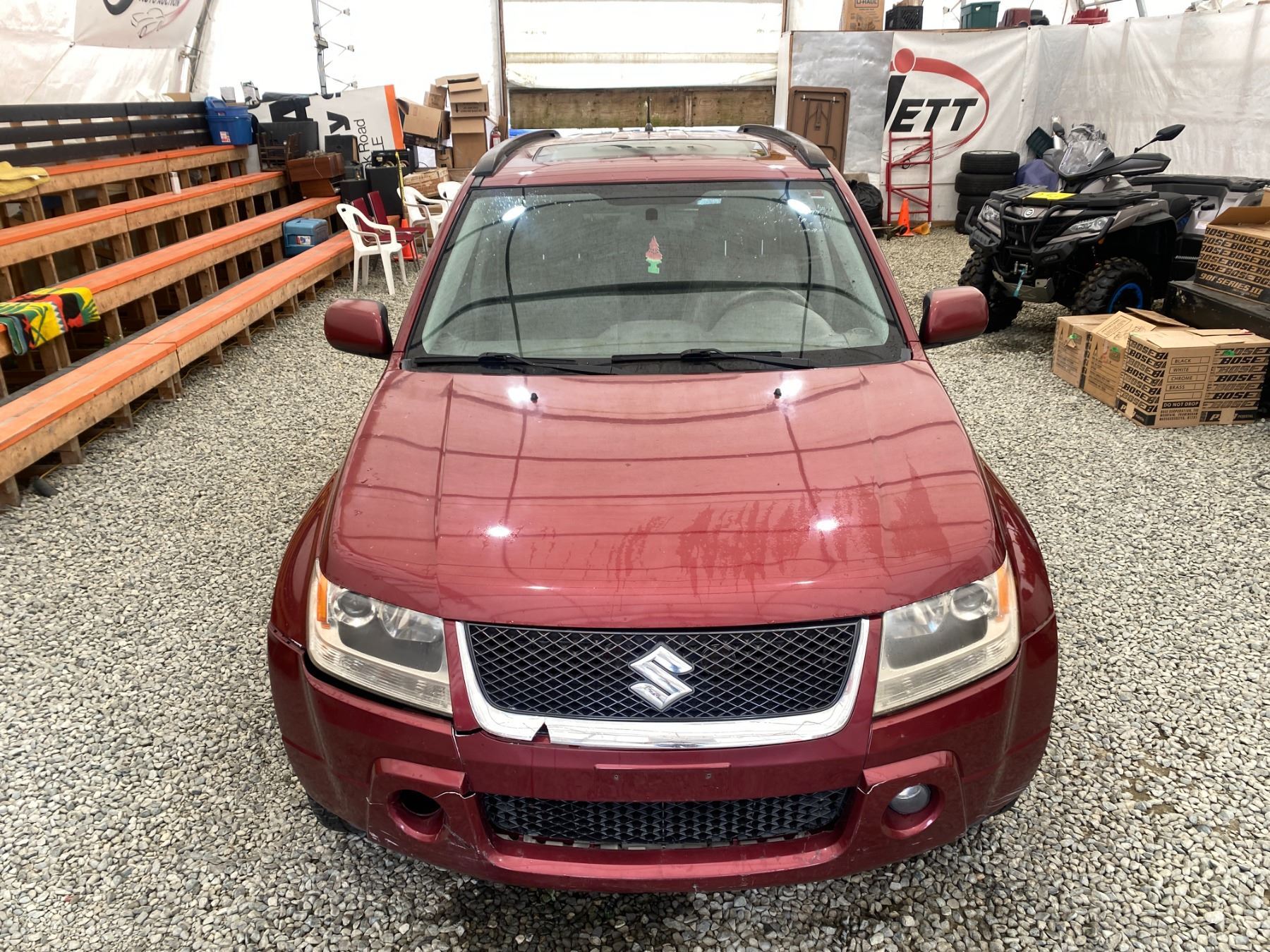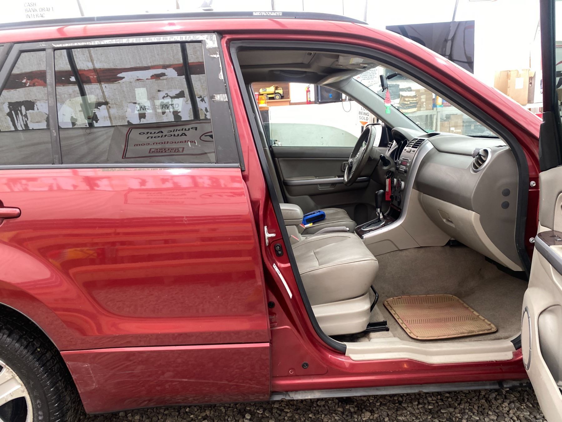 2008 SUZUKI GRAND VITARA, RED, 325640 KMS, 2.7L, 6 CYLINDER, GASOLINE, AUTOMATIC, TRANSMISSION, 4X4, 5 PASSENGER. AIR CONDITIONING, POWER WINDOWS, POWER LOCKS, KEY-LESS ENTRY, TILT STEERING, CRUISE CONTROL, ALLOY WHEELS, ANTI THEFT, DUAL AIR BAGS, POWER SUNROOF, CD PLAYER, CD STACKER, LEATHER SEATS, POWER SEATS, HEATED SEATS, TRACTION CONTROL, FOG LIGHTS, POWER MIRRORS, SPLIT-FOLDING REAR SEATS. DECLARATIONS: NO DESIGNATIONS 3 ACCIDENTS 1 GLASS CLAIM, TOTALLING $2032. SERVICE HISTORY SHOWS20 RECORDS. AUCTION NOTES: RADIATOR HAS A LEAK STOCK #: P102817 JS3TD947584102817 NOT MECHANICALLY INSPECTED, NOT SUITABLE FOR TRANSPORTATION, MUST TOW.