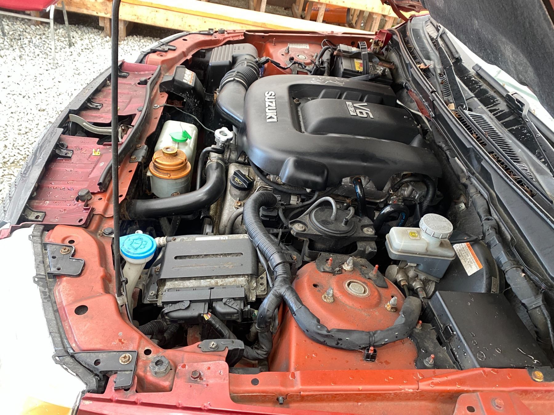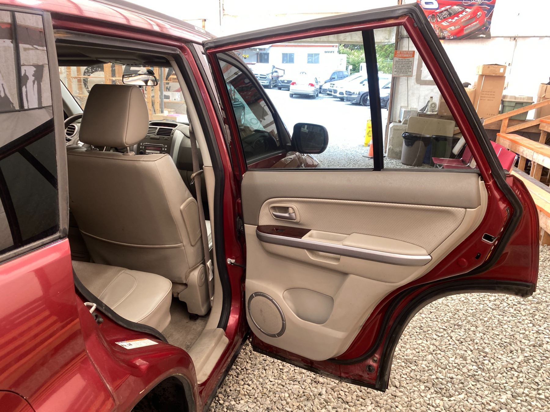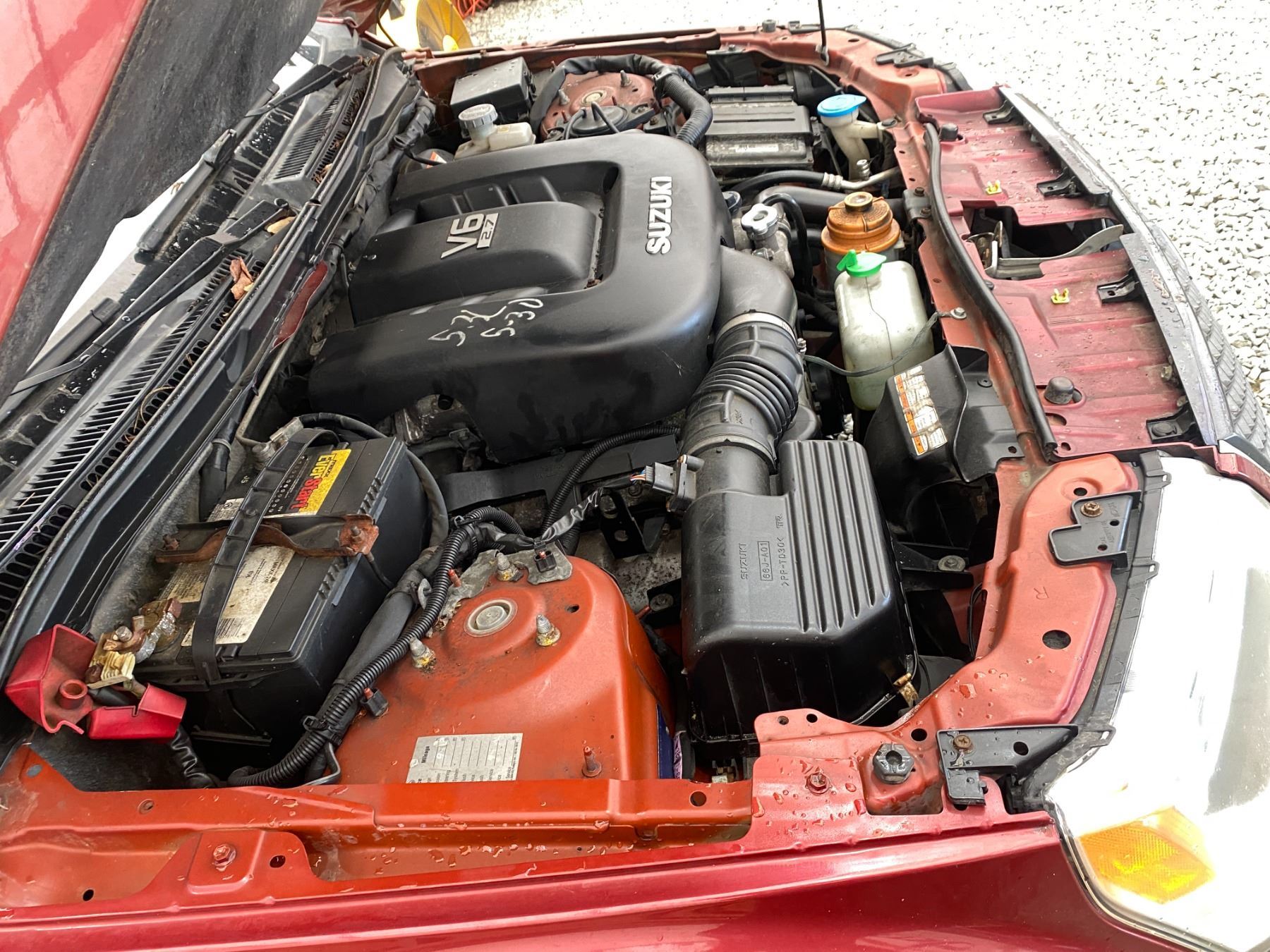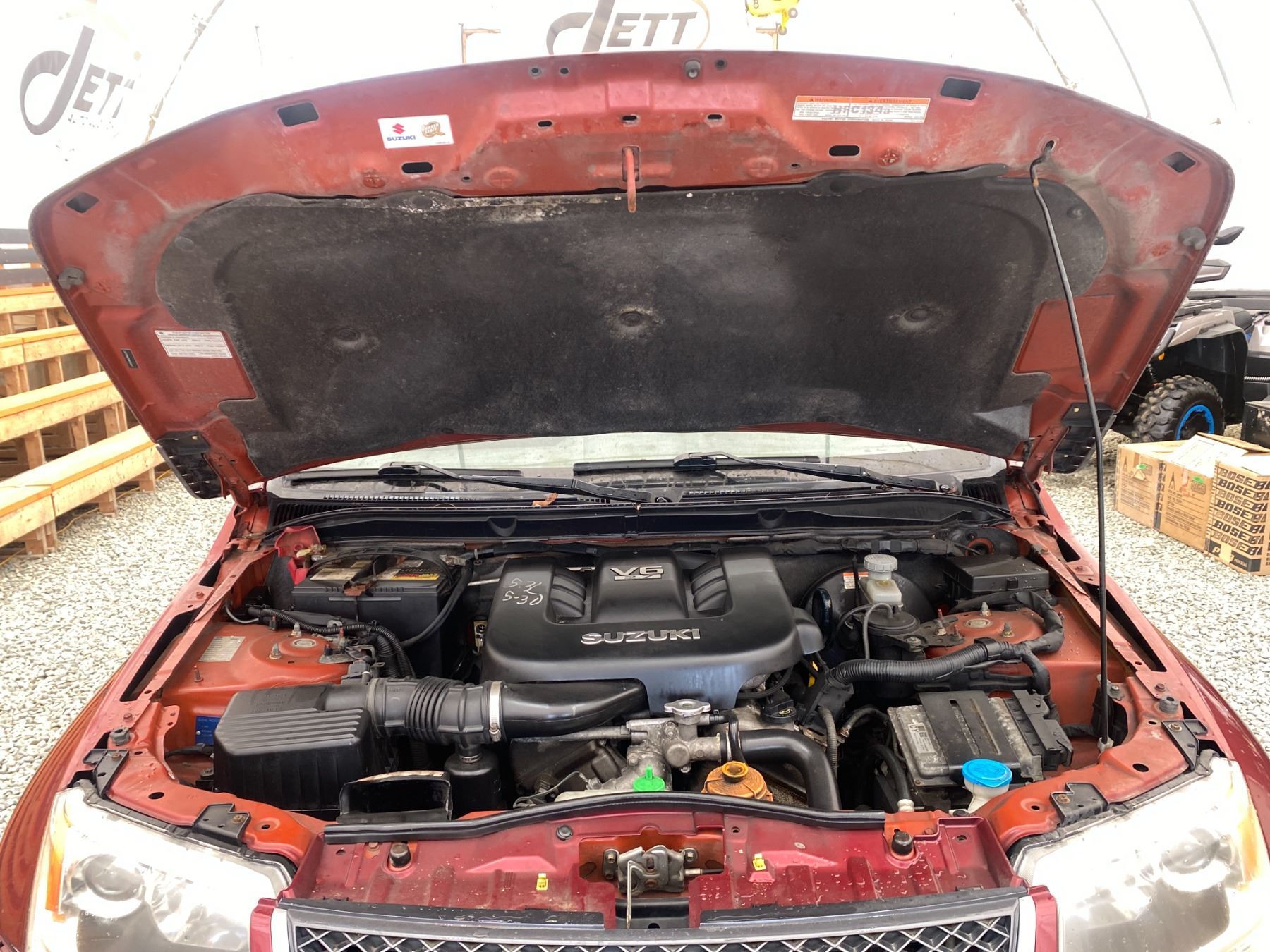 2008 SUZUKI GRAND VITARA, RED, 325640 KMS, 2.7L, 6 CYLINDER, GASOLINE, AUTOMATIC, TRANSMISSION, 4X4, 5 PASSENGER. AIR CONDITIONING, POWER WINDOWS, POWER LOCKS, KEY-LESS ENTRY, TILT STEERING, CRUISE CONTROL, ALLOY WHEELS, ANTI THEFT, DUAL AIR BAGS, POWER SUNROOF, CD PLAYER, CD STACKER, LEATHER SEATS, POWER SEATS, HEATED SEATS, TRACTION CONTROL, FOG LIGHTS, POWER MIRRORS, SPLIT-FOLDING REAR SEATS. DECLARATIONS: NO DESIGNATIONS 3 ACCIDENTS 1 GLASS CLAIM, TOTALLING $2032. SERVICE HISTORY SHOWS20 RECORDS. AUCTION NOTES: RADIATOR HAS A LEAK STOCK #: P102817 JS3TD947584102817 NOT MECHANICALLY INSPECTED, NOT SUITABLE FOR TRANSPORTATION, MUST TOW.