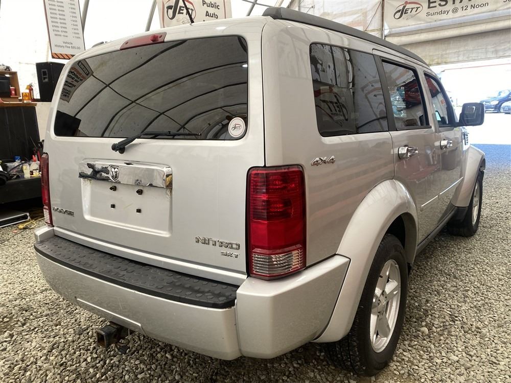 2010 DODGE NITRO, SILVER, 298889 KMS, 3.7L, 6 CYLINDER, GASOLINE, AUTOMATIC, TRANSMISSION, FOUR WHEEL DRIVE, 5 PASSENGER. AIR CONDITIONING, POWER WINDOWS, POWER LOCKS, KEY-LESS ENTRY, TILT STEERING, CRUISE CONTROL, ALLOY WHEELS, ANTI THEFT, DUAL AIR BAGS, CD PLAYER, BLUETOOTH, LEATHER SEATS, HEATED SEATS, TRACTION CONTROL, FOG LIGHTS, ROOF RACK, TOW PACKAGE, POWER MIRRORS, SPLIT-FOLDING REAR SEATS. DECLARATIONS: NO DESIGNATIONS 2 ACCIDENTS 1 GLASS CLAIM, TOTALLING $5043. SERVICE HISTORY SHOWS3 RECORDS. AUCTION NOTES: STOCK #: D102392 1D4PU5GK2AW102392 NOT MECHANICALLY INSPECTED, NOT SUITABLE FOR TRANSPORTATION, MUST TOW.