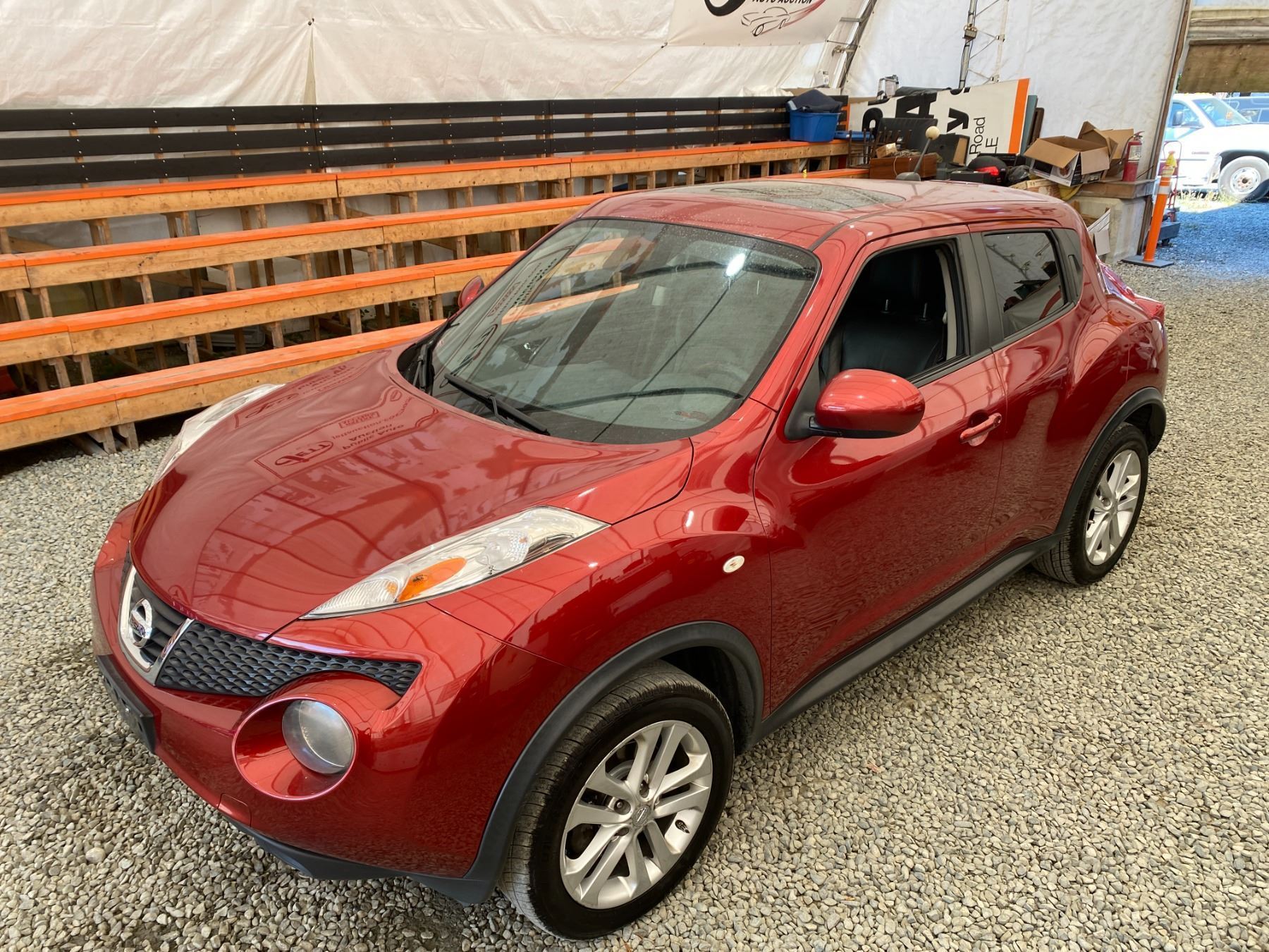 2011 NISSAN JUKE, BURGUNDY, 223696 KMS, 1.6L, 4 CYLINDER, GASOLINE, 6 SPEED MANUAL, TRANSMISSION, FRONT WHEEL DRIVE, 5 PASSENGER. AIR CONDITIONING, POWER WINDOWS, POWER LOCKS, KEY-LESS ENTRY, TILT STEERING, CRUISE CONTROL, ALLOY WHEELS, ANTI THEFT, DUAL AIR BAGS, POWER SUNROOF, CD PLAYER, BLUETOOTH, LEATHER SEATS, POWER SEATS, HEATED SEATS, BACK UP CAMERA, TRACTION CONTROL, STEERING WHEEL CONTROLS, POWER MIRRORS, . DECLARATIONS: NO DESIGNATIONS 0 ACCIDENTS 1 GLASS CLAIM, TOTALLING $570. SERVICE HISTORY SHOWS11 RECORDS. AUCTION NOTES: STOCK #: D020106 JN8AF5MR6BT020106 NOT MECHANICALLY INSPECTED, NOT SUITABLE FOR TRANSPORTATION, MUST TOW.