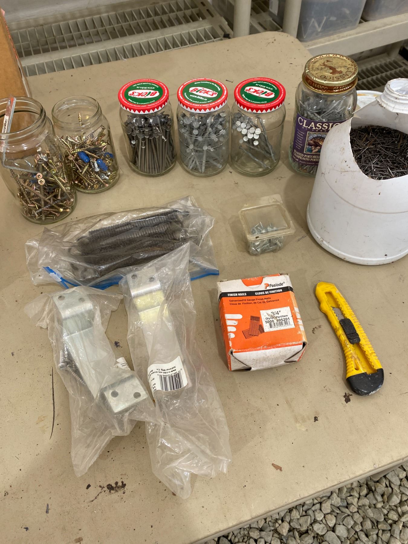 - Sorted nails in glasses