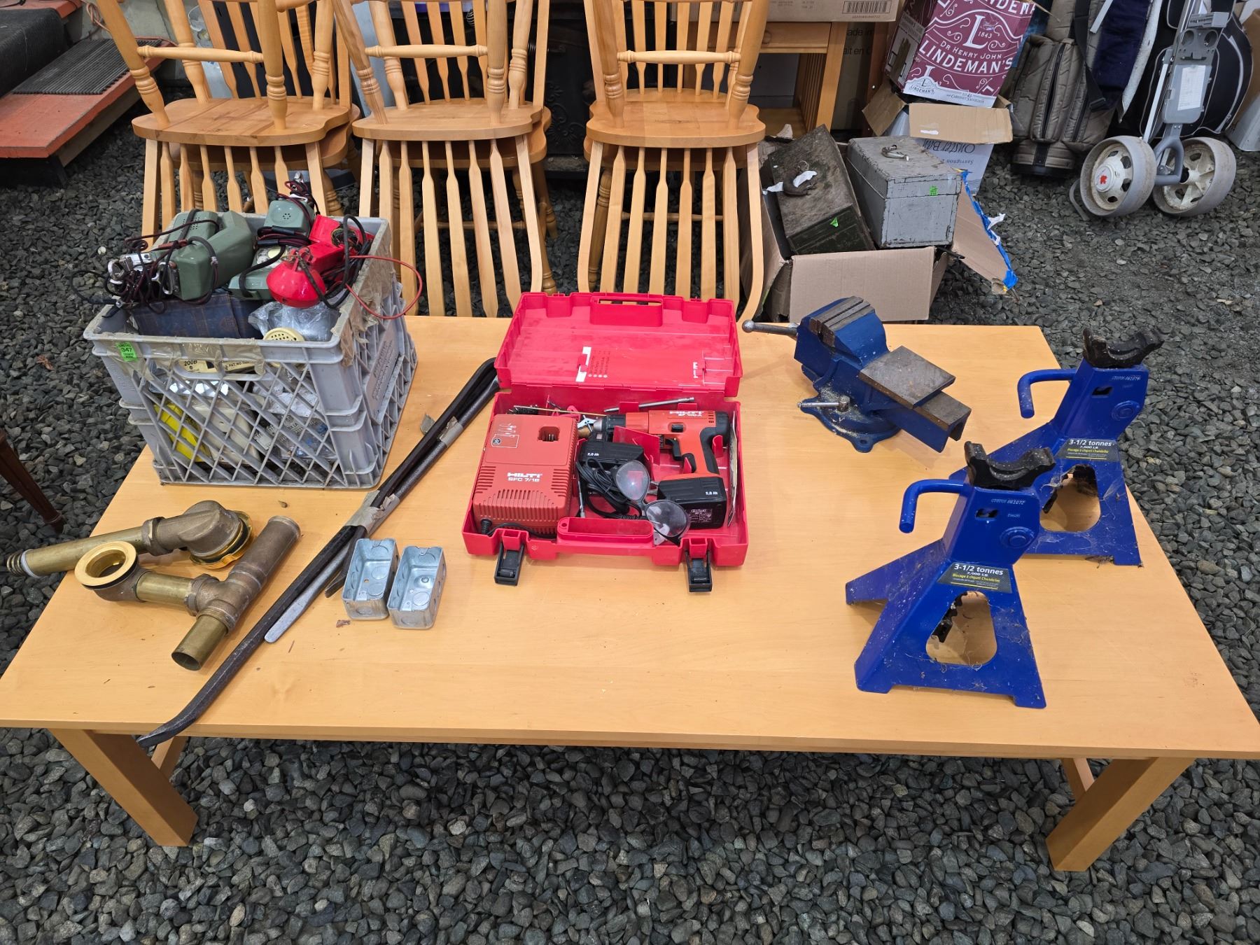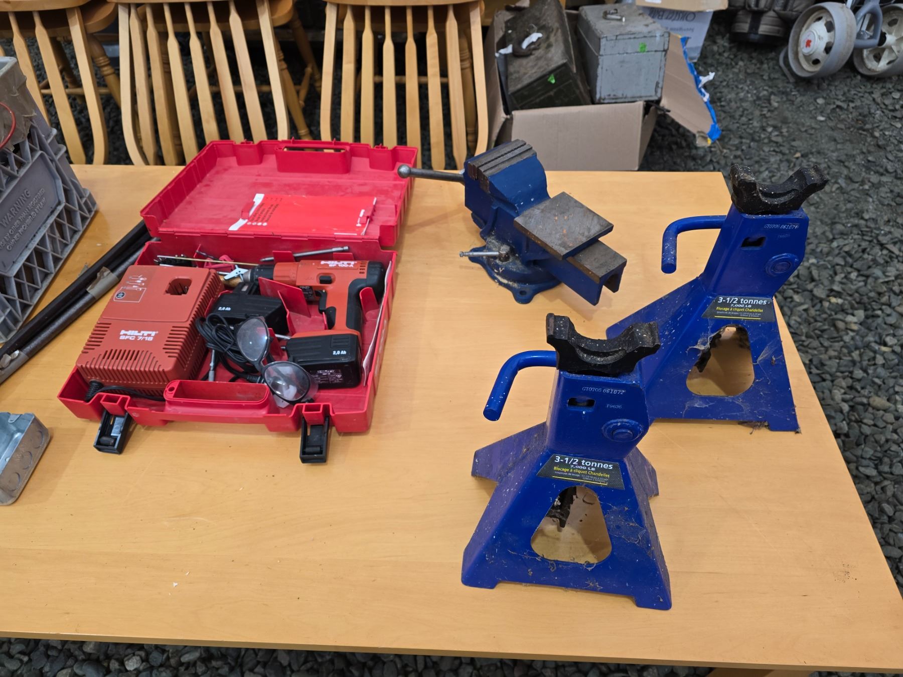 HILTI DRILL, FLOOR JACKS AND VICE