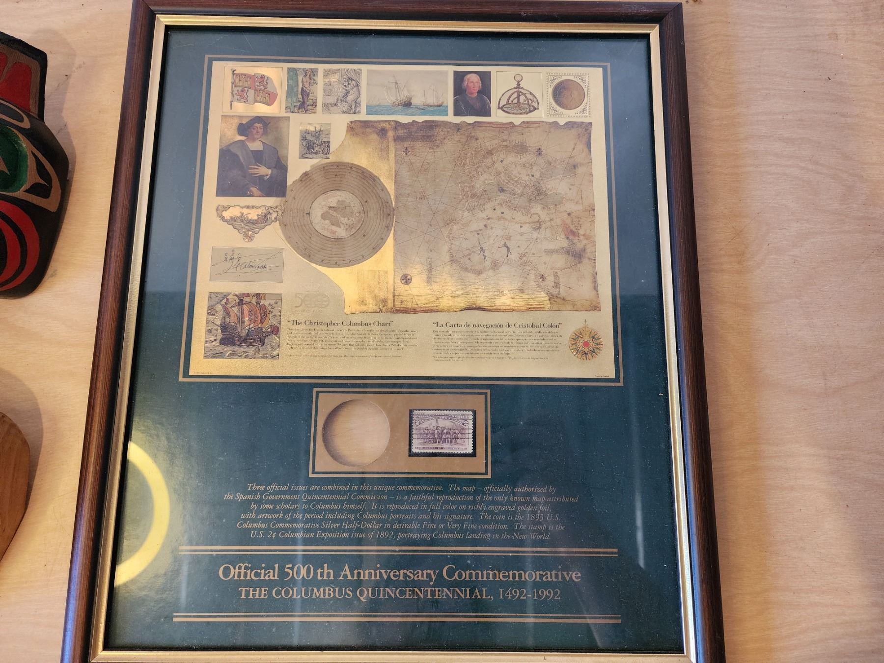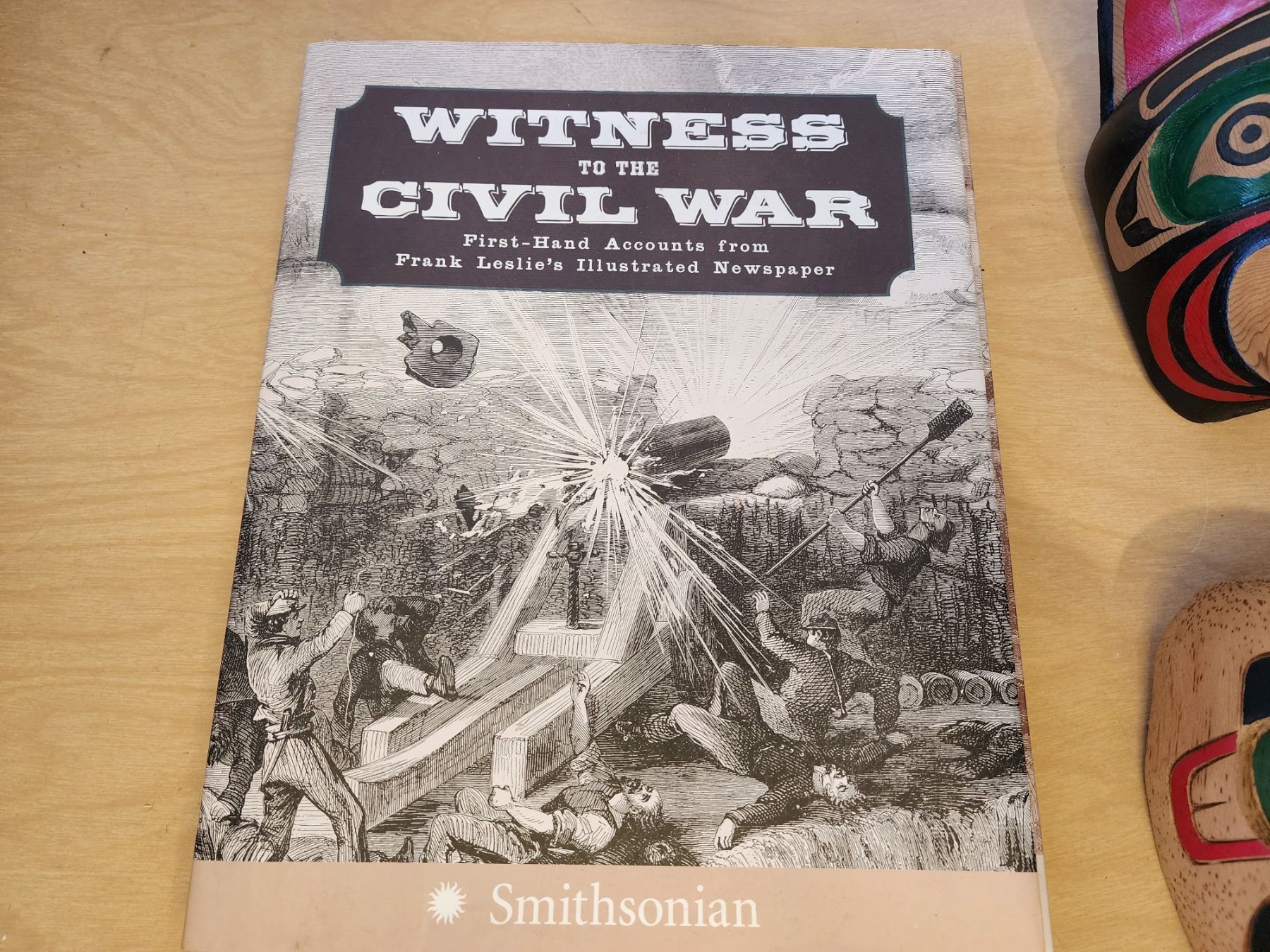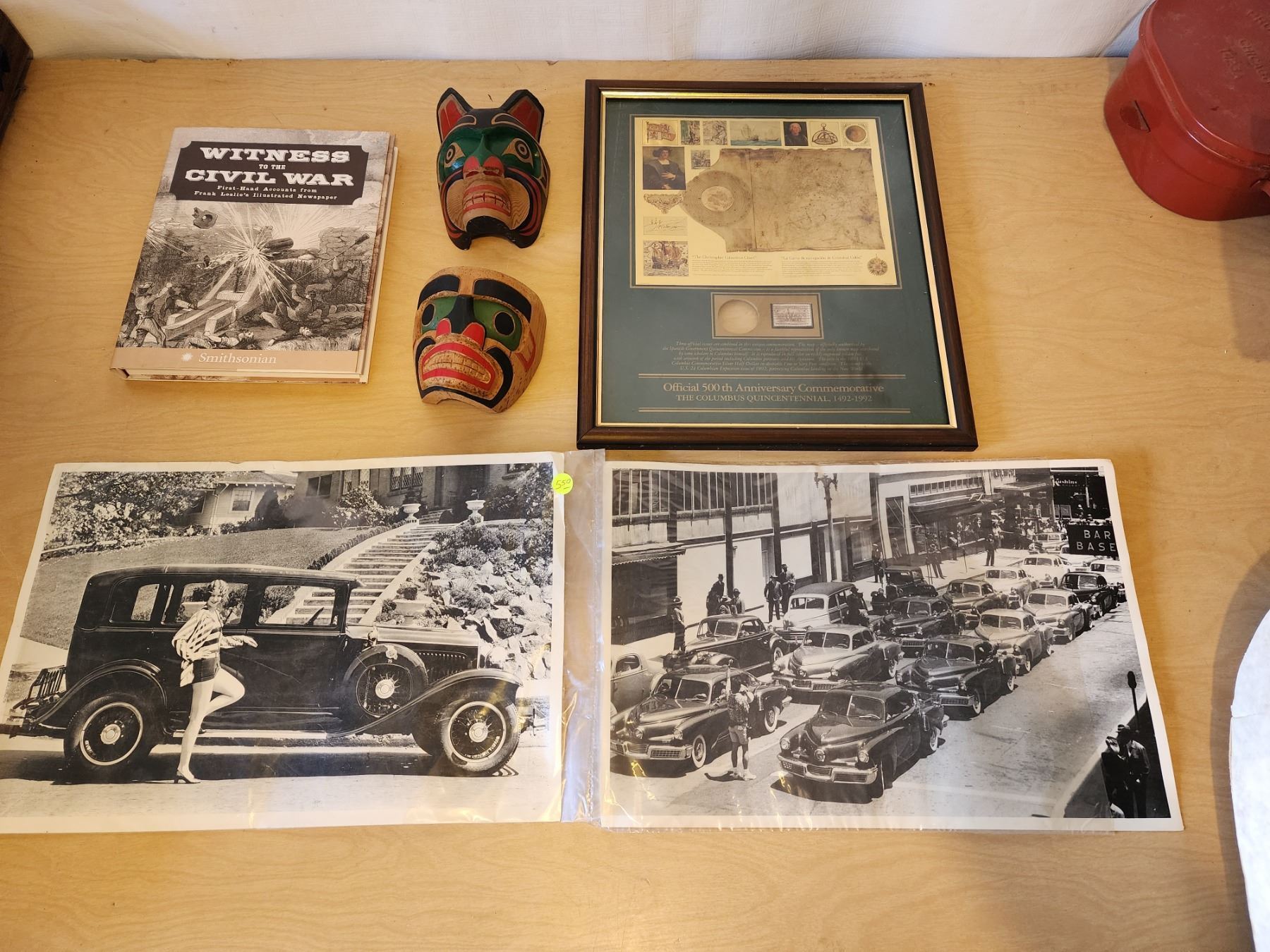 HANDCARVED AND PAINTED INDIGENOUS MASKS, CIVIL WAR HISTORY BOOK, COMLUMBUS QUINCENTENNIAL POST FRAME