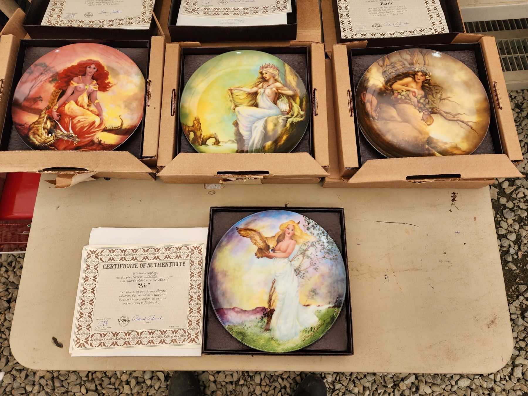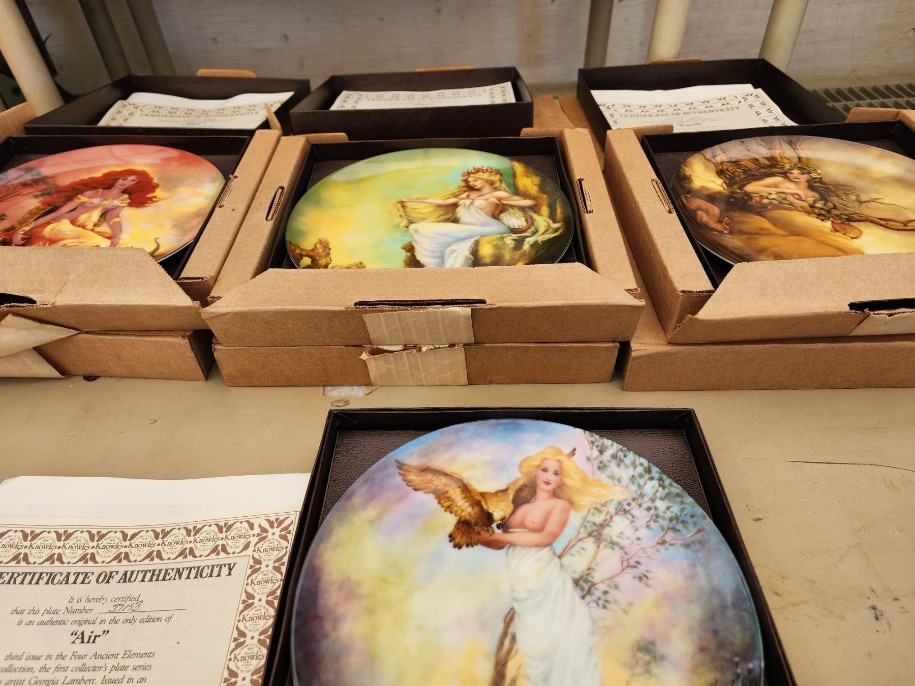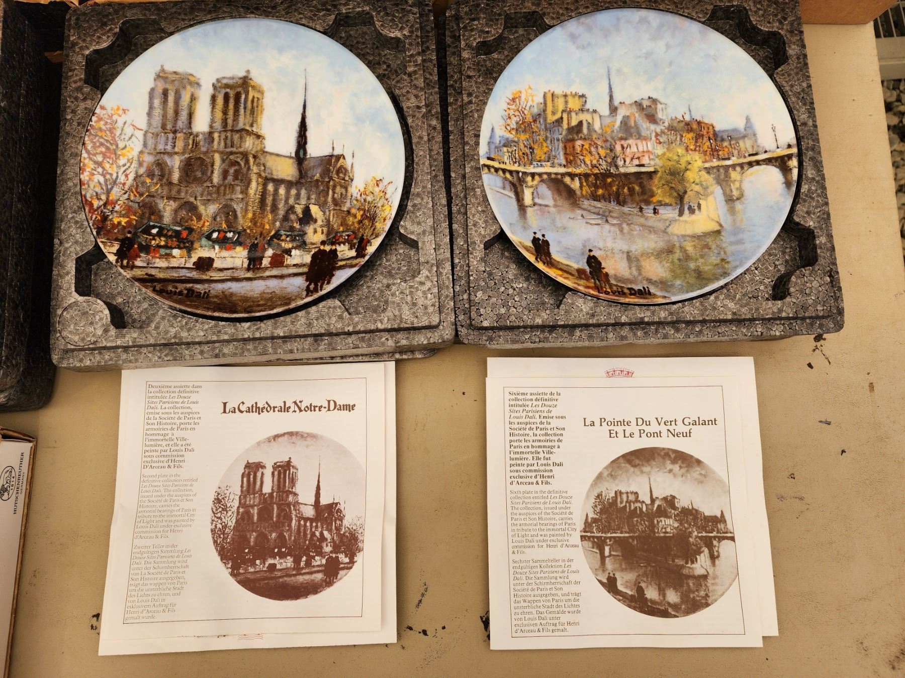 LARGE COLLECTION OF COLLECTABLE HAND PAINTED PLATES (CHRISTIAN BELL PORCELAIN TRAIN PLATES, ANCIENT ELEMENTS FULL SET WITH EXTRAS, AND NOTABLE FRENCH ARCHITECTURE PLATES)