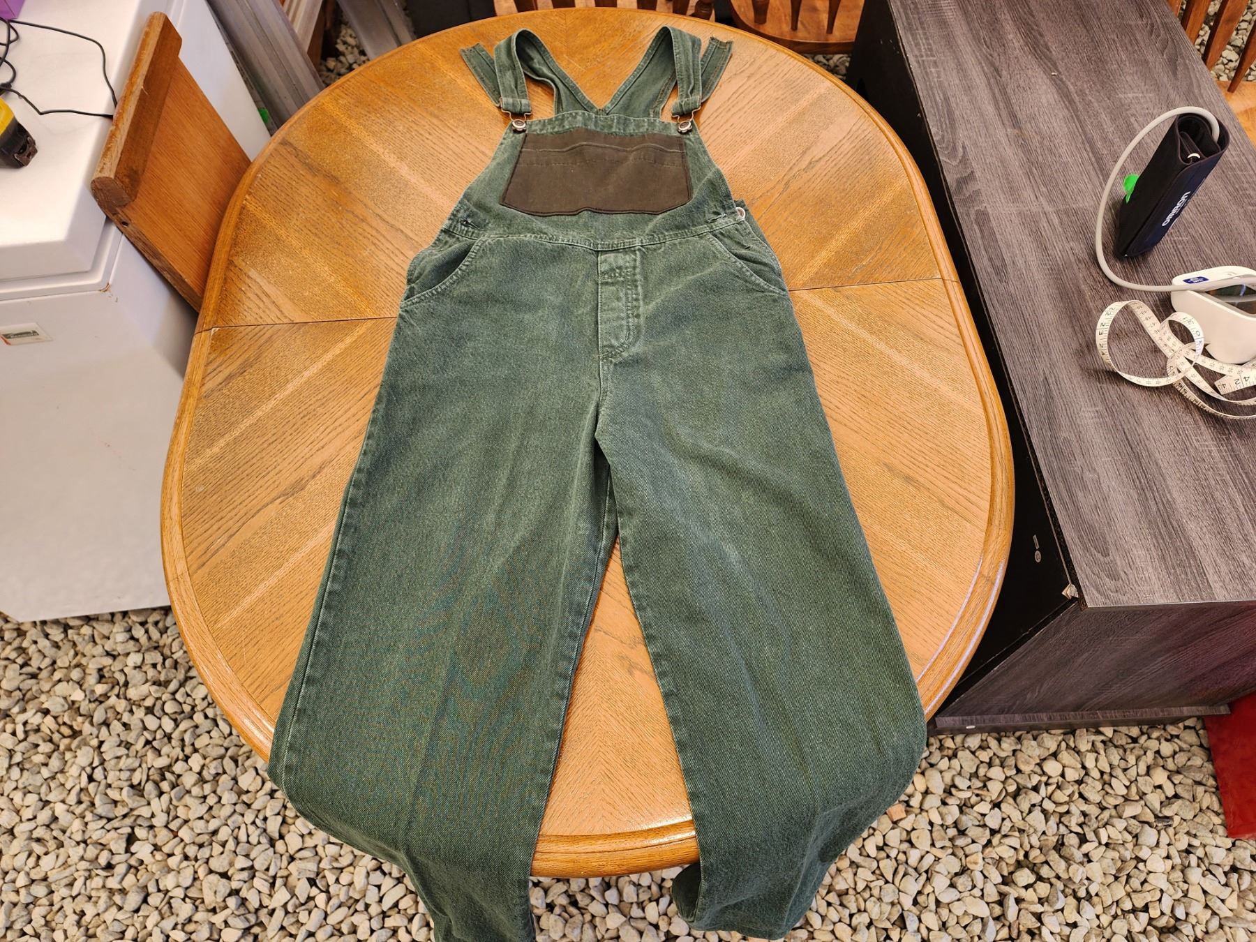 609 -- GREEN CORDUROY OVERALLS, GREEN VIRGIN WOOL AND CASHMERE COAT(SIZE 6)
