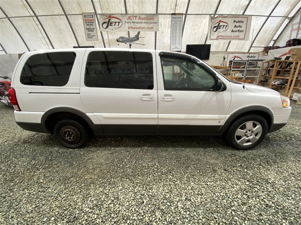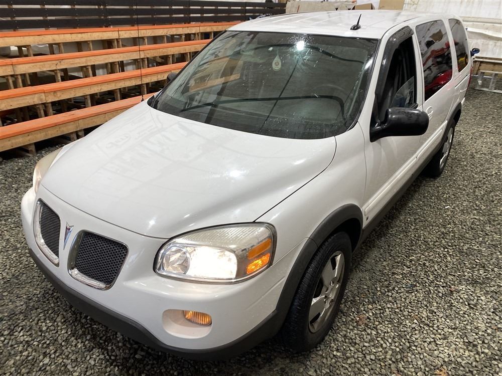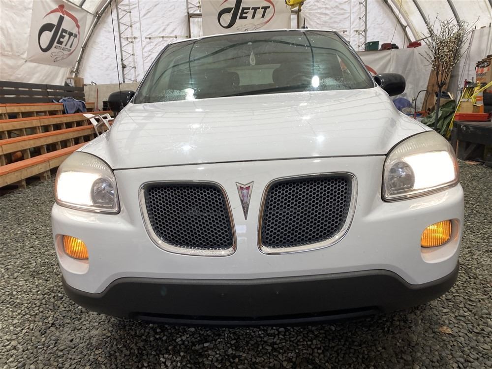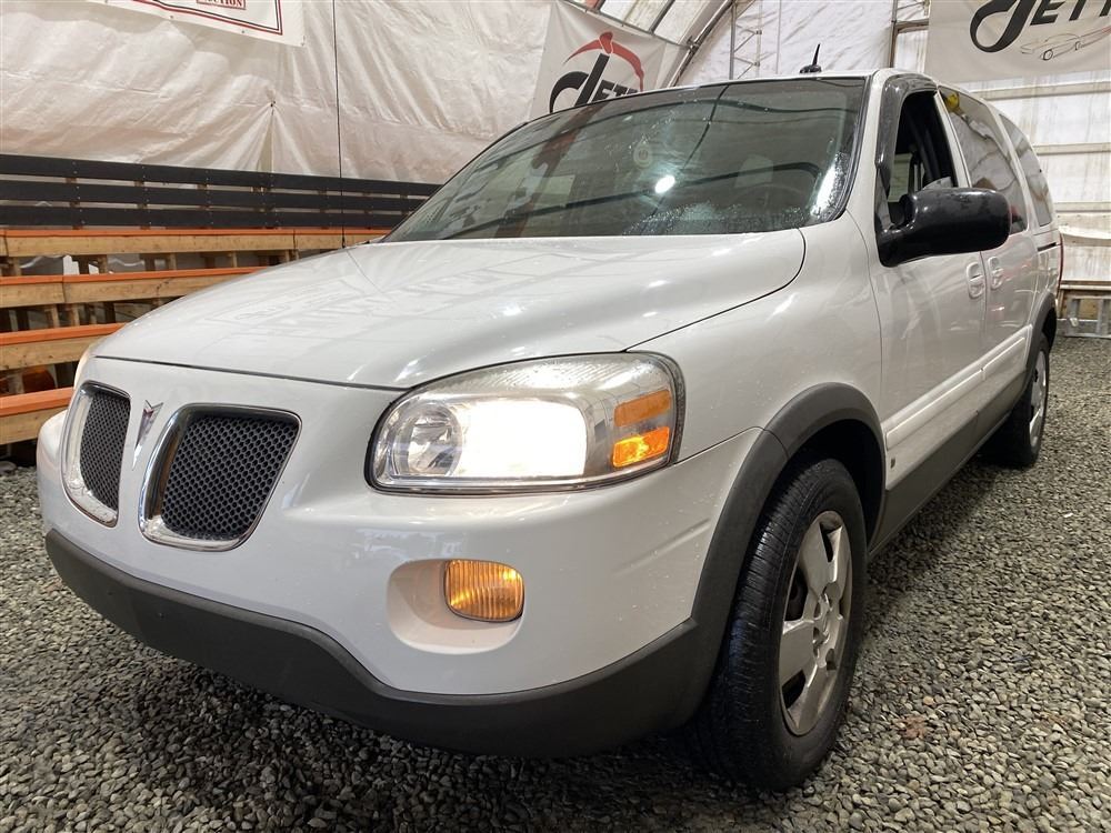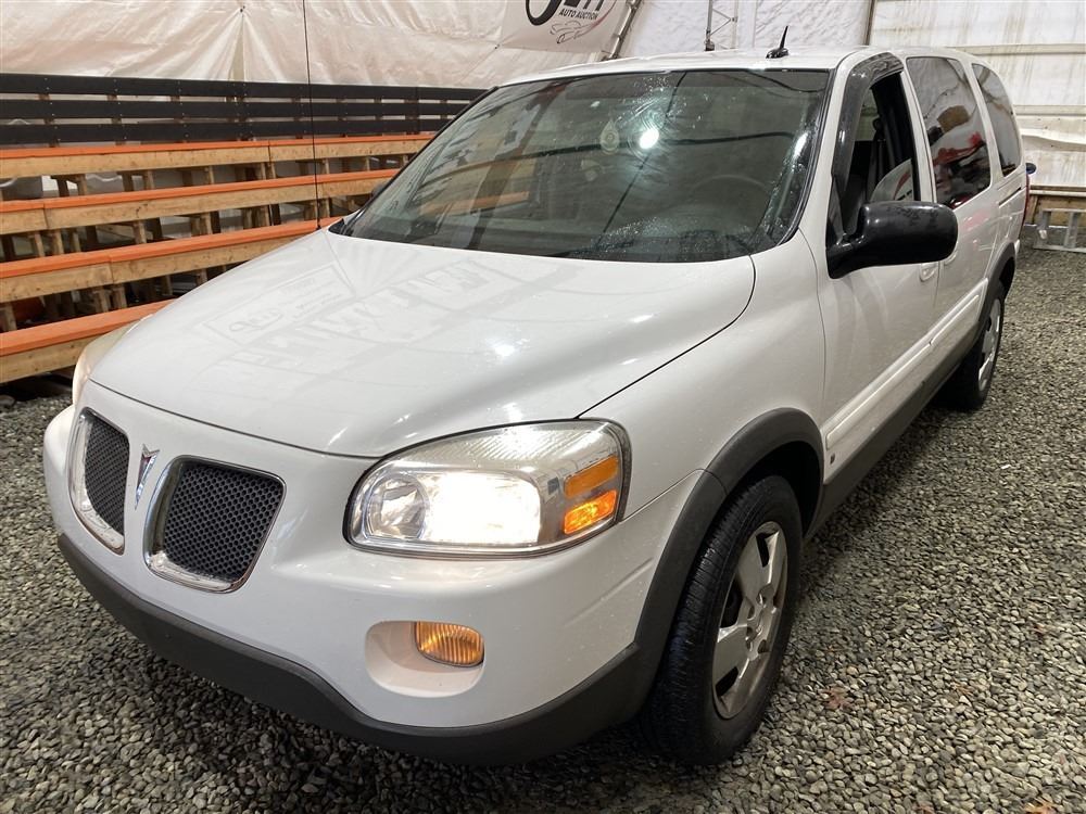 2008 PONTIAC MONTANA SV6, WHITE, 169143 KMS, 3.9L, 6 CYLINDER, GASOLINE, AUTOMATIC, TRANSMISSION, FRONT WHEEL DRIVE, 7 PASSENGER. AIR CONDITIONING, POWER WINDOWS, POWER LOCKS, KEY-LESS ENTRY, TILT STEERING, CRUISE CONTROL, ANTI THEFT, DUAL AIR BAGS, CD PLAYER, POWER MIRRORS, . DECLARATIONS: NO DESIGNATIONS 0 ACCIDENTS 0 GLASS CLAIM, TOTALING $0. SERVICE HISTORY SHOWS3 RECORDS.