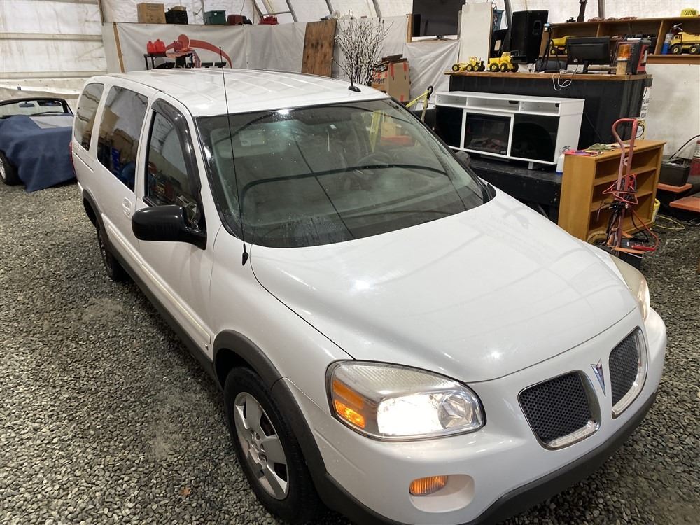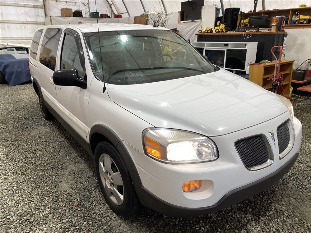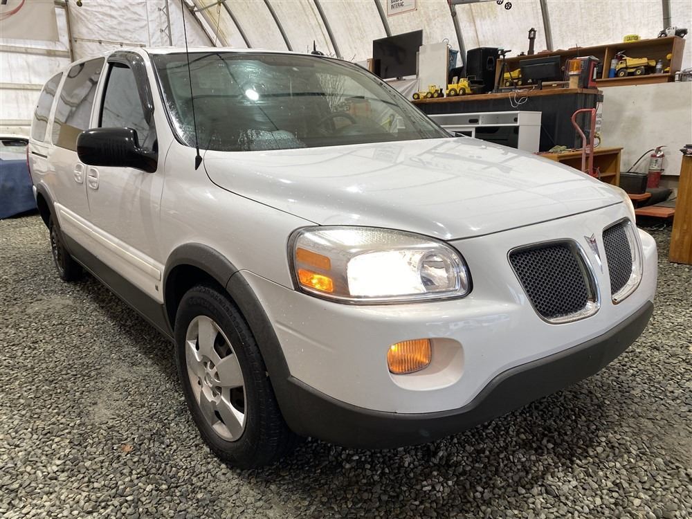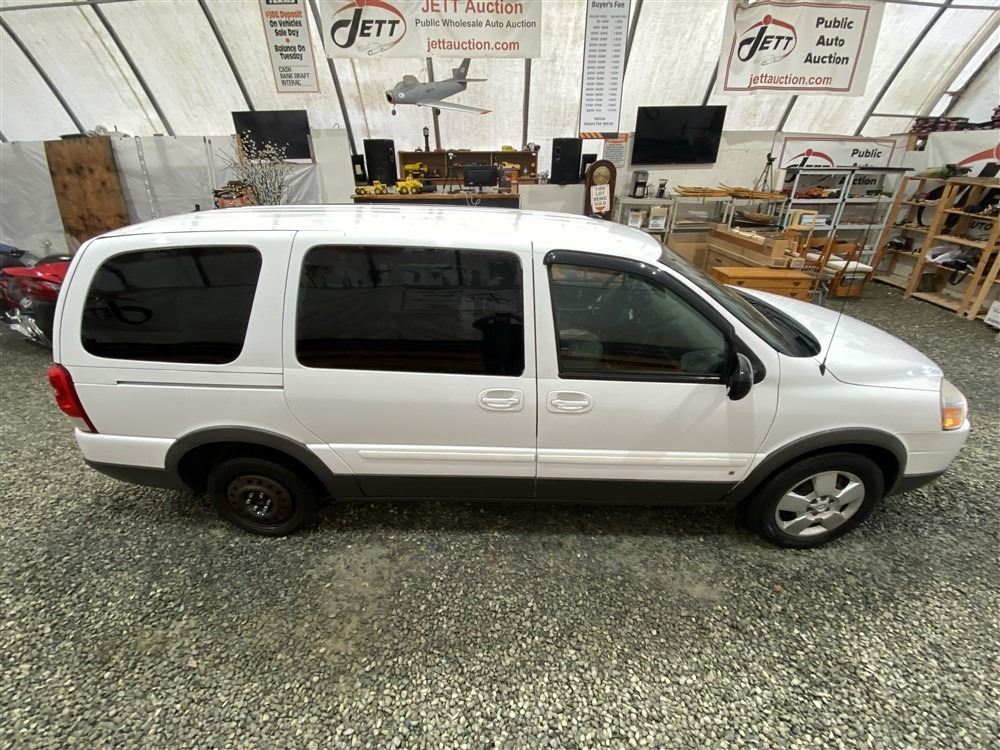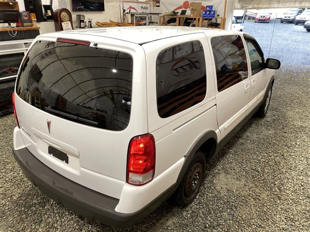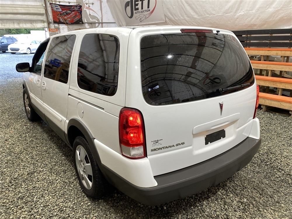 2008 PONTIAC MONTANA SV6, WHITE, 169143 KMS, 3.9L, 6 CYLINDER, GASOLINE, AUTOMATIC, TRANSMISSION, FRONT WHEEL DRIVE, 7 PASSENGER. AIR CONDITIONING, POWER WINDOWS, POWER LOCKS, KEY-LESS ENTRY, TILT STEERING, CRUISE CONTROL, ANTI THEFT, DUAL AIR BAGS, CD PLAYER, POWER MIRRORS, . DECLARATIONS: NO DESIGNATIONS 0 ACCIDENTS 0 GLASS CLAIM, TOTALING $0. SERVICE HISTORY SHOWS3 RECORDS.