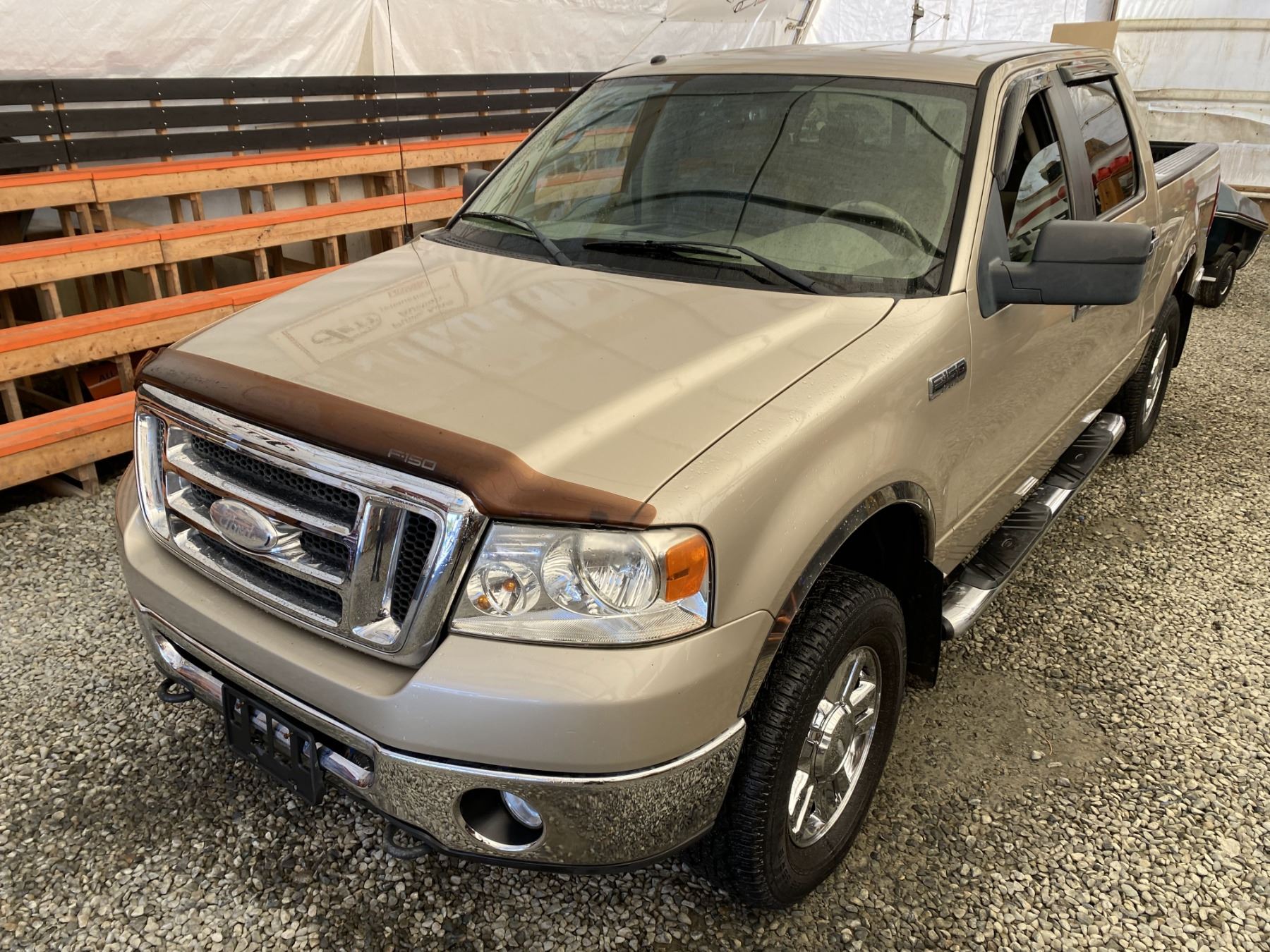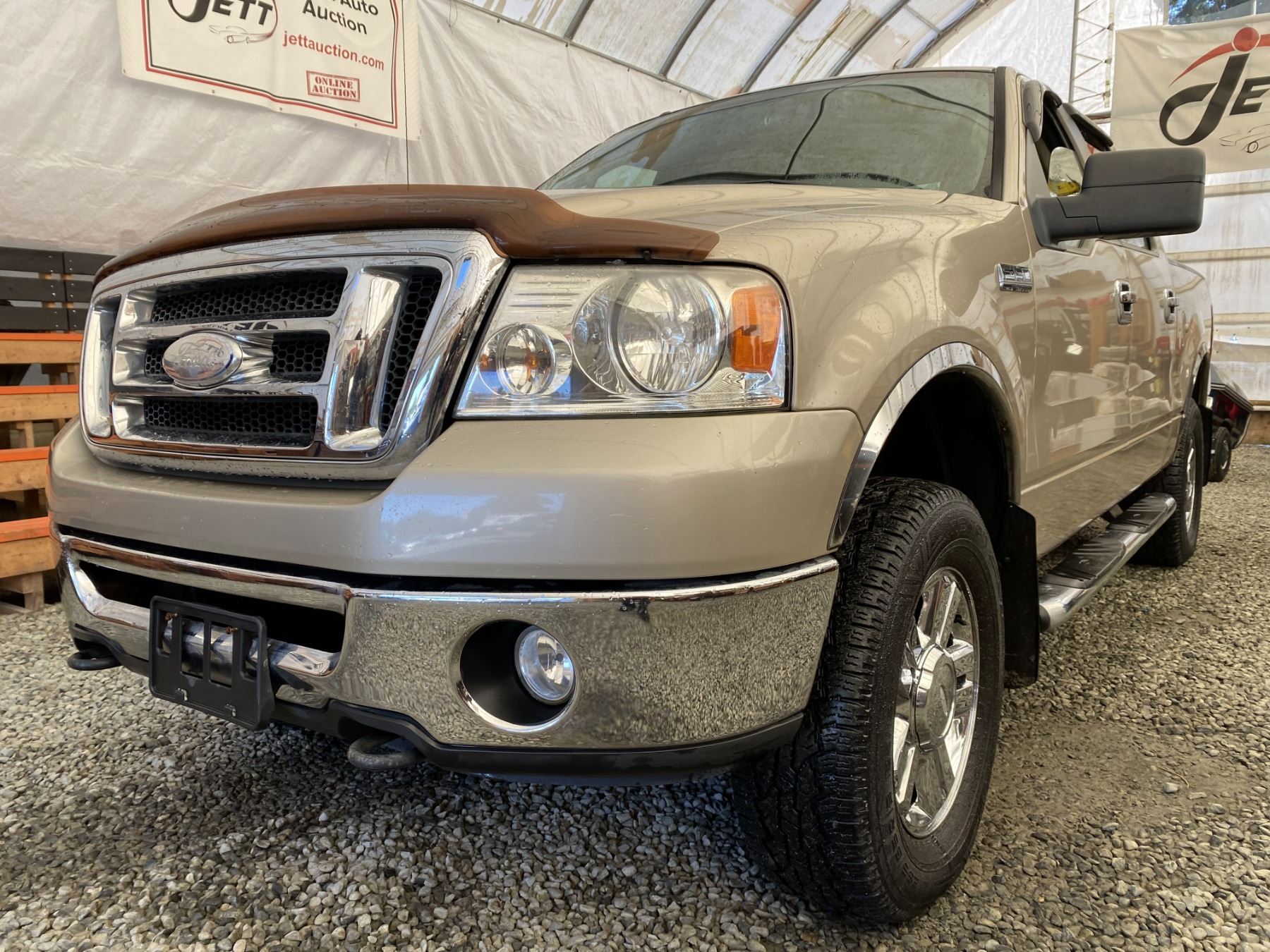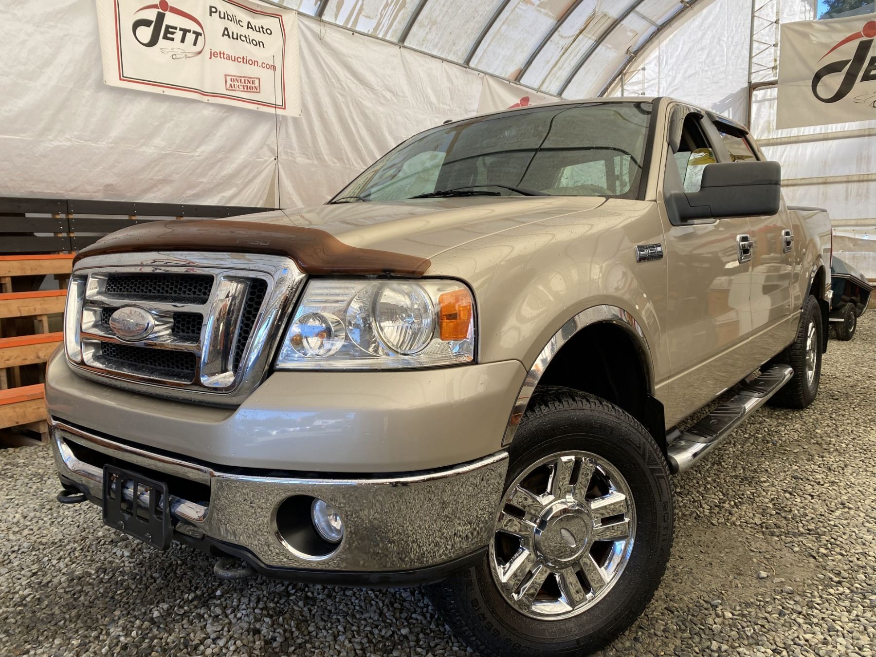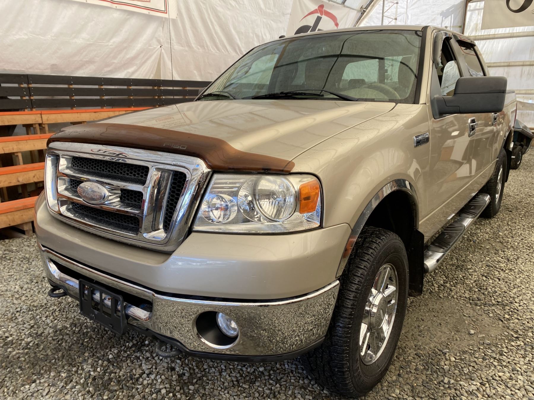 2008 FORD F150, GOLD, 215834 KMS, 5.4L, 8 CYLINDER, GASOLINE, AUTOMATIC, TRANSMISSION, 4X4, 6 PASSENGER. AIR CONDITIONING, POWER WINDOWS, POWER LOCKS, KEY-LESS ENTRY, TILT STEERING, CRUISE CONTROL, ALLOY WHEELS, ANTI THEFT, DUAL AIR BAGS, CD PLAYER, BLUETOOTH, AFTERMARKET STEREO, POWER SEATS, PARKING SENSORS, FOG LIGHTS, BOX LINER, TOW PACKAGE, SHORT BOX, POWER MIRRORS, SPLIT-FOLDING REAR SEATS. DECLARATIONS: NO DESIGNATIONS NOT MECHANICALLY INSPECTED, NOT SUITABLE FOR TRANSPORTATION. MUST TOW.1 ACCIDENTS 1 GLASS CLAIM, TOTALING $788. SERVICE HISTORY SHOWS16 RECORDS.