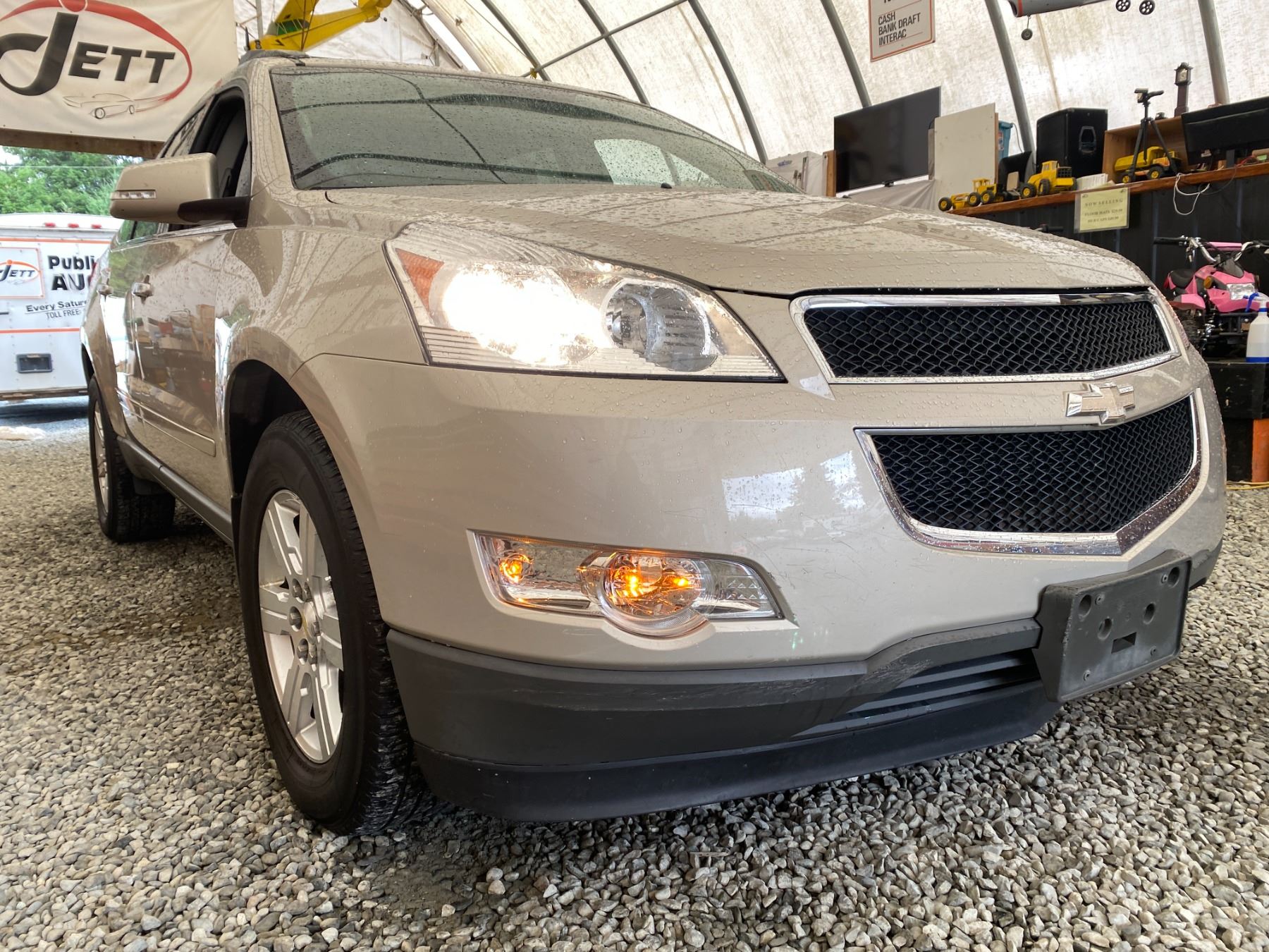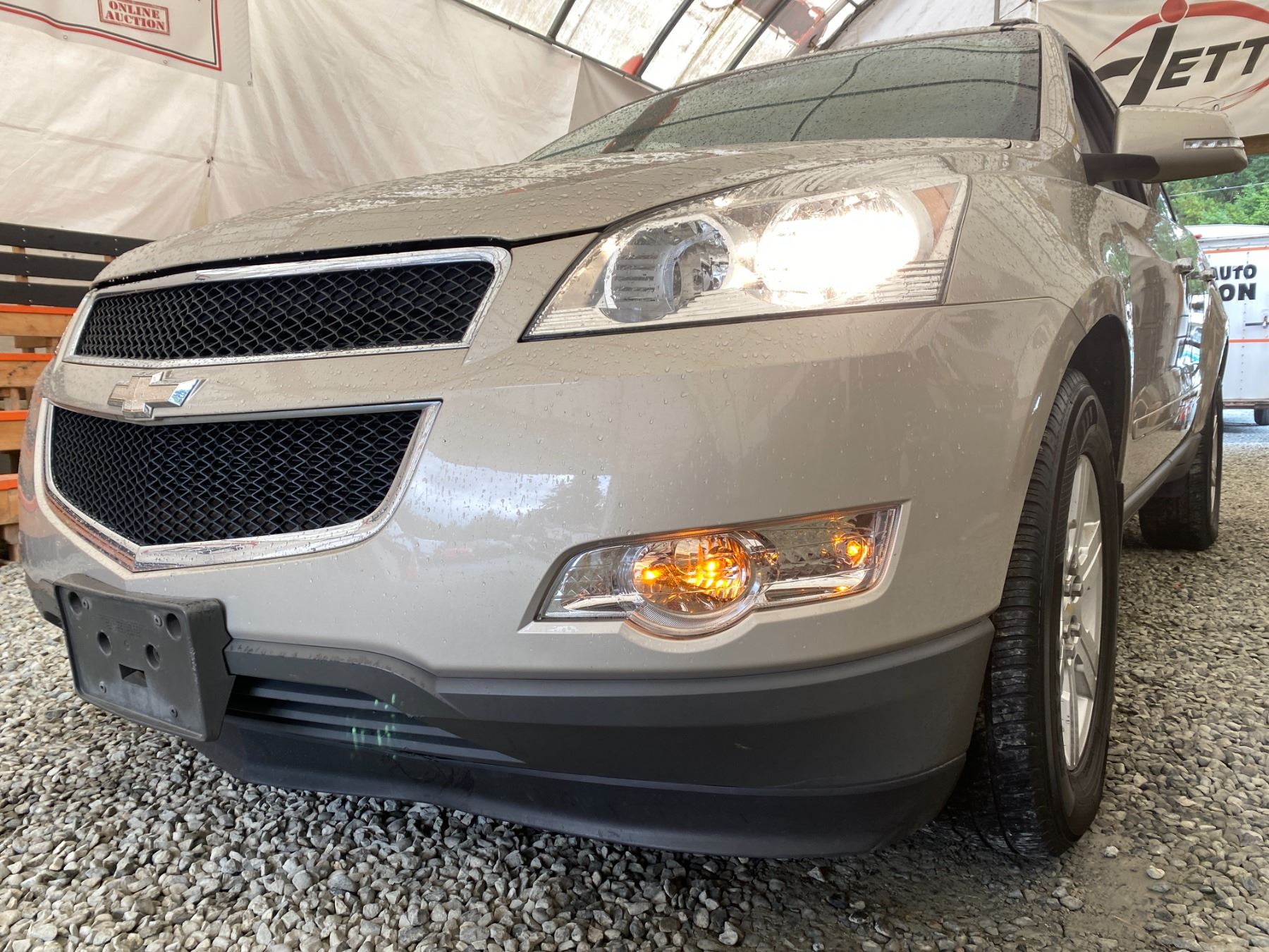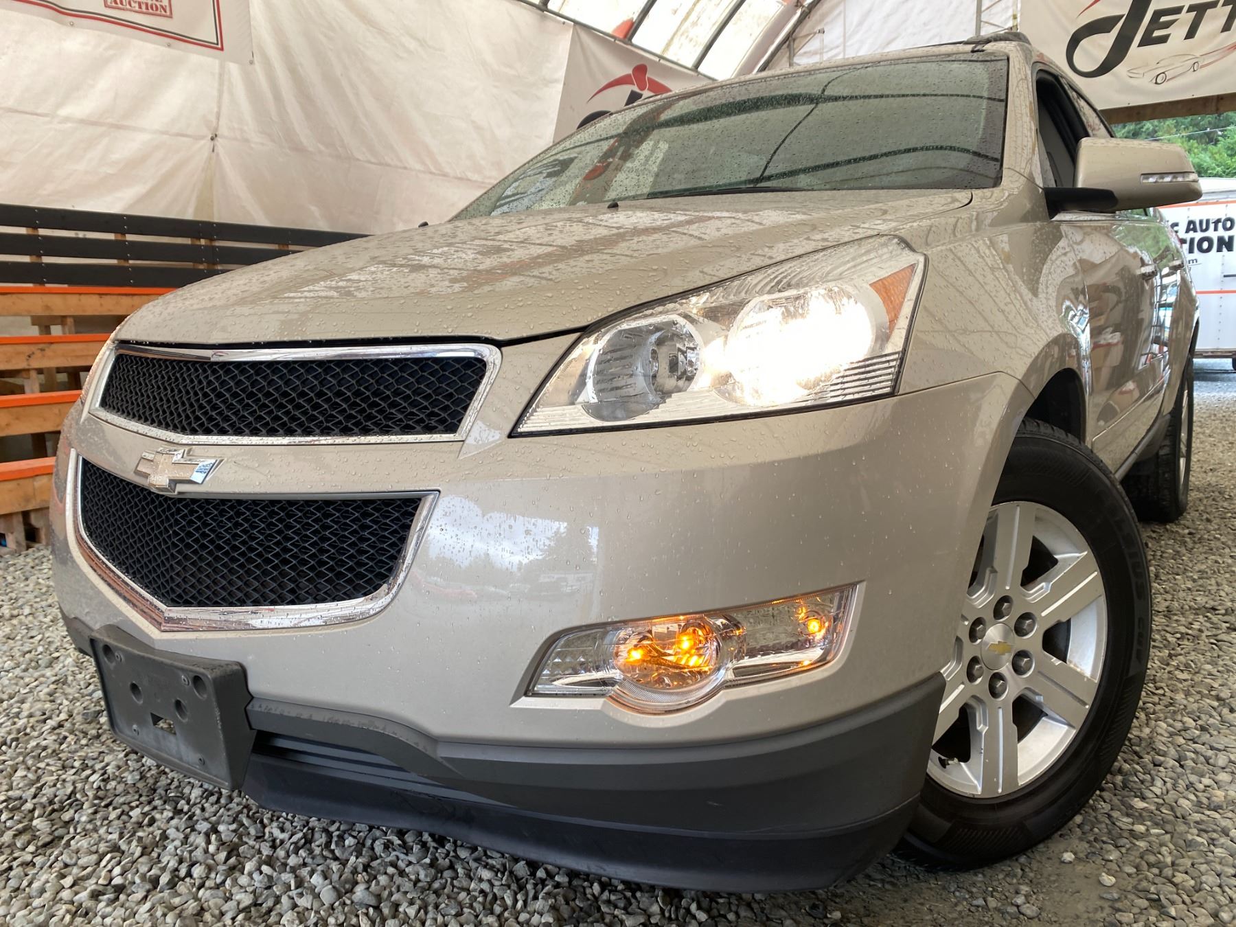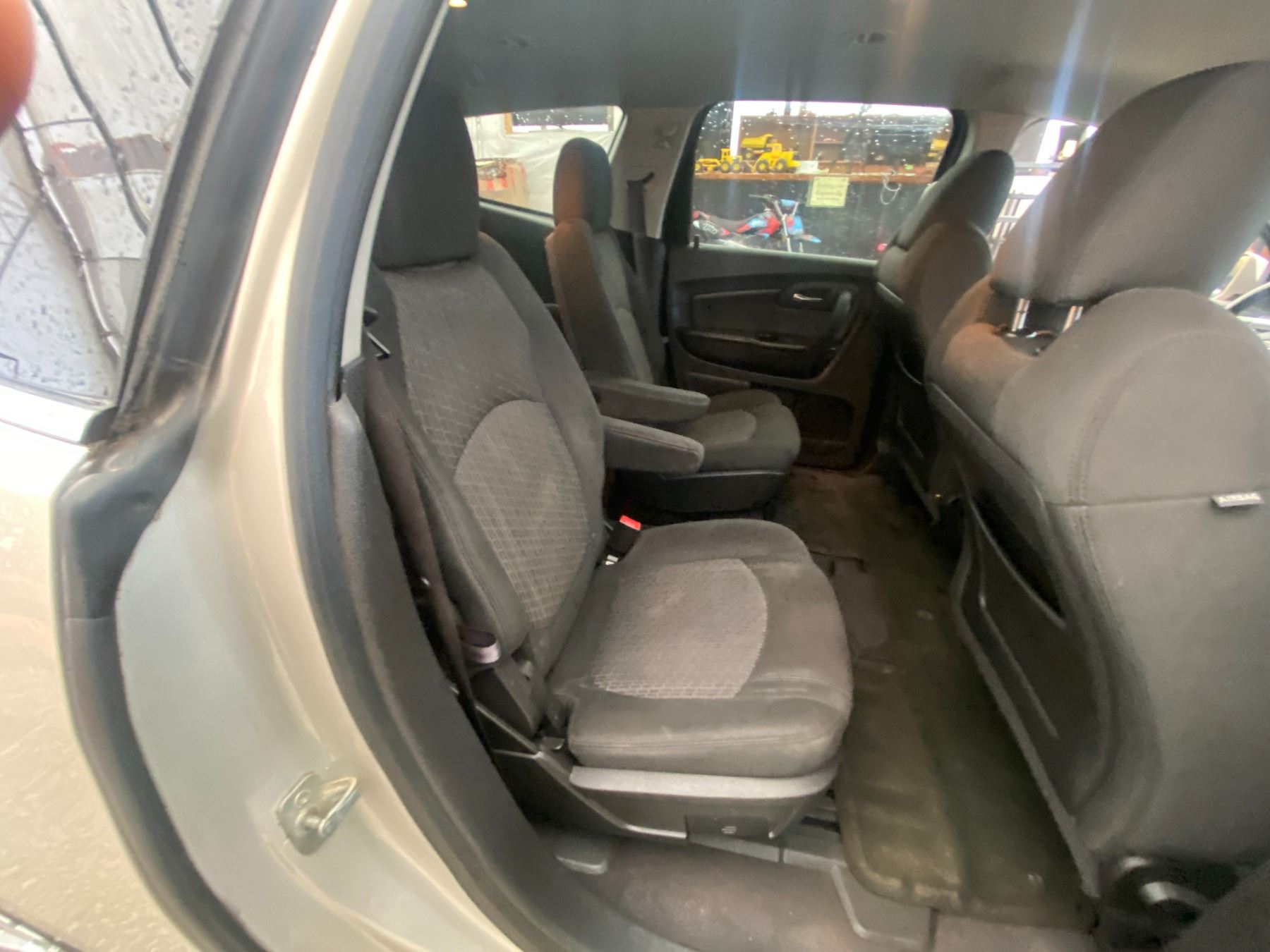 2012 CHEVROLET TRAVERSE, BROWN, 214137 KMS, 3.6L, 6 CYLINDER, GASOLINE, AUTOMATIC, TRANSMISSION, ALL WHEEL DRIVE, 7 PASSENGER. AIR CONDITIONING, POWER WINDOWS, POWER LOCKS, KEY-LESS ENTRY, TILT STEERING, CRUISE CONTROL, ALLOY WHEELS, ANTI THEFT, DUAL AIR BAGS, CD PLAYER, POWER SEATS, HEATED SEATS, BACK UP CAMERA, TRACTION CONTROL, REAR HEAT AND AIR, STEERING WHEEL CONTROLS, ROOF RACK, POWER MIRRORS, NO REPORTED ACCIDENTS., SPLIT-FOLDING REAR SEATS. DECLARATIONS: NO DESIGNATIONS 0 ACCIDENTS 2 GLASS CLAIM, TOTALING $782. SERVICE HISTORY SHOWS19 RECORDS.