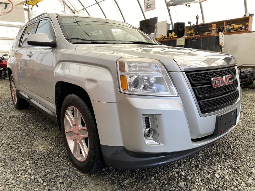 2012 GMC TERRAIN, SILVER, 187954 KMS, 2.4L, 4 CYLINDER, GASOLINE, AUTOMATIC WITH TIPTRONIC, TRANSMISSION, ALL WHEEL DRIVE, 5 PASSENGER. AIR CONDITIONING, POWER WINDOWS, POWER LOCKS, KEY-LESS ENTRY, TILT STEERING, CRUISE CONTROL, ALLOY WHEELS, ANTI THEFT, DUAL AIR BAGS, POWER SUNROOF, CD PLAYER, BLUETOOTH, LEATHER SEATS, POWER SEATS, HEATED SEATS, HEATED MIRRORS, NAVIGATION, BACK UP CAMERA, PARKING SENSORS, TRACTION CONTROL, STEERING WHEEL CONTROLS, FOG LIGHTS, ROOF RACK, POWER MIRRORS, SPLIT-FOLDING REAR SEATS. DECLARATIONS: NO DESIGNATIONS NOT MECHANICALLY INSPECTED, NOT SUITABLE FOR TRANSPORTATION. MUST TOW.1 ACCIDENTS 3 GLASS CLAIM, TOTALING $3758. SERVICE HISTORY SHOWS12 RECORDS.