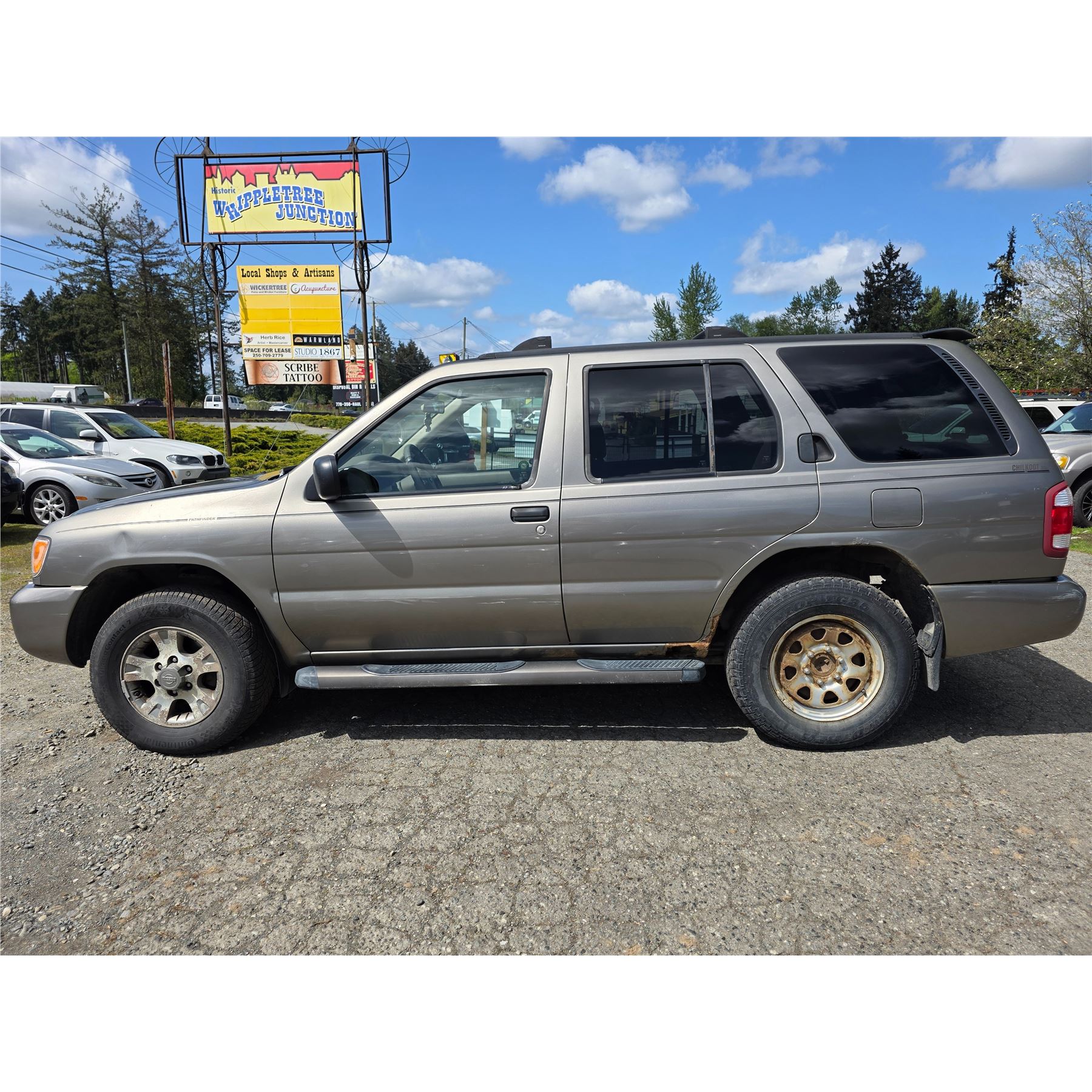 2003 NISSAN PATHFINDER 269992 KMS 3.5L V-SHAPED GASOLINE AUTOMATIC 4WD 5 PASSENGERS AIR CONDITIONING, POWER WINDOWS, POWER LOCKS, POWER MIRRORS, DUAL AIR BAGS, TILT STEERING, CRUISE CONTROL, AFTERMARKET STEREO EX-OUT OF PROVINCE DESIGNATIONS 1 ACCIDENT 0 GLASS CLAIM TOTALING $ $5955 NOT MECHANICALLY INSPECTED, NOT SUITABLE FOR TRANSPORTATION. MUST TOW. 7 RECORDS OF SERVICE