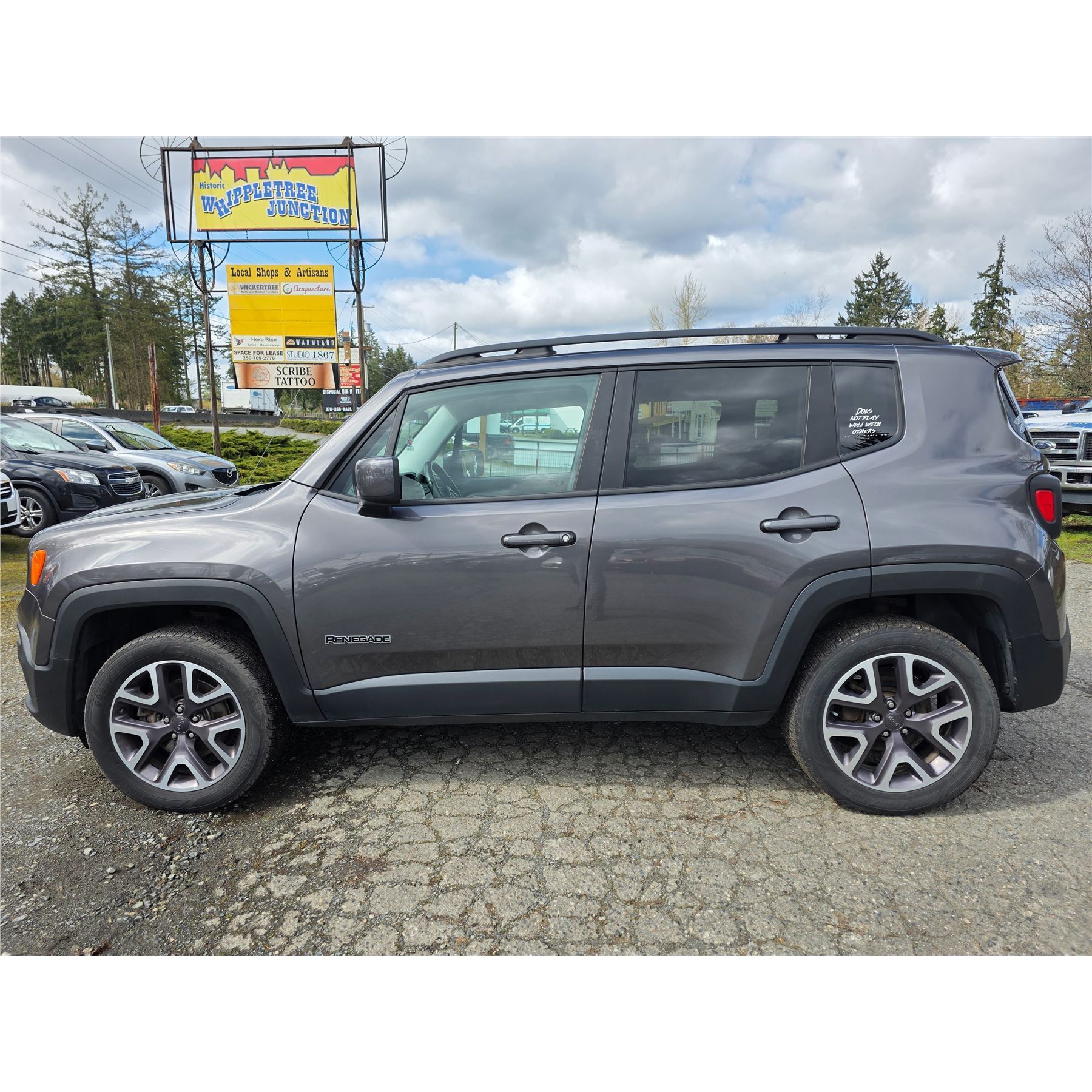 2016 JEEP RENEGADE 194522 KMS 1.4L GASOLINE MANUAL 4WD 5 PASSENGERS AIR CONDITIONING, POWER WINDOWS, POWER LOCKS, POWER MIRRORS, DUAL AIR BAGS, KEY-LESS ENTRY, CRUISE CONTROL, TILT STEERING, BLUETOOTH, STEERING WHEEL CONTROLS, TRACTION CONTROL, BACK UP CAMERA, ALLOY WHEELS EX-OUT OF PROVINCE DESIGNATIONS 1 ACCIDENT 4 GLASS CLAIMS TOTALLING $1514 NOT MECHANICALLY INSPECTED, NOT SUITABLE FOR TRANSPORTATION. MUST TOW. 27 RECORDS OF SERVICE