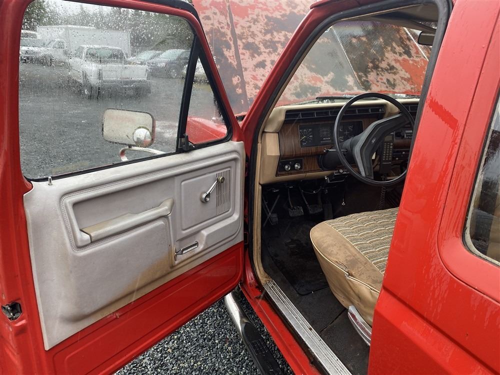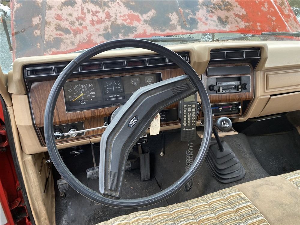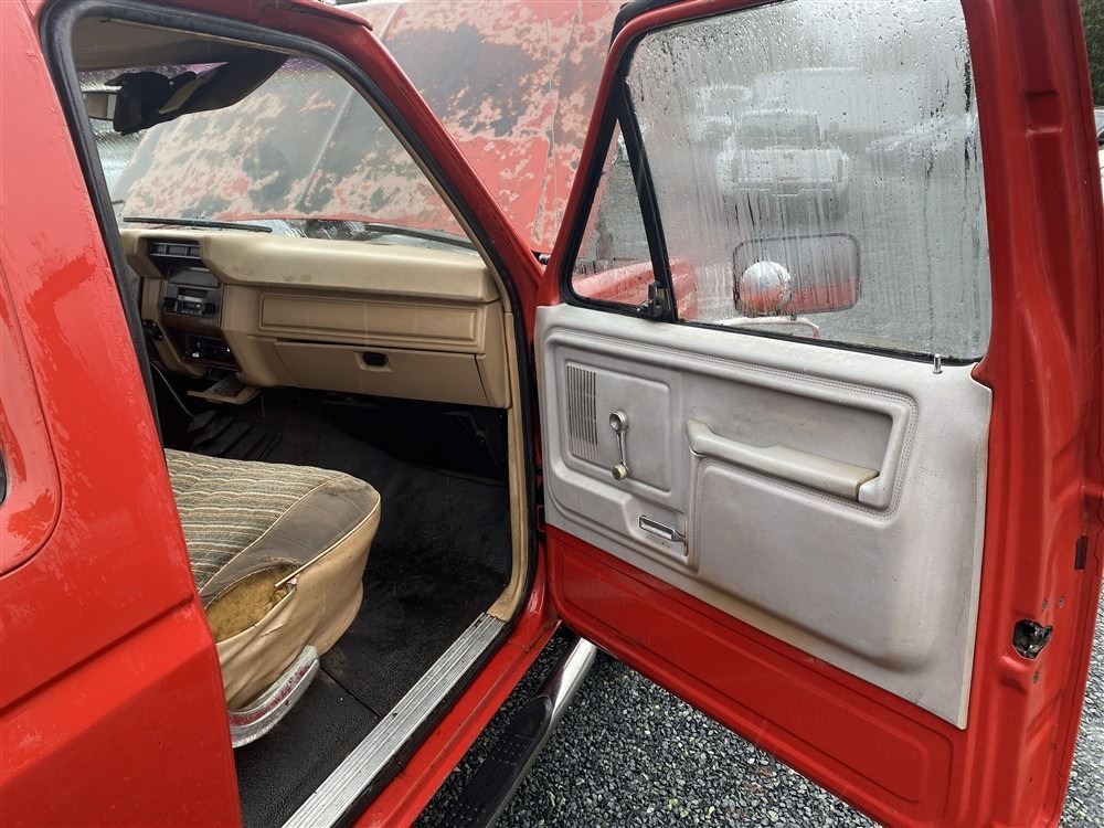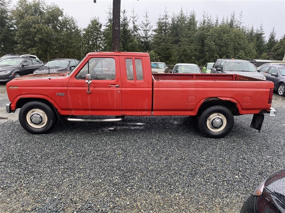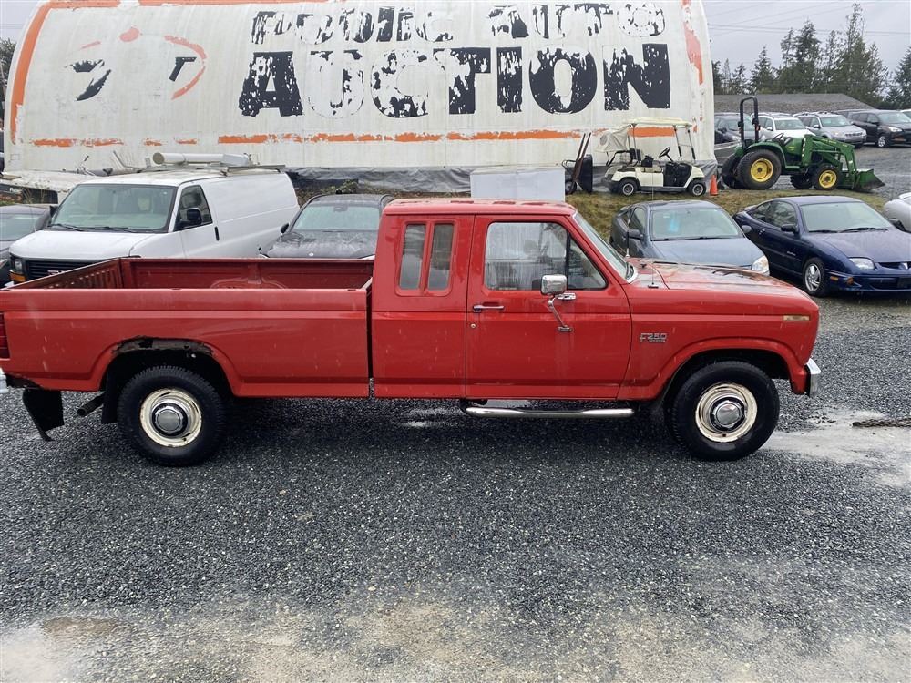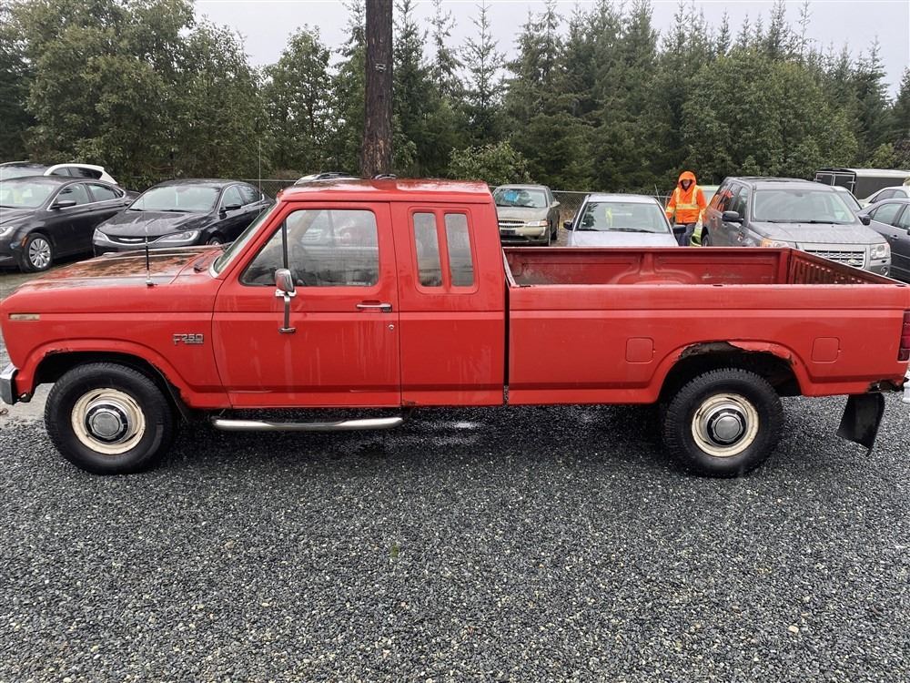 1984 FORD F250, RED, 515858 KMS, 6.9L, 8 CYLINDER, DIESEL, MANUAL, TRANSMISSION, REAR WHEEL DRIVE, 6 PASSENGER. TILT STEERING, . DECLARATIONS: 3 ACCIDENTS 2 GLASS CLAIM, TOTALING $1548. SERVICE HISTORY SHOWS 23 RECORDS.