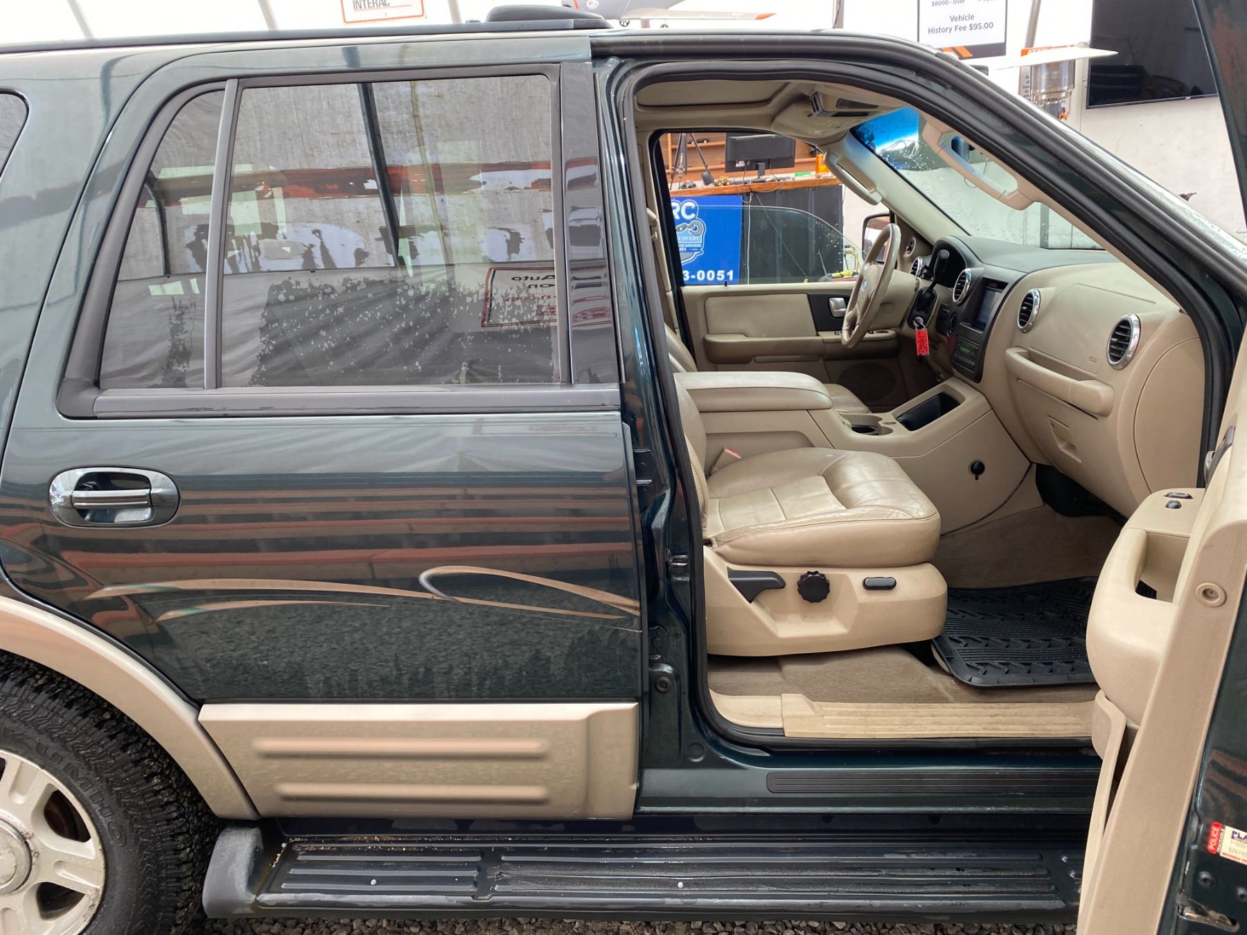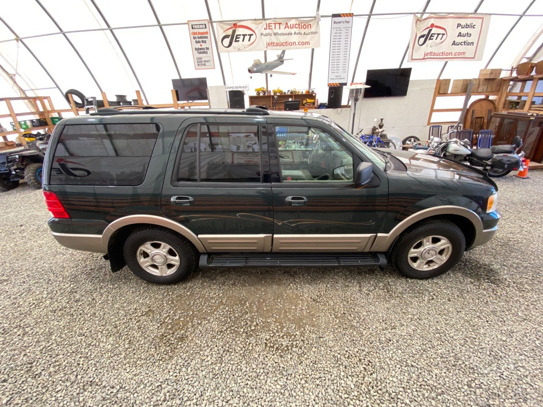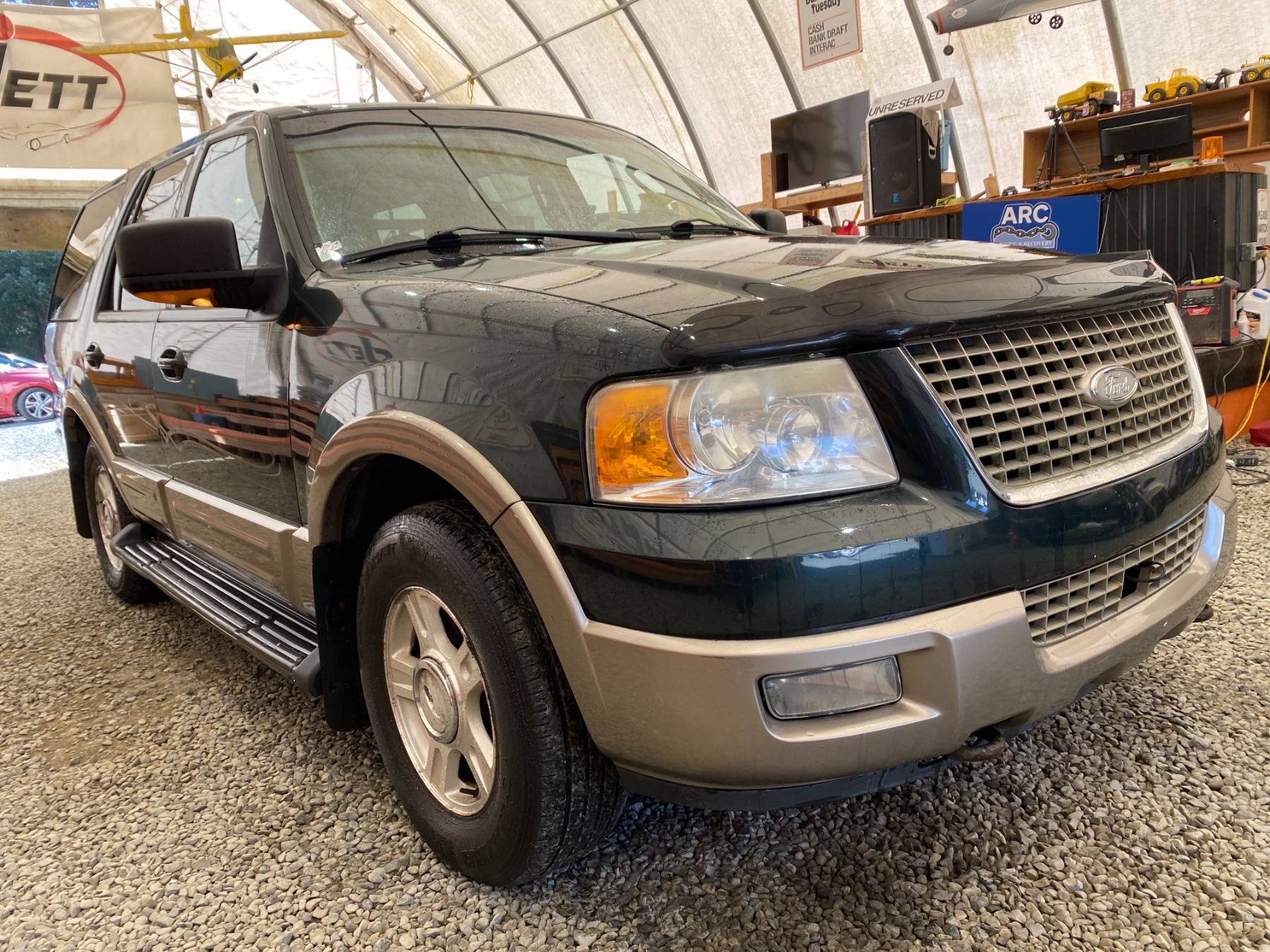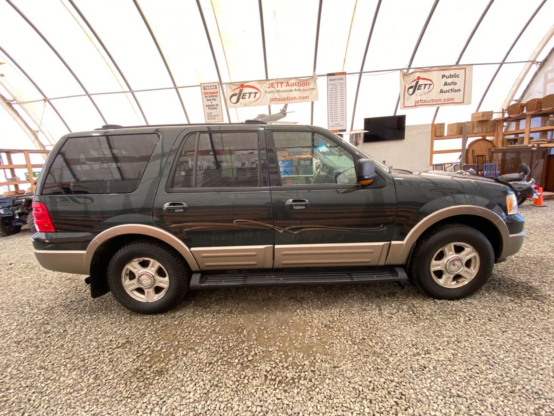 2003 FORD EXPEDITION 274069 KMS 5.4L GASOLINE AUTOMATIC 4WD 8 PASSENGERS AIR CONDITIONING, POWER WINDOWS, POWER LOCKS, POWER MIRRORS, DUAL AIR BAGS, TILT STEERING, ALLOY WHEELS, KEY-LESS ENTRY, CRUISE CONTROL, ANTI THEFT, POWER SUNROOF, BLUETOOTH, AFTERMARKET STEREO, LEATHER SEATS, STEERING WHEEL CONTROLS, FOG LIGHTS, POWER ADJUSTABLE PEDALS, TRAILER BRAKE CONTROL, TOW PACKAGE, REAR HEAT AND AIR, REAR-SEAT ENTERTAINMENT SYSTEM, SPLIT-FOLDING REAR SEATS EX-LEASE, EX-OUT OF PROVINCE DESIGNATIONS 0 ACCIDENTS 0 GLASS CLAIMS NOT MECHANICALLY INSPECTED, NOT SUITABLE FOR TRANSPORTATION. MUST TOW., SELLING AS TRUE MILEAGE UNKNOWN DUE TO CARFAX DISCREPANCY WE DO NOT GUARANTEE EXHAUST MANIFOLD OR CAM PHASERS ON THE 5.4 FORD ENGINES 13 RECORDS OF SERVICE