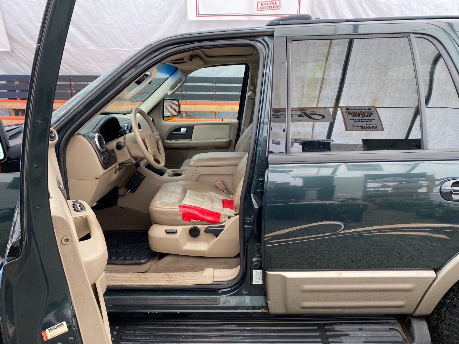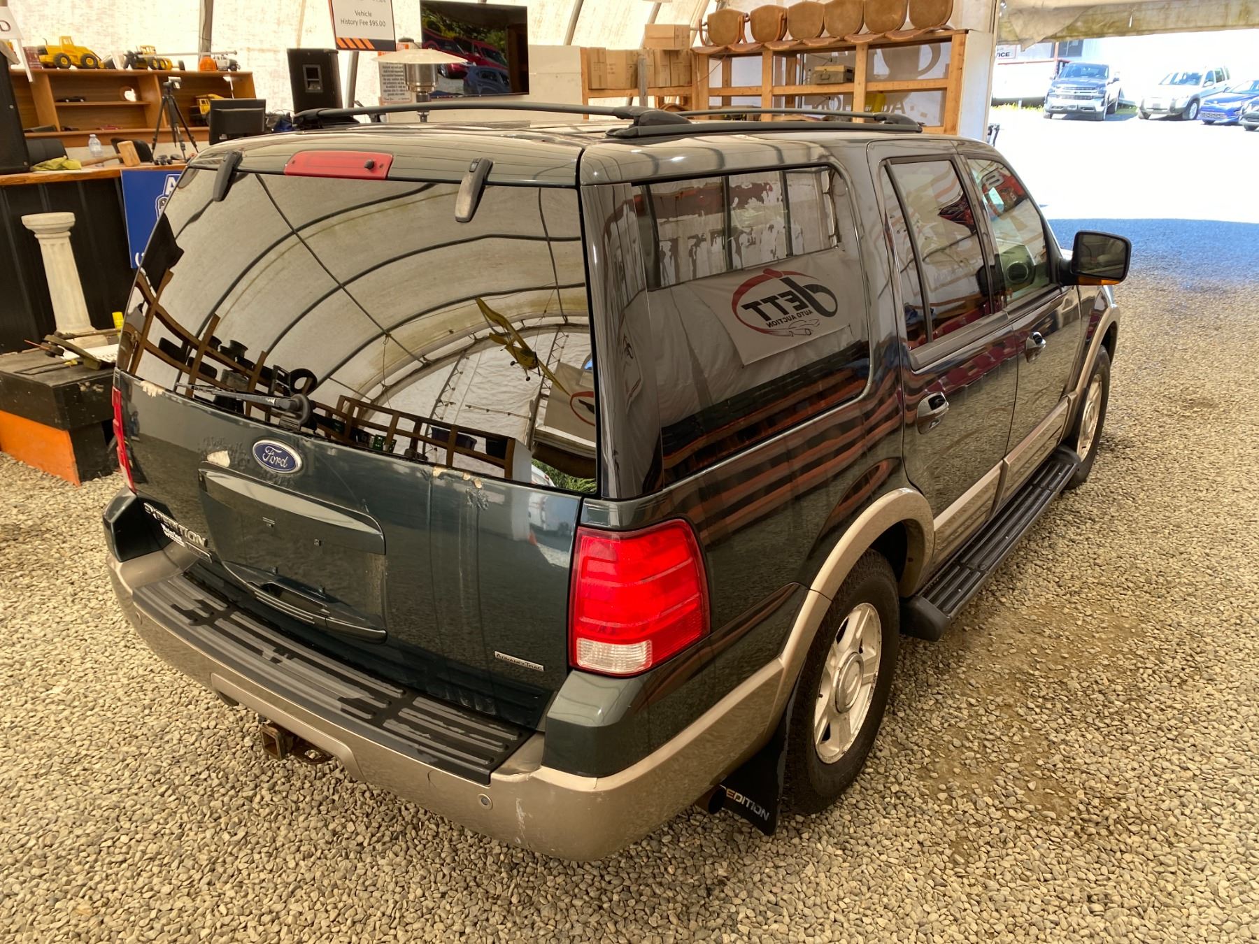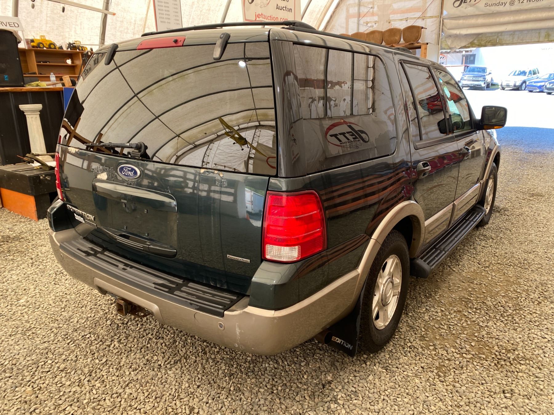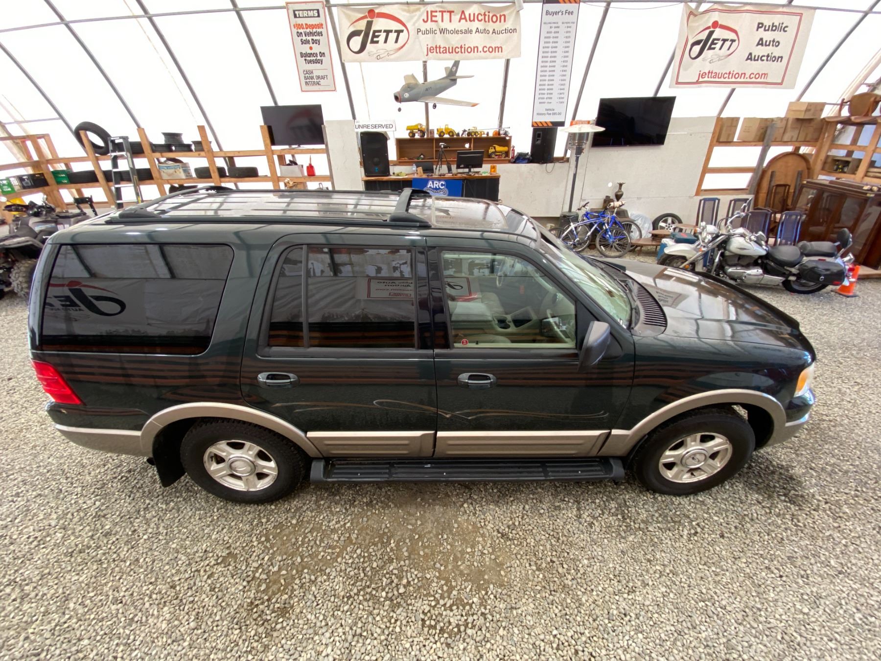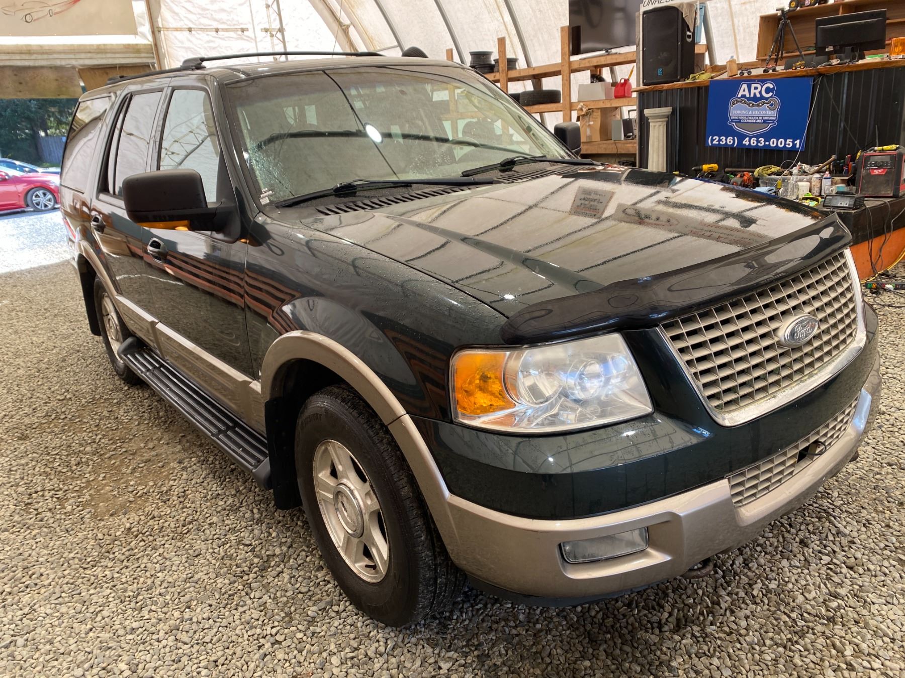 2003 FORD EXPEDITION 274069 KMS 5.4L GASOLINE AUTOMATIC 4WD 8 PASSENGERS AIR CONDITIONING, POWER WINDOWS, POWER LOCKS, POWER MIRRORS, DUAL AIR BAGS, TILT STEERING, ALLOY WHEELS, KEY-LESS ENTRY, CRUISE CONTROL, ANTI THEFT, POWER SUNROOF, BLUETOOTH, AFTERMARKET STEREO, LEATHER SEATS, STEERING WHEEL CONTROLS, FOG LIGHTS, POWER ADJUSTABLE PEDALS, TRAILER BRAKE CONTROL, TOW PACKAGE, REAR HEAT AND AIR, REAR-SEAT ENTERTAINMENT SYSTEM, SPLIT-FOLDING REAR SEATS EX-LEASE, EX-OUT OF PROVINCE DESIGNATIONS 0 ACCIDENTS 0 GLASS CLAIMS NOT MECHANICALLY INSPECTED, NOT SUITABLE FOR TRANSPORTATION. MUST TOW., SELLING AS TRUE MILEAGE UNKNOWN DUE TO CARFAX DISCREPANCY WE DO NOT GUARANTEE EXHAUST MANIFOLD OR CAM PHASERS ON THE 5.4 FORD ENGINES 13 RECORDS OF SERVICE