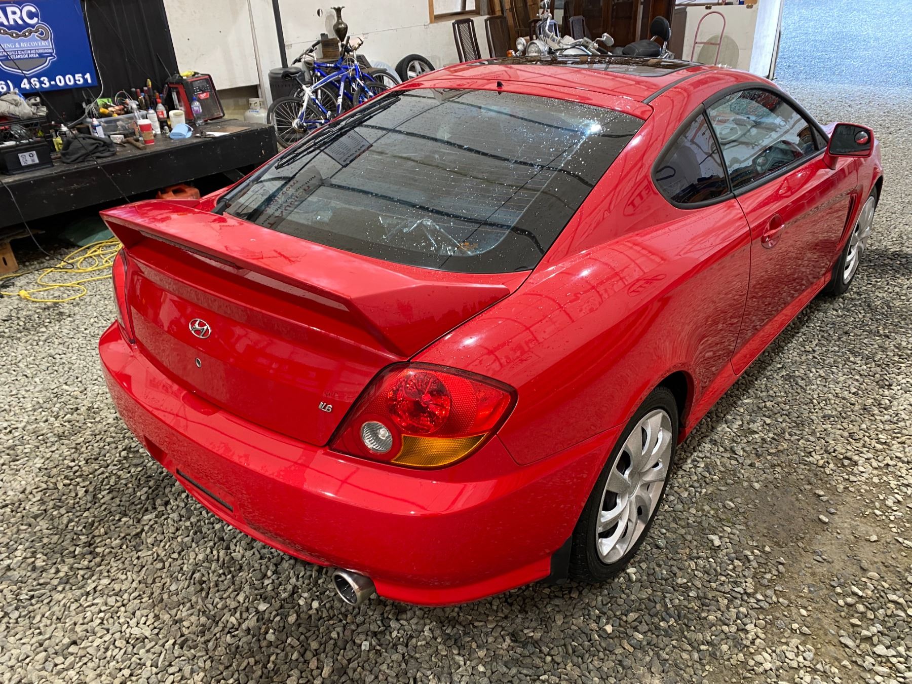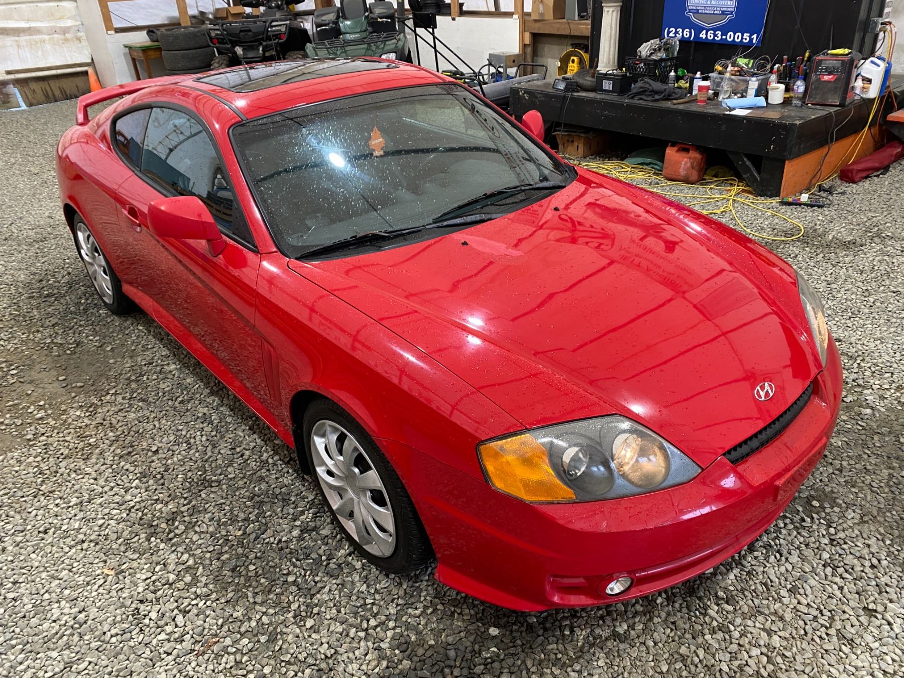 2003 HYUNDAI TIBURON 274861 KMS 2.7L GASOLINE AUTOMATIC FWD 4 PASSENGERS AIR CONDITIONING, POWER WINDOWS, POWER LOCKS, POWER MIRRORS, DUAL AIR BAGS, TILT STEERING, CRUISE CONTROL, CD PLAYER, POWER SUNROOF, ANTI THEFT, AFTERMARKET STEREO, LEATHER SEATS, HEATED SEATS, FOG LIGHTS, SPLIT-FOLDING REAR SEATS NO DESIGNATIONS DESIGNATIONS 4 ACCIDENT 0 GLASS CLAIM TOTALING $ $4893 NOT MECHANICALLY INSPECTED, NOT SUITABLE FOR TRANSPORTATION. MUST TOW. 13 RECORDS OF SERVICE