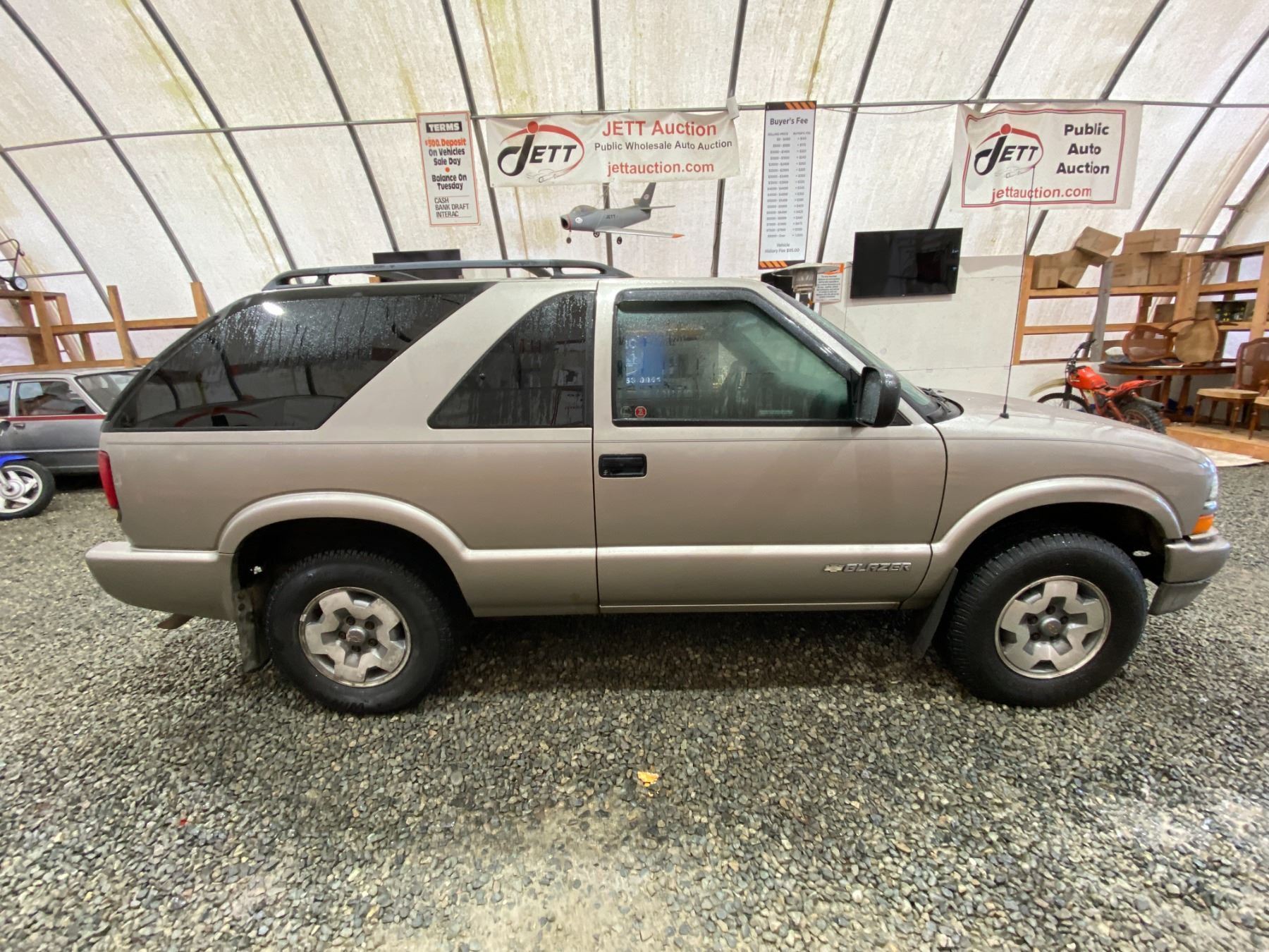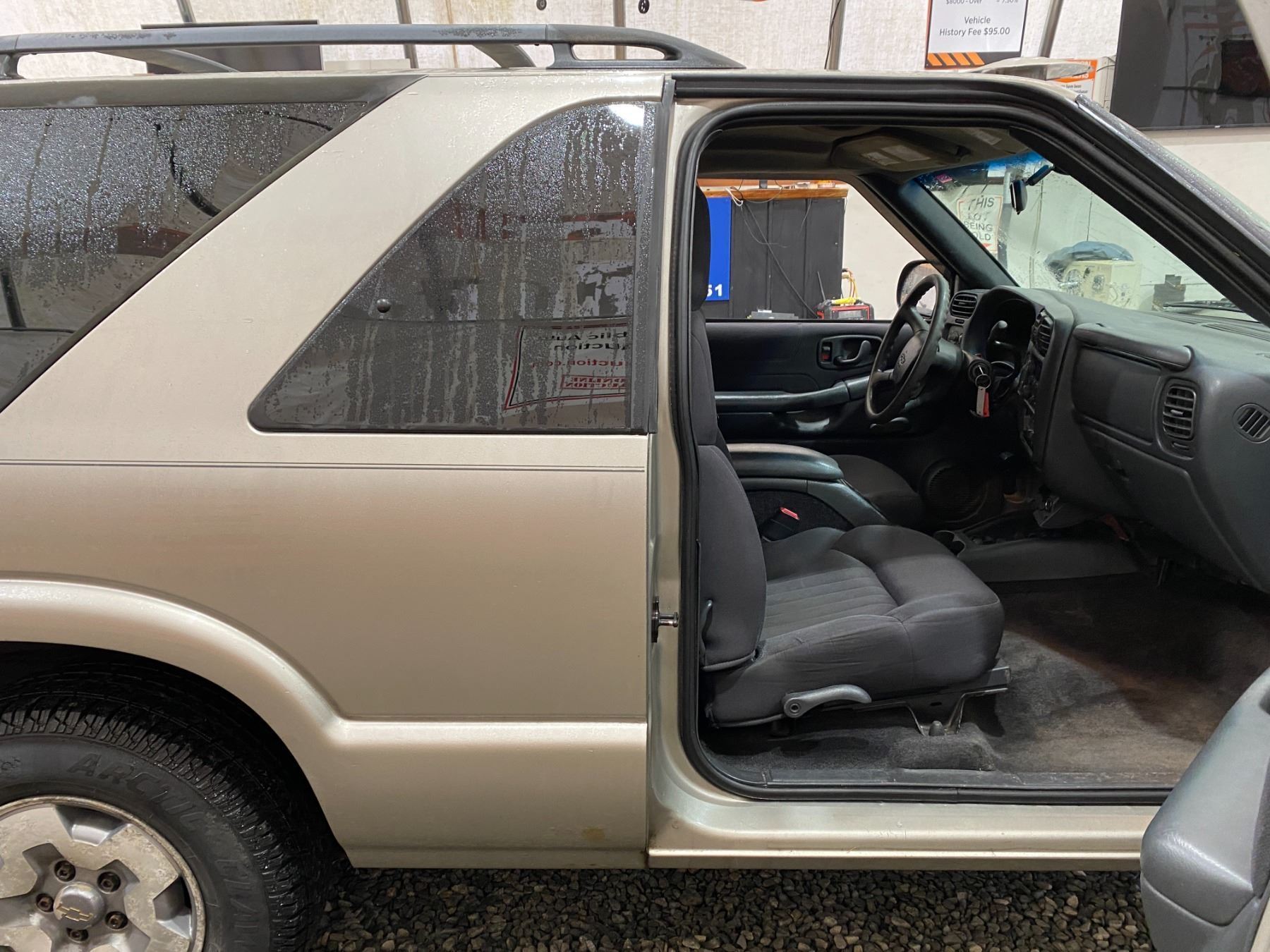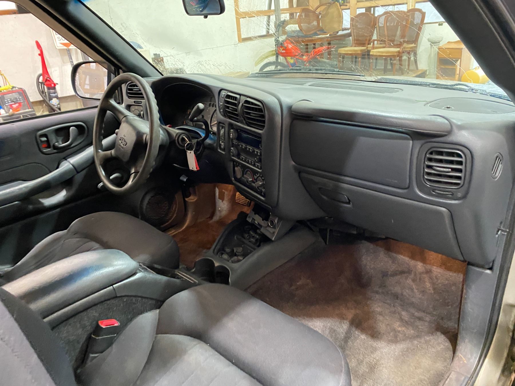 2004 CHEVROLET BLAZER 269128 KMS 4.3L GASOLINE MANUAL 4WD 5 PASSENGERS AIR CONDITIONING, POWER WINDOWS, POWER LOCKS, POWER MIRRORS, DUAL AIR BAGS, ALLOY WHEELS, ANTI THEFT, CD PLAYER, SPLIT-FOLDING REAR SEATS EX-LEASE DESIGNATIONS 2 ACCIDENT 1 GLASS CLAIM TOTALING $ $1883 NOT MECHANICALLY INSPECTED, NOT SUITABLE FOR TRANSPORTATION. MUST TOW. 4 RECORDS OF SERVICE