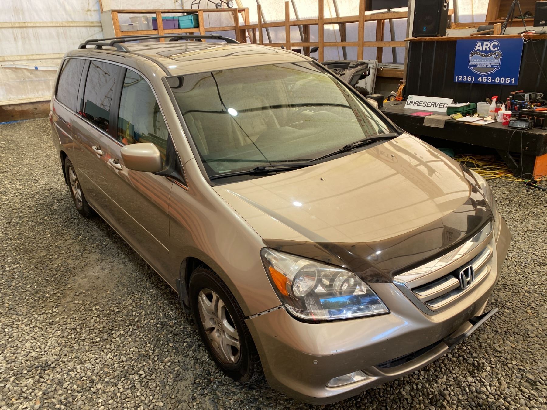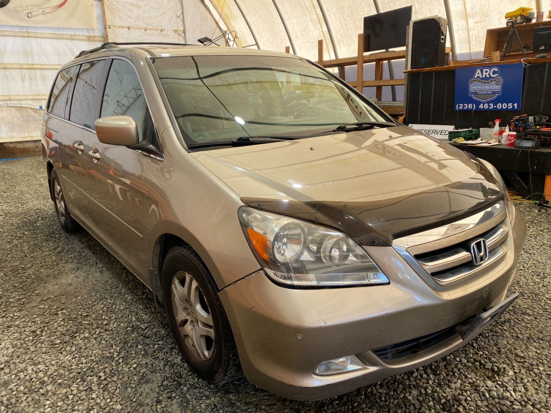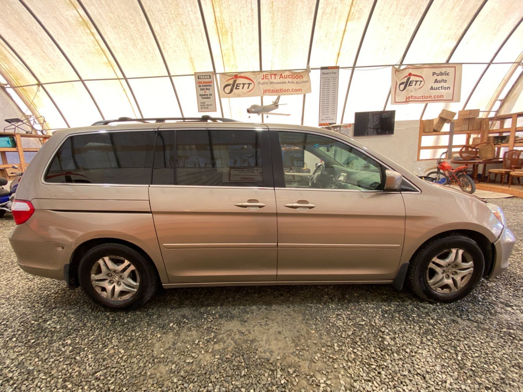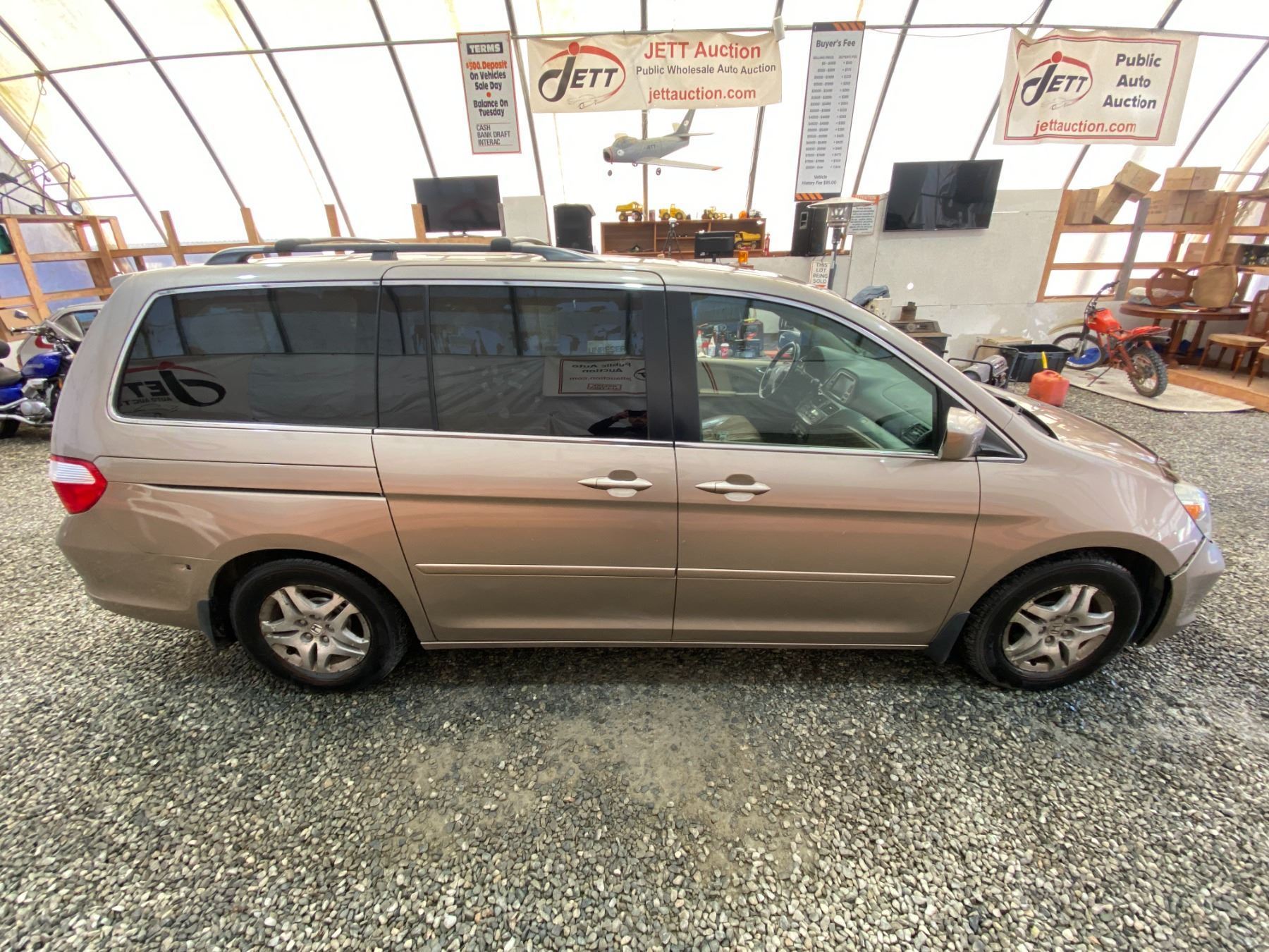 2005 HONDA ODYSSEY 247134 KMS 3.5L GASOLINE FWD 7 PASSENGERS AIR CONDITIONING, POWER WINDOWS, POWER LOCKS, POWER MIRRORS, DUAL AIR BAGS, KEY-LESS ENTRY, CRUISE CONTROL, TILT STEERING, ANTI THEFT, ALLOY WHEELS, POWER SUNROOF, CD PLAYER, BLUETOOTH, LEATHER SEATS, HEATED SEATS, DUAL ZONE CLIMATE, FOG LIGHTS, TRACTION CONTROL, SPLIT-FOLDING REAR SEATS, REAR-SEAT ENTERTAINMENT SYSTEM, HEATED SIDE MIRRORS NO DESIGNATIONS DESIGNATIONS 1 ACCIDENT 3 GLASS CLAIM TOTALING $ $1305 NOT MECHANICALLY INSPECTED, NOT SUITABLE FOR TRANSPORTATION. MUST TOW. 14 RECORDS OF SERVICE