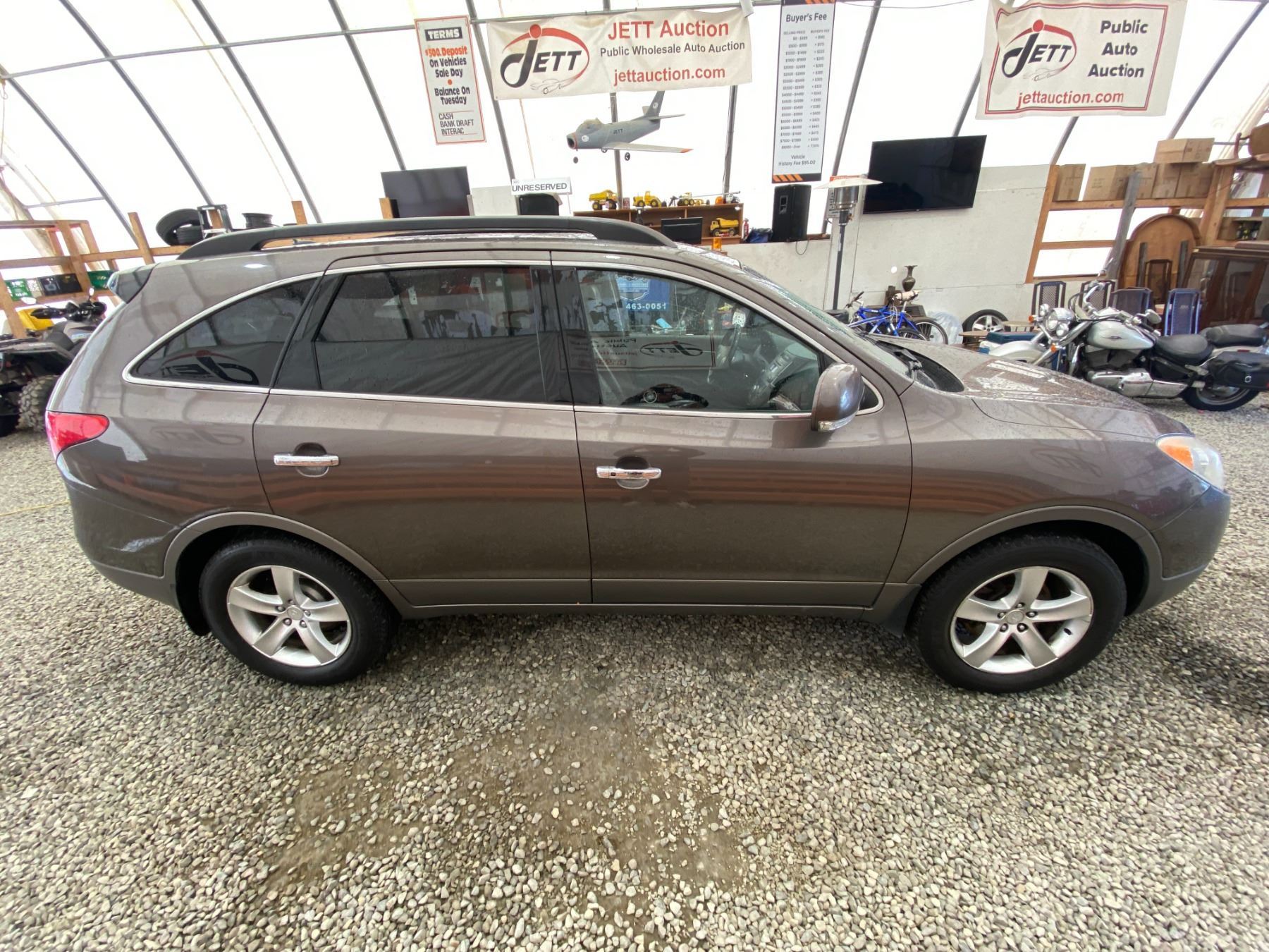 2007 HYUNDAI VERACRUZ 303247 KMS 3.8L GASOLINE AUTOMATIC AWD 7 PASSENGERS AIR CONDITIONING, POWER WINDOWS, POWER LOCKS, POWER MIRRORS, DUAL AIR BAGS, KEY-LESS ENTRY, CRUISE CONTROL, TILT STEERING, ALLOY WHEELS, ANTI THEFT, POWER SUNROOF, CD PLAYER, CD STACKER, LEATHER SEATS, HEATED SEATS, POWER SEATS, MEMORY SEATS, HEATED MIRRORS, TRACTION CONTROL, STEERING WHEEL CONTROLS, DUAL ZONE CLIMATE, POWER ADJUSTABLE PEDALS, FOG LIGHTS, ROOF RACK, REAR-SEAT ENTERTAINMENT SYSTEM, SPLIT-FOLDING REAR SEATS EX-OUT OF PROVINCE DESIGNATIONS 2 ACCIDENT 0 GLASS CLAIM TOTALING $ $10375 AIR BAG LIGHT ON - NOT MECHANICALLY INSPECTED, NOT SUITABLE FOR TRANSPORTATION, MUST TOW., NOT MECHANICALLY INSPECTED, NOT SUITABLE FOR TRANSPORTATION. MUST TOW. 19 RECORDS OF SERVICE