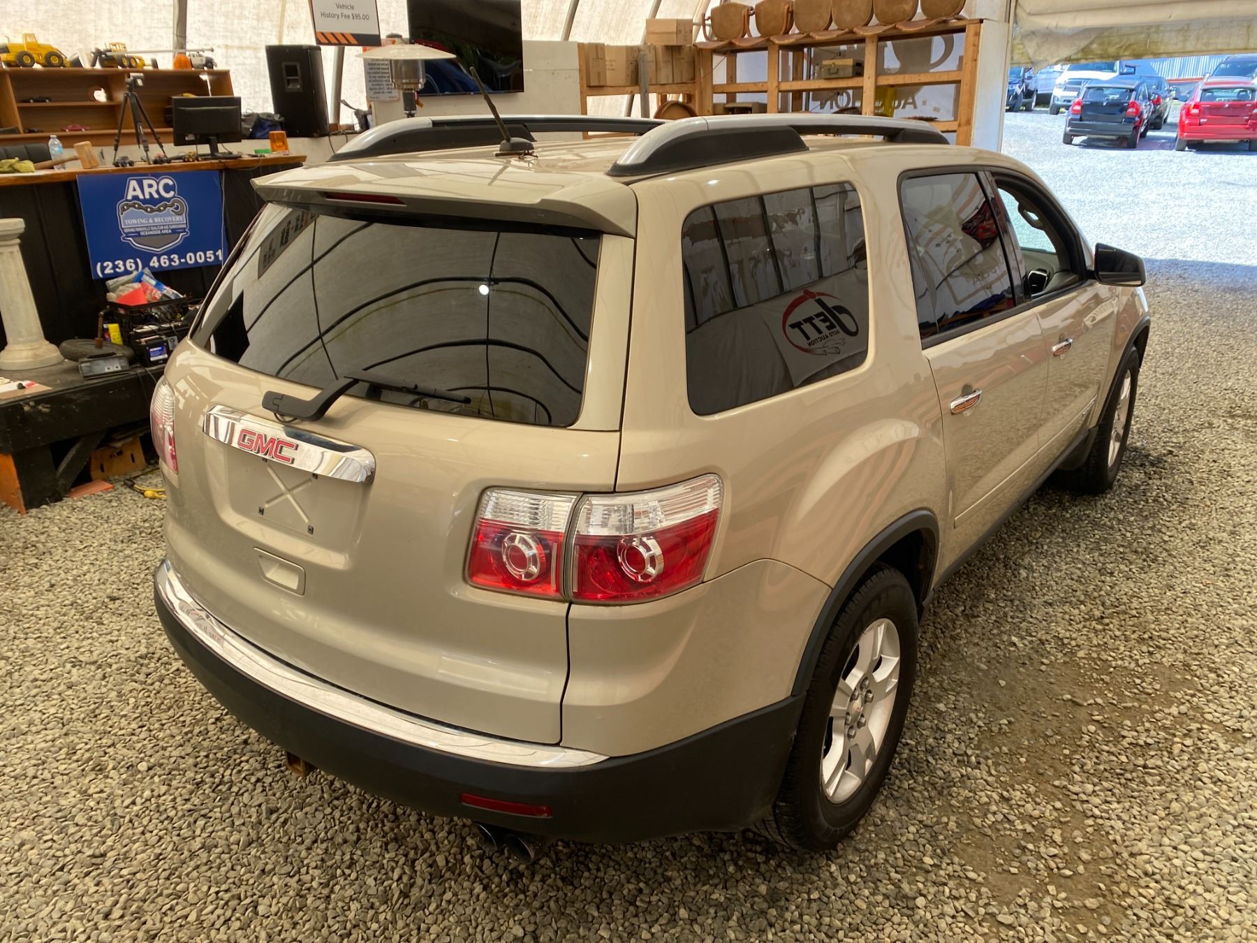 2008 GMC ACADIA 271864 KMS 3.6L GASOLINE AUTOMATIC FWD 7 PASSENGERS AIR CONDITIONING, POWER WINDOWS, POWER LOCKS, POWER MIRRORS, DUAL AIR BAGS, KEY-LESS ENTRY, CRUISE CONTROL, TILT STEERING, ALLOY WHEELS, ANTI THEFT, CD PLAYER, TRACTION CONTROL, FOG LIGHTS, SPLIT-FOLDING REAR SEATS NO DESIGNATIONS DESIGNATIONS 3 ACCIDENT 0 GLASS CLAIM TOTALING $ $6349 NOT MECHANICALLY INSPECTED, NOT SUITABLE FOR TRANSPORTATION. MUST TOW. 12 RECORDS OF SERVICE