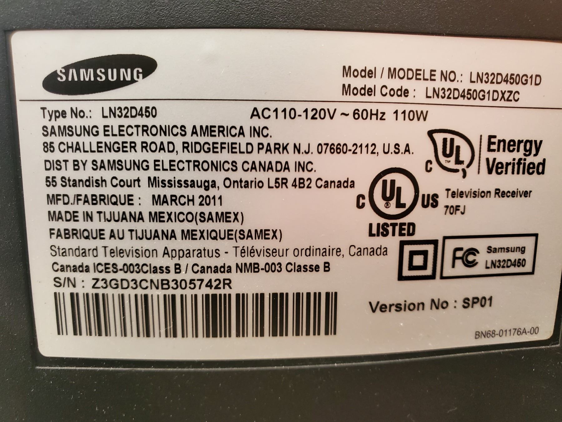 Samsung Flat Screen TV 32 Inch Model LN32D450 -- 17% Buyer Fee. Payment Processed through Live Auction World Saturday @ 11:15 ( Visa or Master Card ) pick up Saturday Before 3:00, or Tuesday 9:30 till 5:09